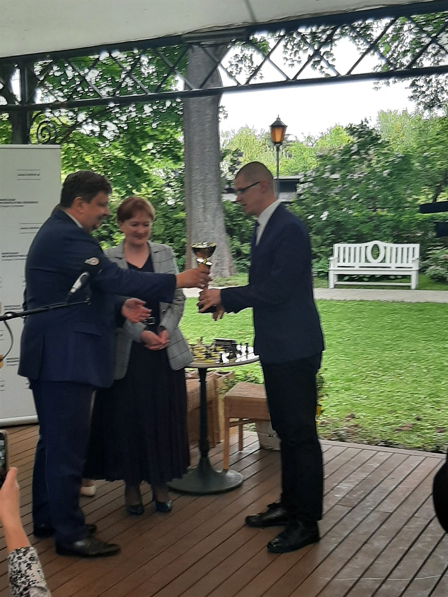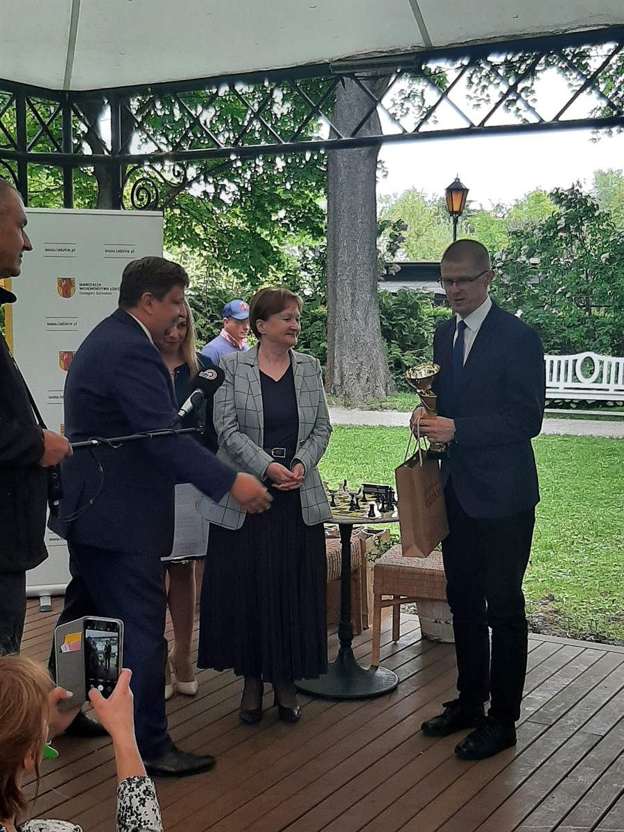 Miło nam poinformować o sukcesie nauczyciela Szkoły Podstawowej w  Srocku- pana Adama Gajdy w programie „Łódzkie gra w szachy”.  Projekt ten, objęty patronatem  Marszałka Województwa Łódzkiego Grzegorza Schreibera,  prowadził  Wojewódzki Ośrodek Doskonalenia Nauczycieli w Skierniewicach.  W trakcie kilkutygodniowych szkoleń online uczestnicy- zakwalifikowani nauczyciele ze szkół naszego województwa- doskonalili swoje umiejętności, które sprawdzali w praktyce, rozgrywając turnieje. W ścisłej czołówce tej rywalizacji znalazł się pan Adam Gajda, toteż otrzymaliśmy zaproszenie na imprezę podsumowującą projekt. W pięknych plenerach ogrodów Pałacu Herbsta w Łodzi zorganizowano turniej podsumowujący. Za zajęcie III miejsca Pan Adam Gajda  odebrał Puchar Marszałka Województwa Łódzkiego Grzegorza Schreibera oraz okolicznościowe upominki. Dyrektor szkoły, pani Iwona Pałygiewicz, otrzymała piękne nagrody, które posłużą uczniom- ścienne szachy magnetyczne, duże planszowe szachy podłogowe oraz 10 kolejnych zestawów tej królewskiej gry wraz z elektronicznymi timerami.  Gratulujemy!