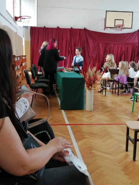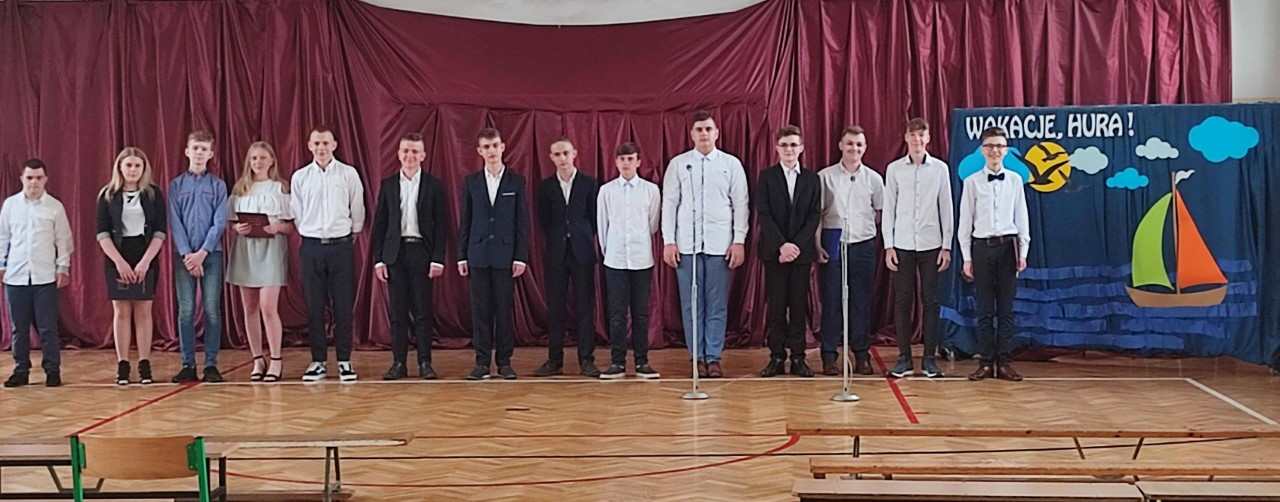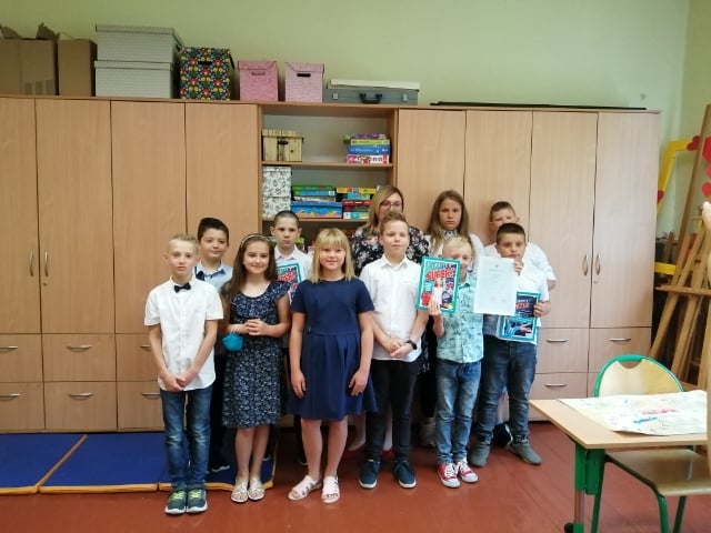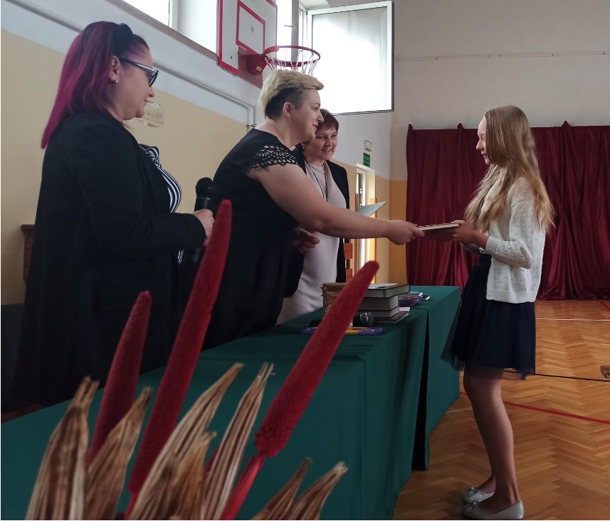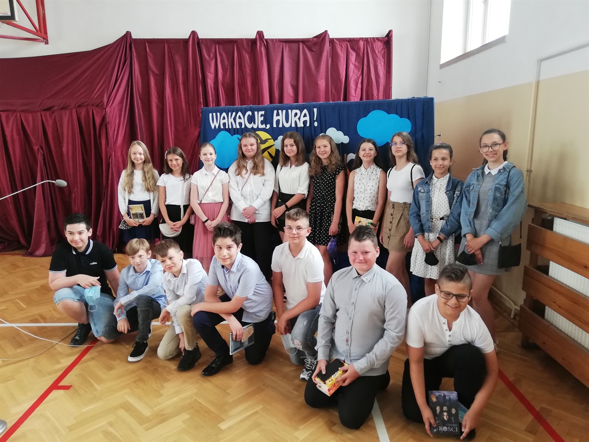 Sylwia Dębska przekazała Szymonowi Krzymowskiemu. (Młodsi Koledzy i Koleżanki- bierzcie z Szymona przykład :-) ) Wszystkim uczniom gratulujemy wytrwałości w tym trudnym roku naznaczonym pandemią i życzymy miłych wakacji! Do