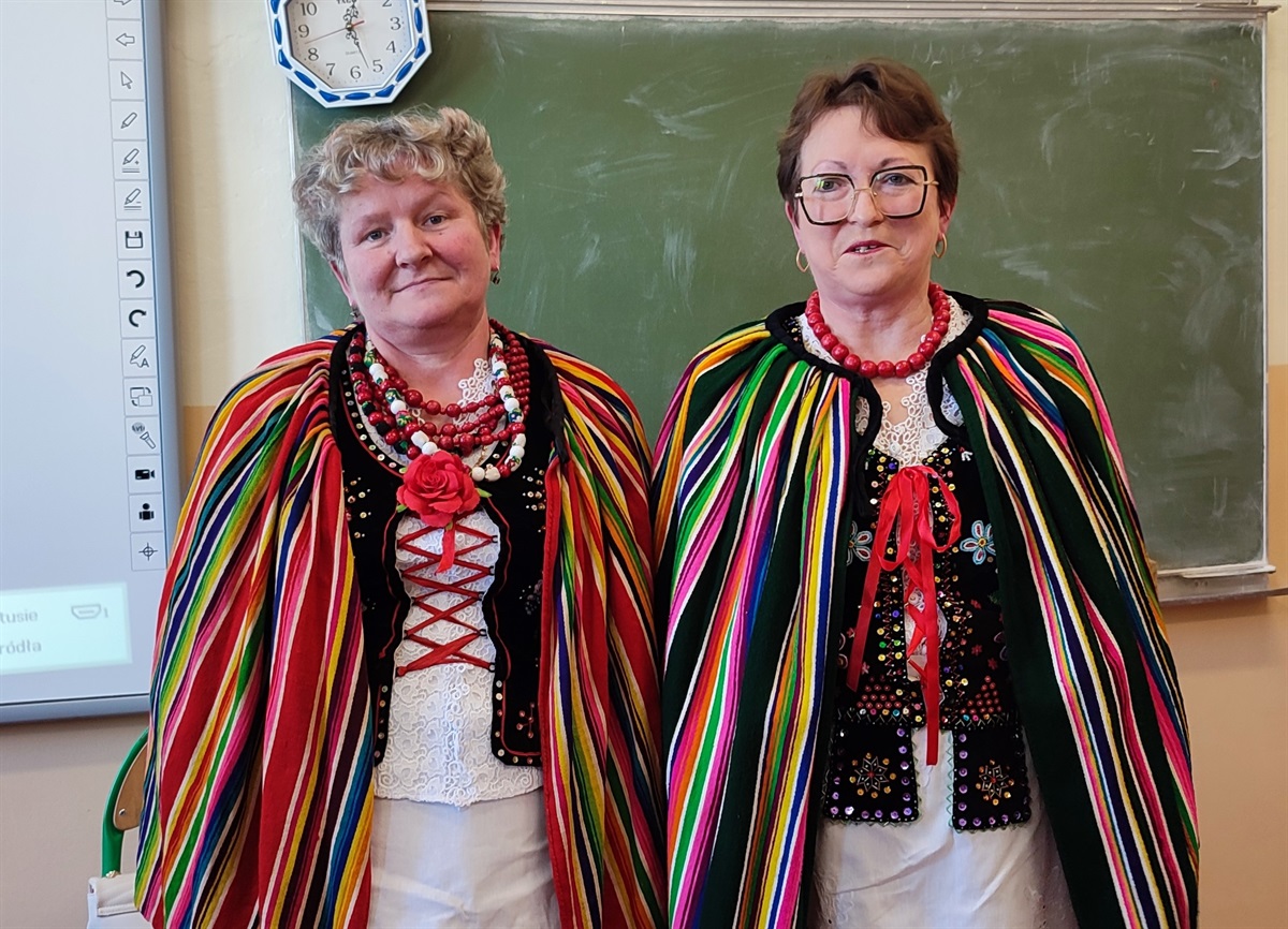 Panie przyszły ubrane w tradycyjne stroje ludowe, które wzbudziły zainteresowanie klasy. Miały na sobie białe bluzki, gorsety haftowane w kwiaty, wełniane spódnice i peleryny w pionowe, kolorowe pasy. Stroje te można było obejrzeć z bliska, a nawet dotknąć.
