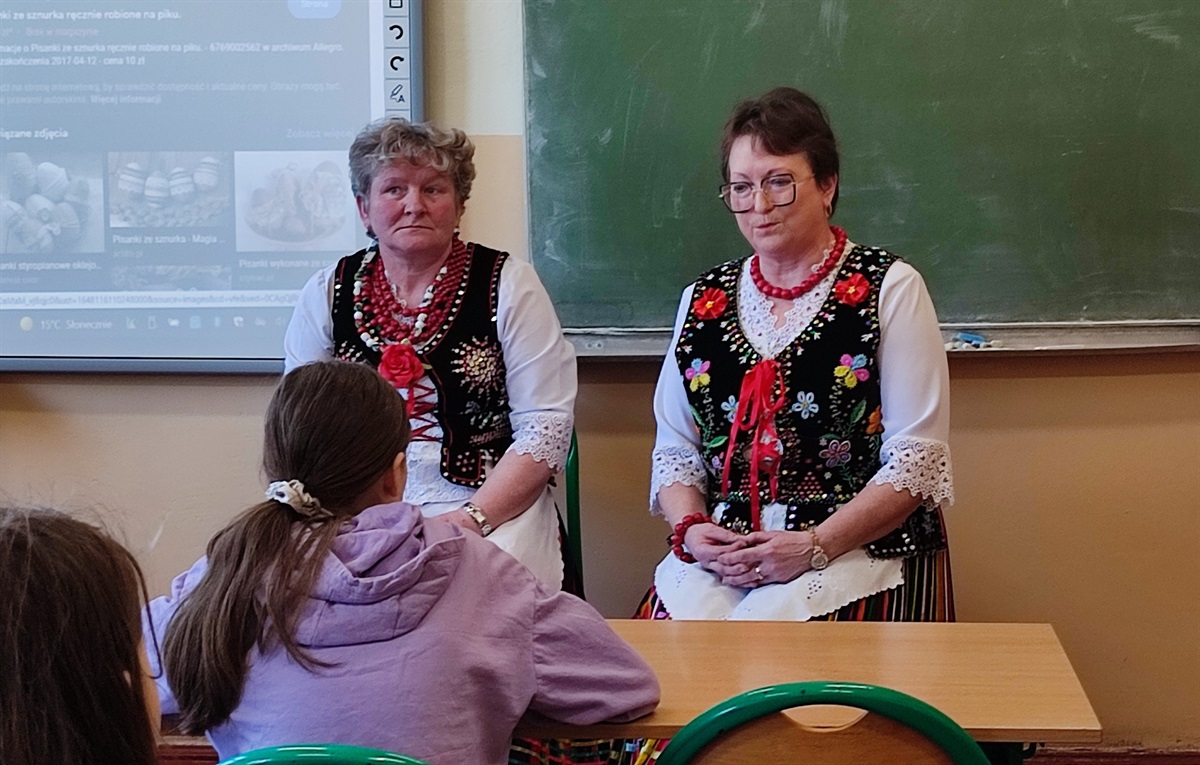 Dnia 23 marca, w Szkole Podstawowej w Srocku na lekcji plastyki, której tematem była sztuka ludowa, odbyło się spotkanie klasy V z przedstawicielkami Koła Gospodyń Wiejskich (KGW) ze Srocka.
