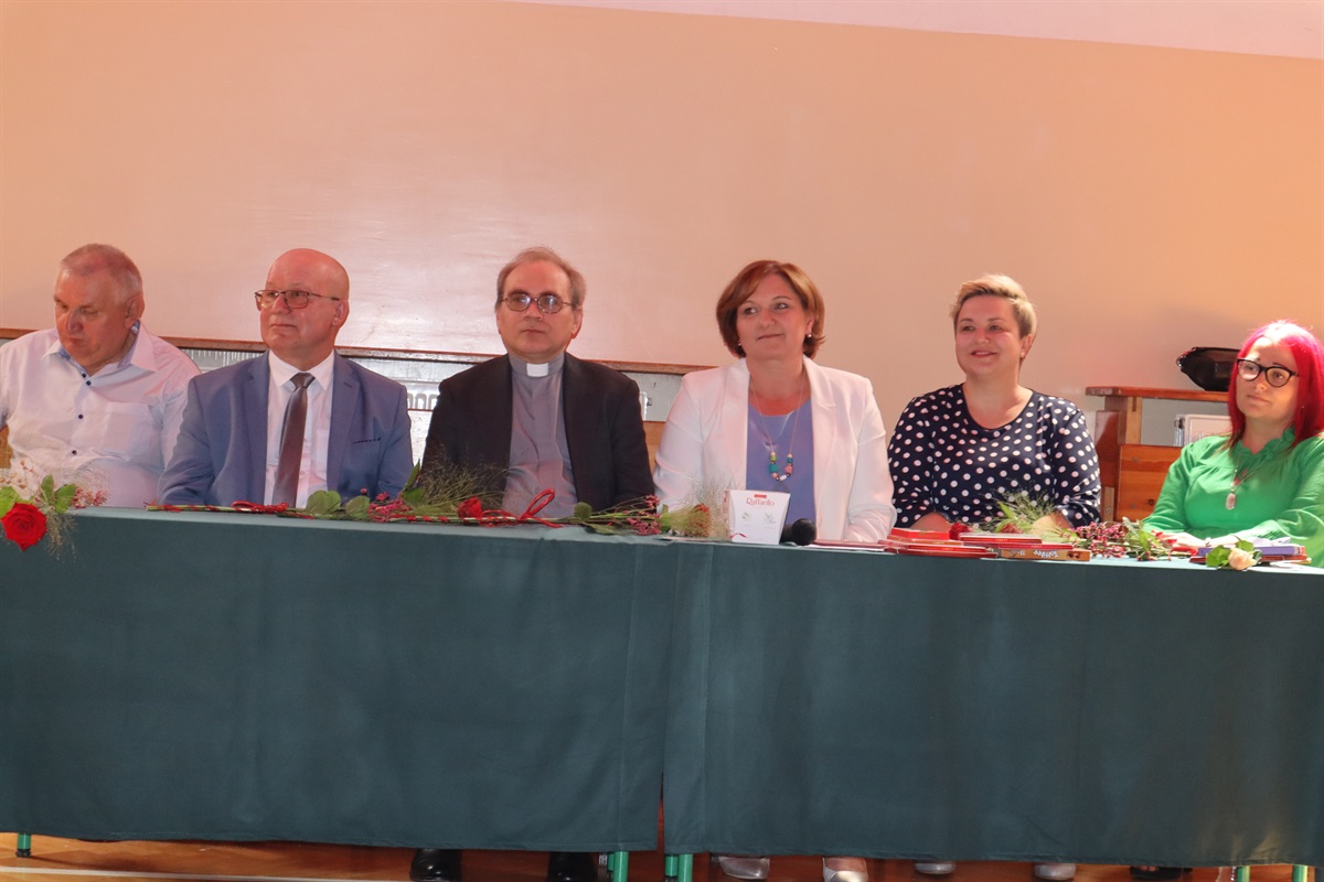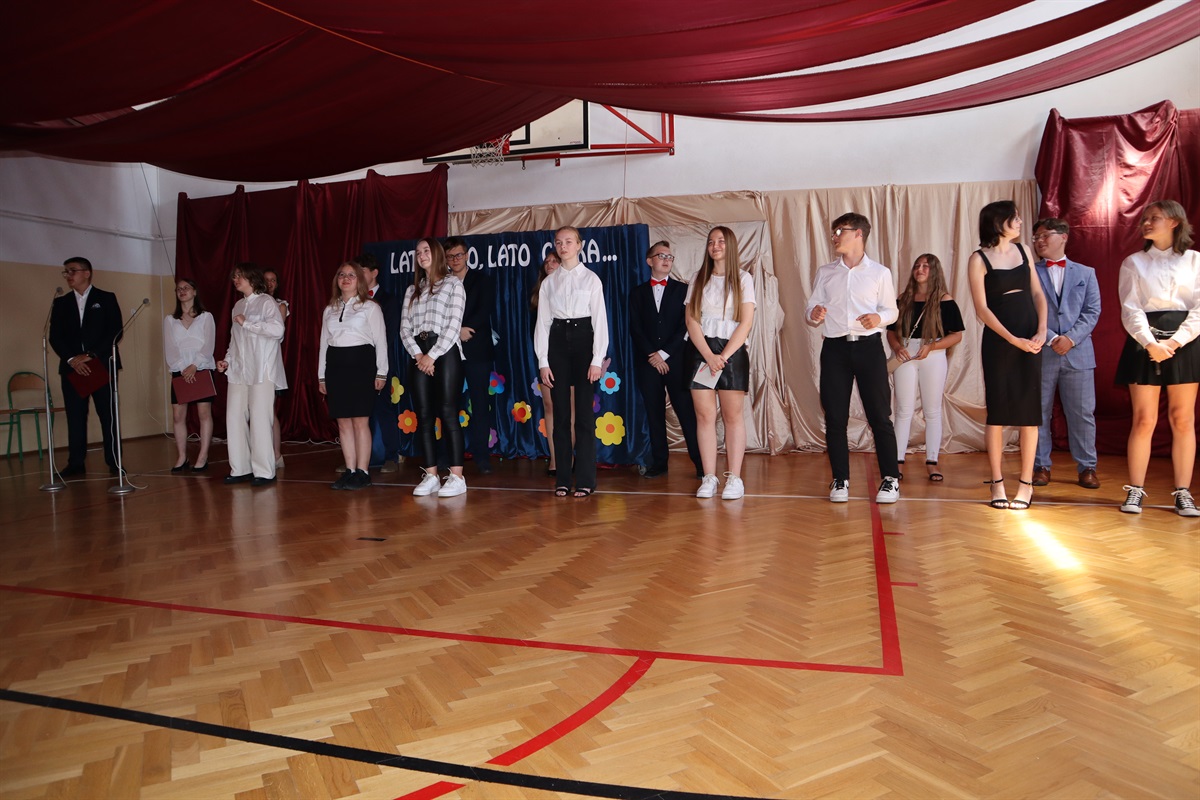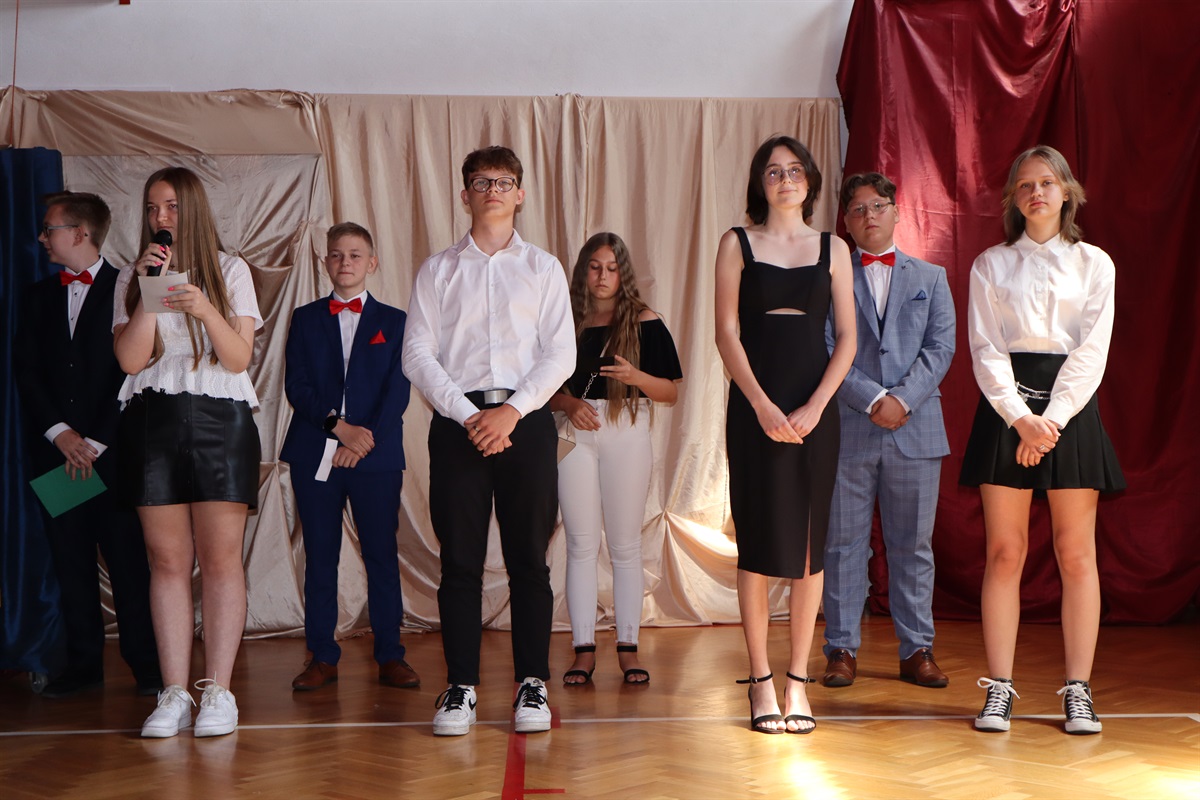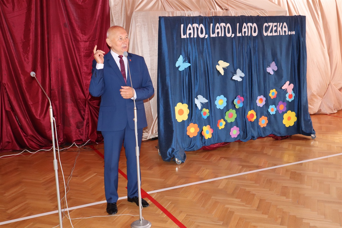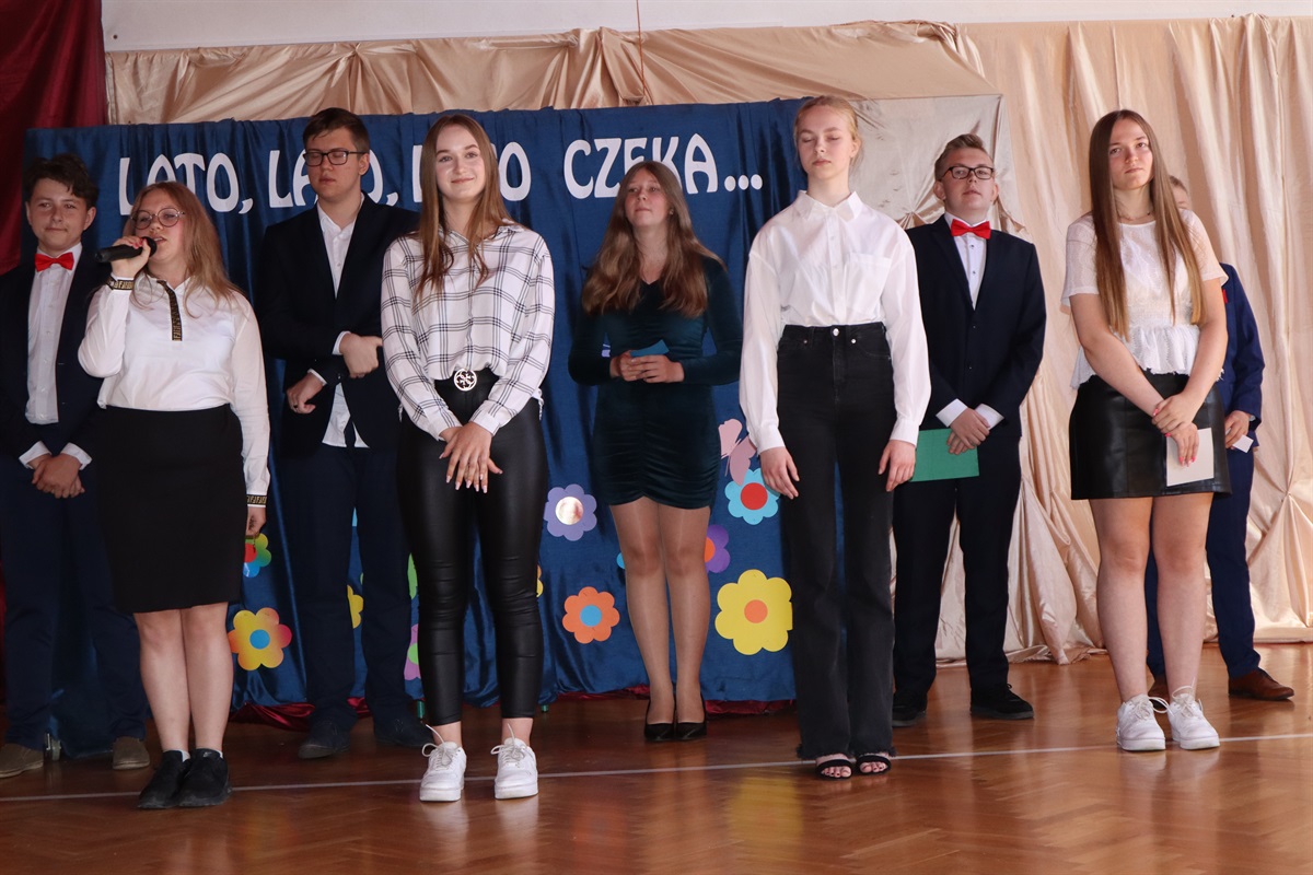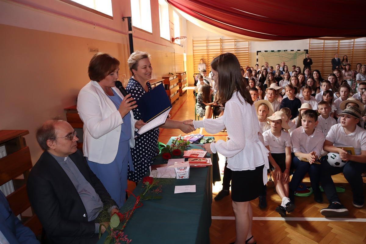 Wszyscy gratulowali uczniom wyników w nauce, wyrażali radość z powodu trwającej rozbudowy szkoły i życzyli przyjemnego, efektywnego, bezpiecznego wypoczynku podczas nadchodzących wakacji. Podziękowania za cierpliwość i cały rok pracy popłynęły do nauczycieli, pracowników administracji i obsługi, a także rodziców, którzy aktywnie uczestniczyli w procesie nauki zdalnej. Dyrektor szkoły wraz z wychowawcami poszczególnych klas wręczyli nagrody uczniom wyróżnionym za wyniki w nauce i zachowaniu.