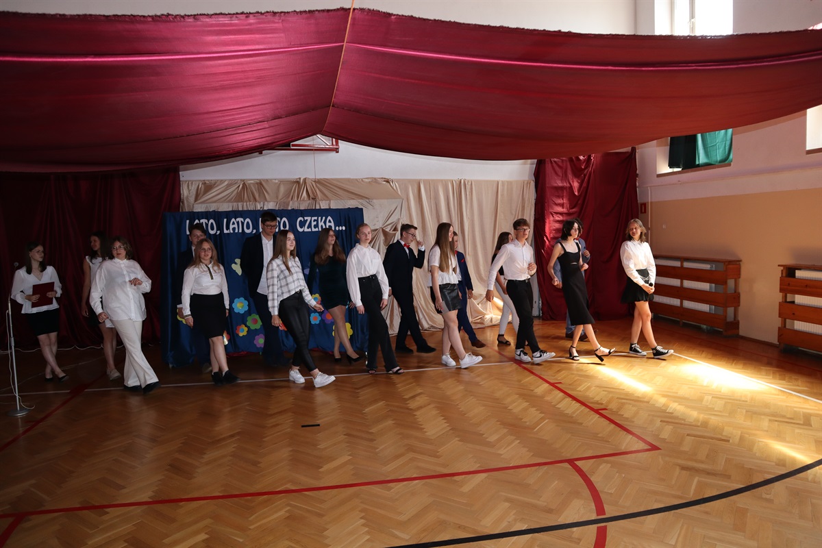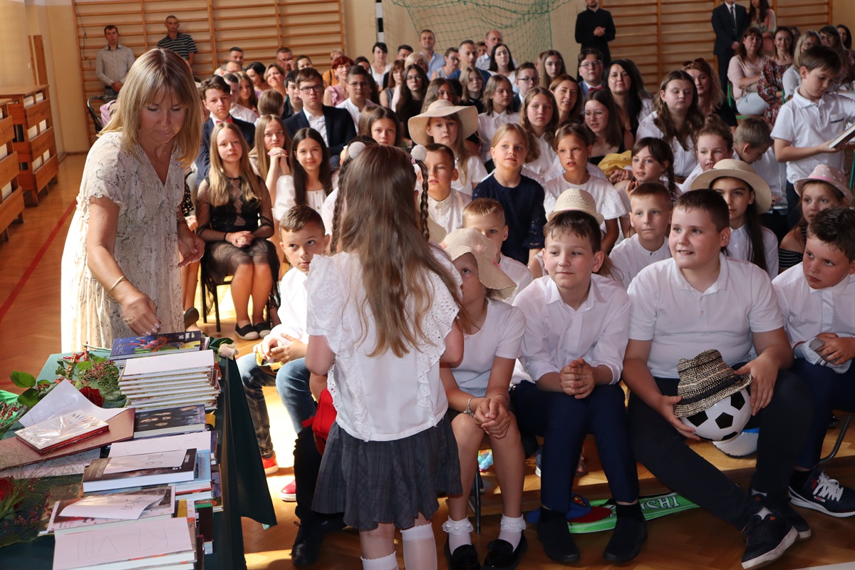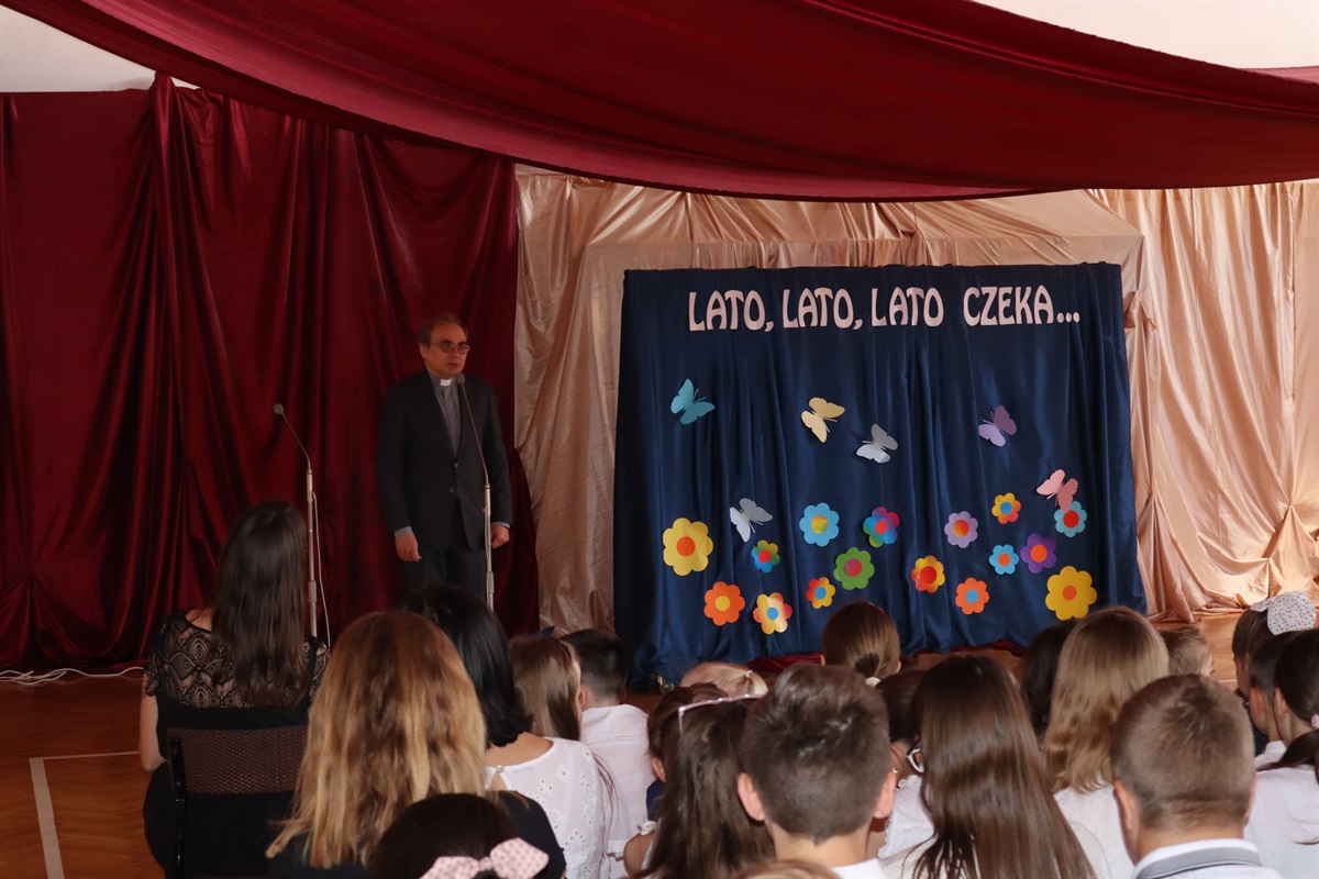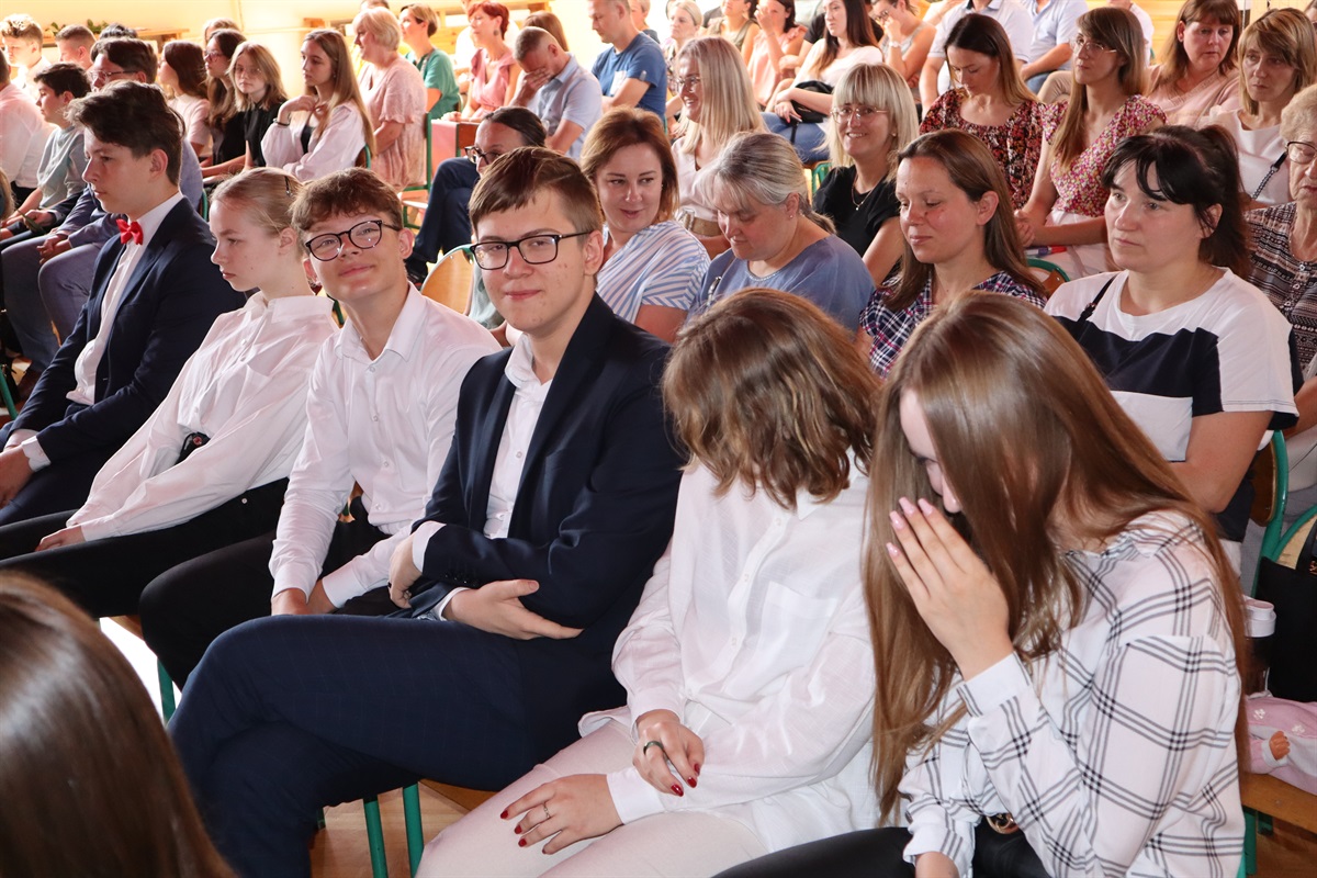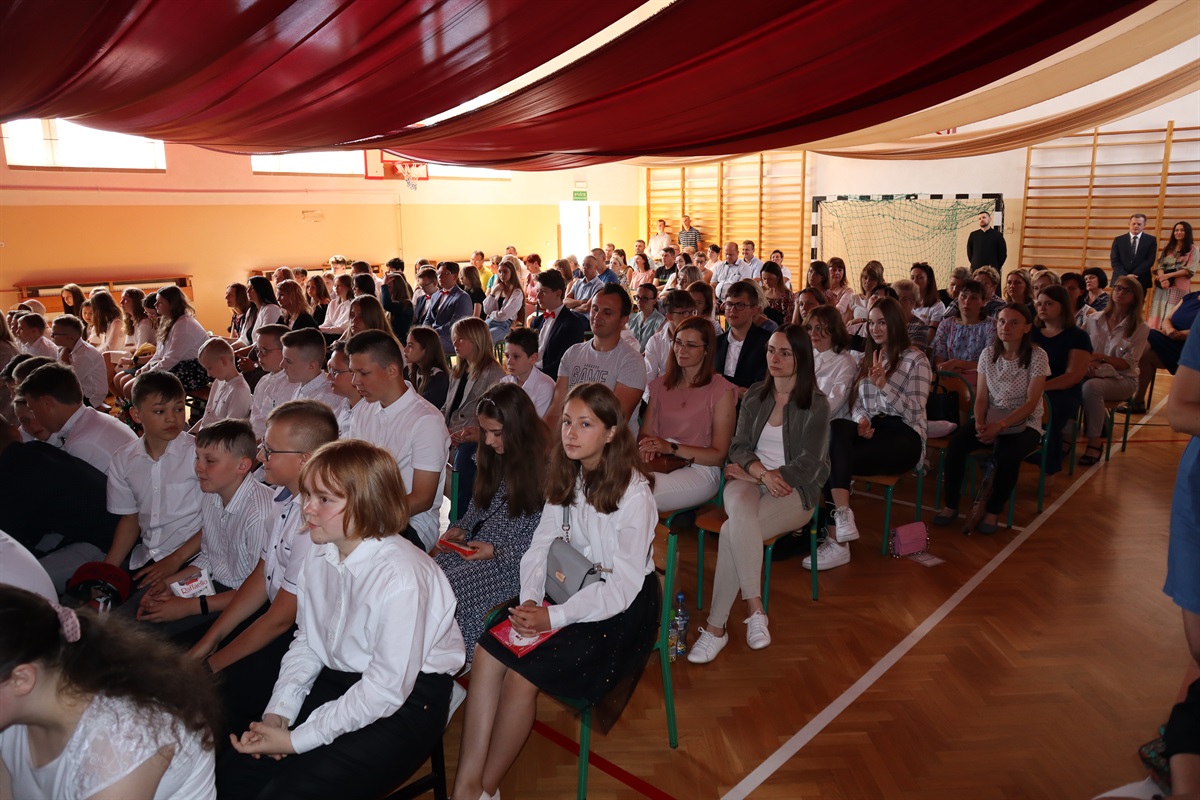 Wszyscy gratulowali uczniom wyników w nauce, wyrażali radość z powodu trwającej rozbudowy szkoły i życzyli przyjemnego, efektywnego, bezpiecznego wypoczynku podczas nadchodzących wakacji. Podziękowania za cierpliwość i cały rok pracy popłynęły do nauczycieli, pracowników administracji i obsługi, a także rodziców, którzy aktywnie uczestniczyli w procesie nauki zdalnej. Dyrektor szkoły wraz z wychowawcami poszczególnych klas wręczyli nagrody uczniom wyróżnionym za wyniki w nauce i zachowaniu.