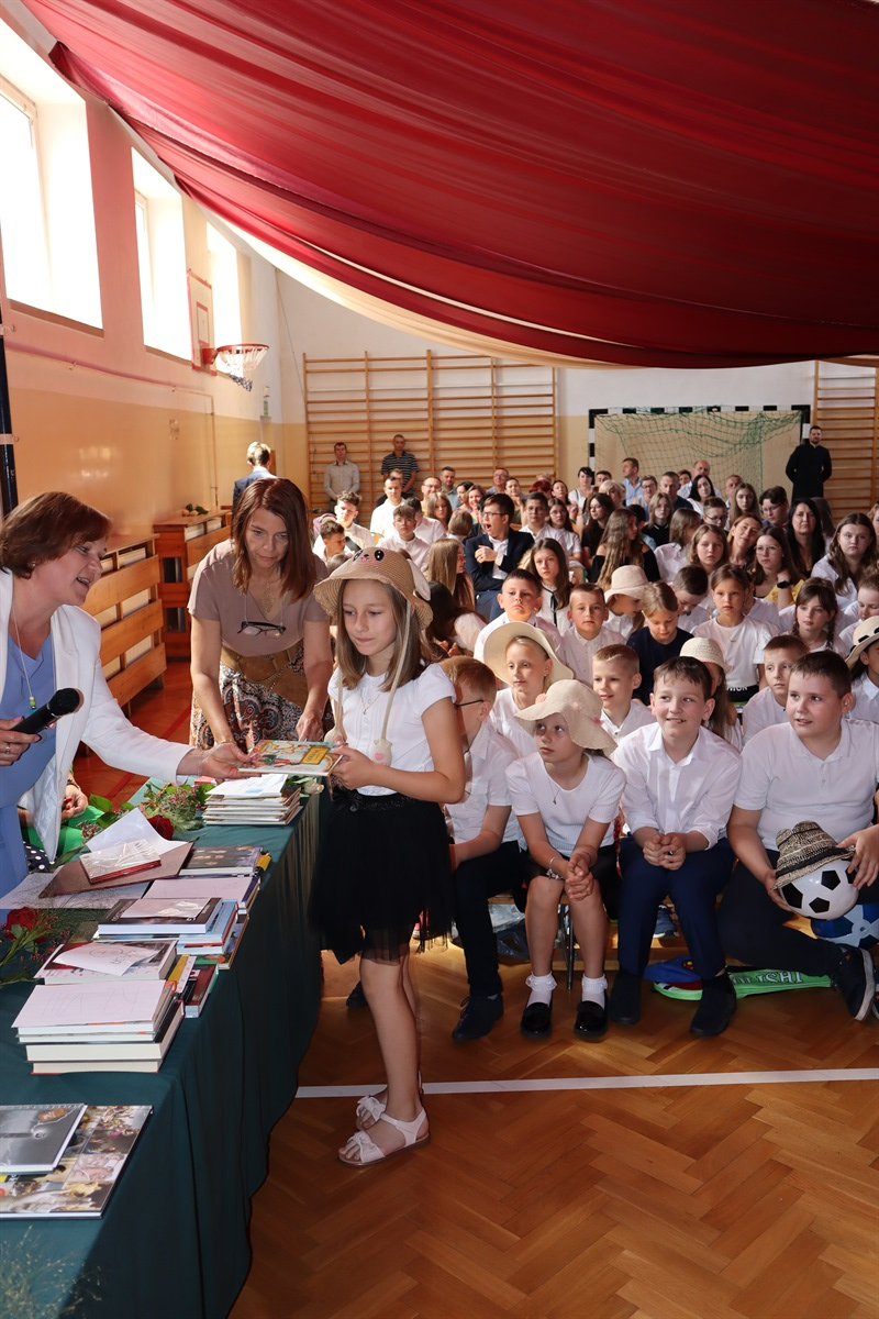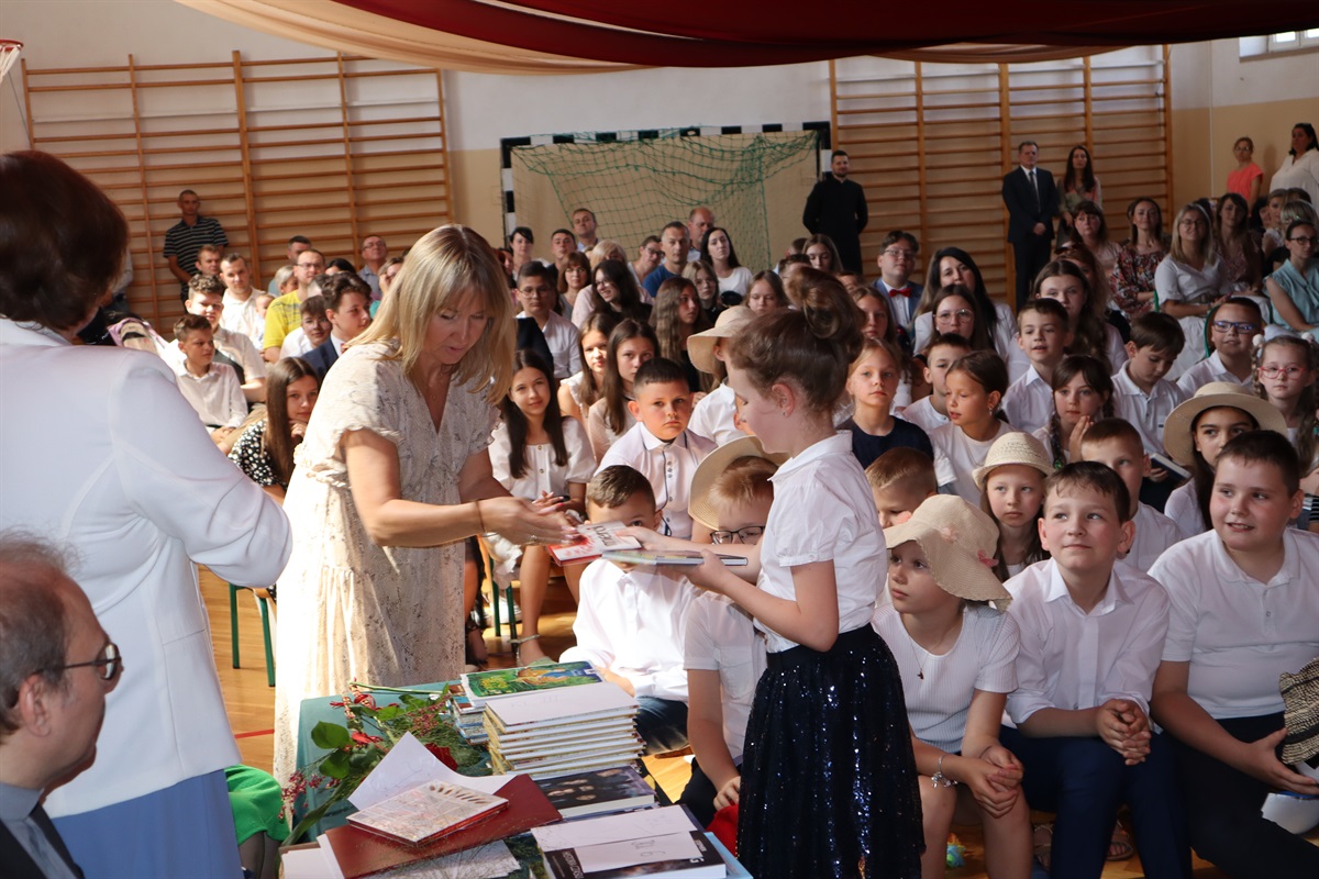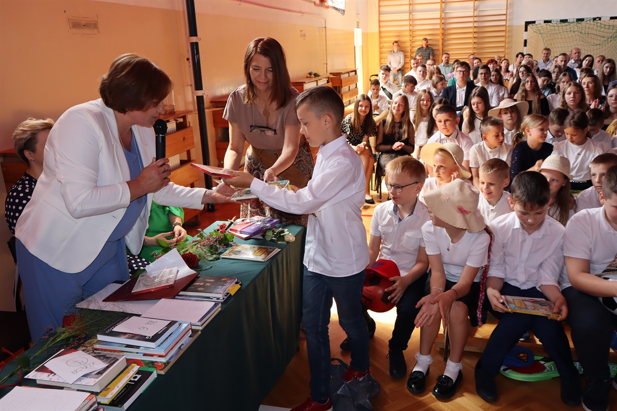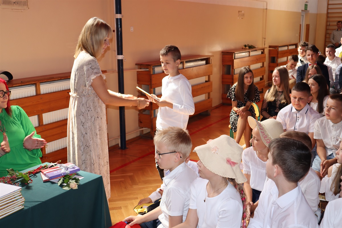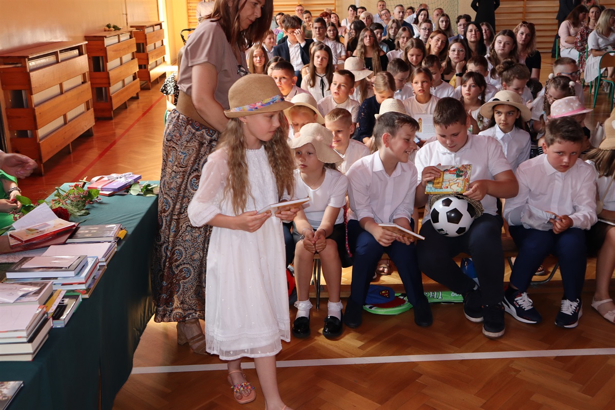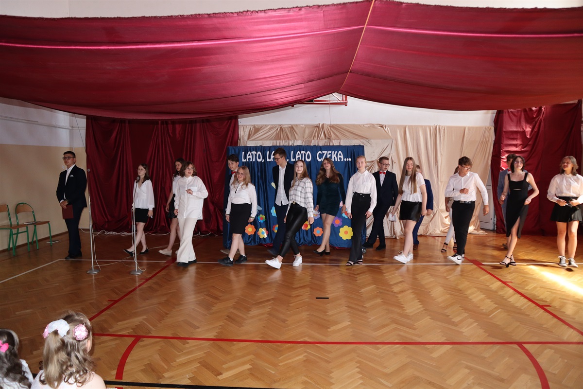Wszyscy gratulowali uczniom wyników w nauce, wyrażali radość z powodu trwającej rozbudowy szkoły i życzyli przyjemnego, efektywnego, bezpiecznego wypoczynku podczas nadchodzących wakacji. Podziękowania za cierpliwość i cały rok pracy popłynęły do nauczycieli, pracowników administracji i obsługi, a także rodziców, którzy aktywnie uczestniczyli w procesie nauki zdalnej. Dyrektor szkoły wraz z wychowawcami poszczególnych klas wręczyli nagrody uczniom wyróżnionym za wyniki w nauce i zachowaniu.
