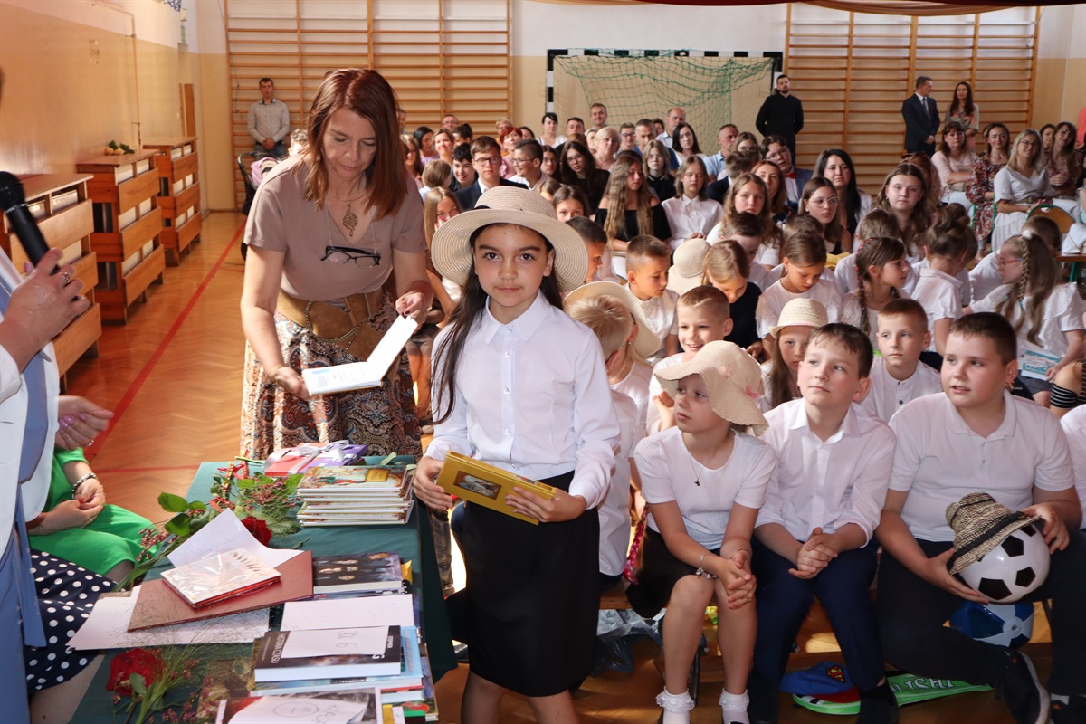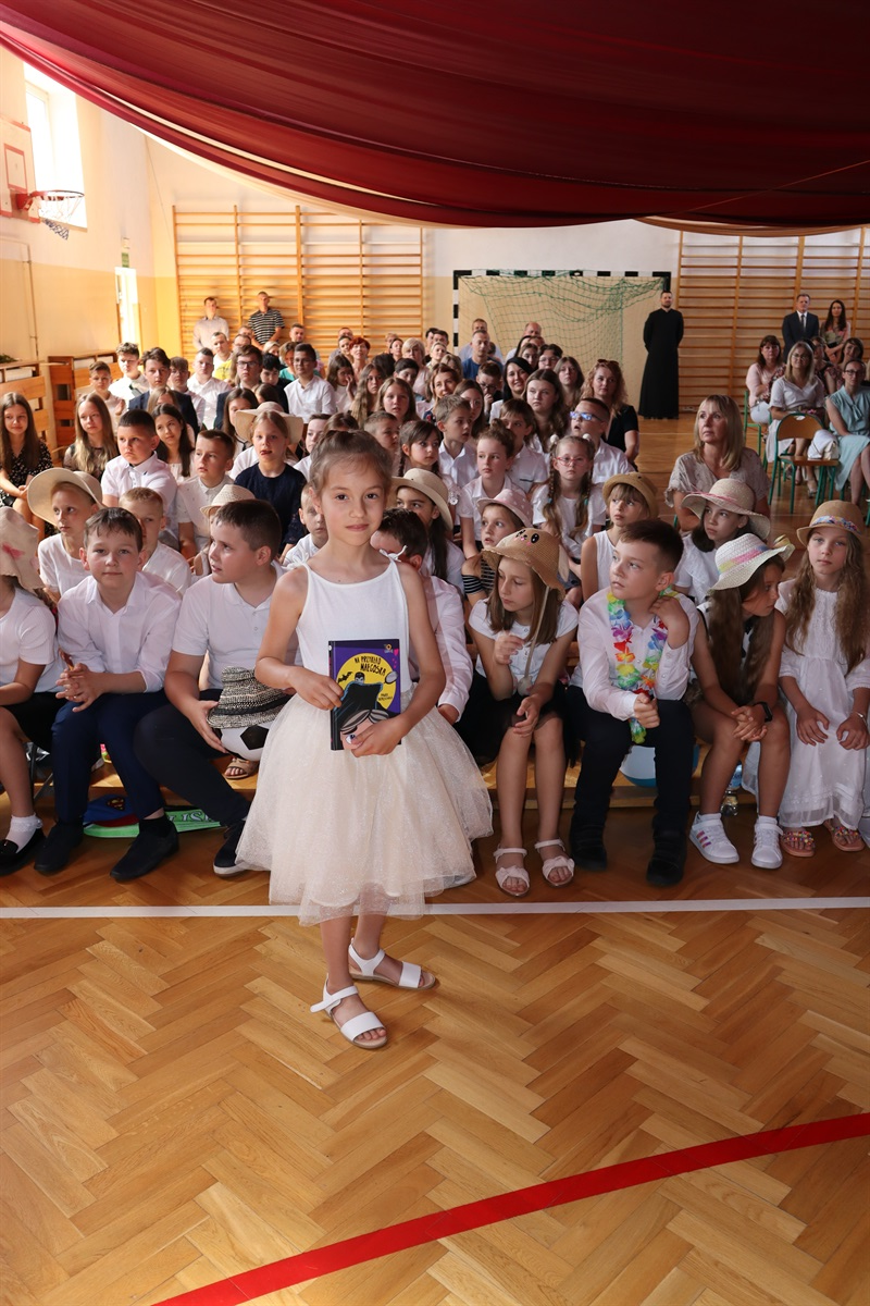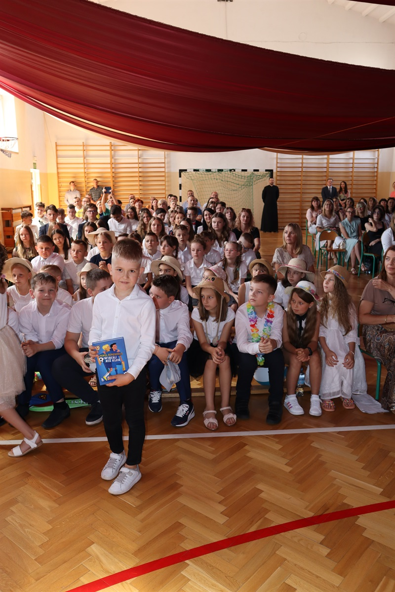 Zajęcia w roku szkolnym 2021/2022 dobiegły końca. Przed zasłużonymi wakacjami uczniowie odebrali świadectwa. Na tę uroczystość do Szkoły Podstawowej w Srocku przybyli uczniowie, rodzice, pracownicy szkoły i zaproszeni goście: Wójt Gminy Marceli Piekarek, ksiądz proboszcz Mariusz Staszczyk, radni Henryk Jończyk i Jacek Kozakowski oraz związane na co dzień ze szkołą panie Olga Małgorzaciak- przewodnicząca Rady Rodziców, a także Sylwia Dębska- prezes Stowarzyszenia Szkoła w Srocku.