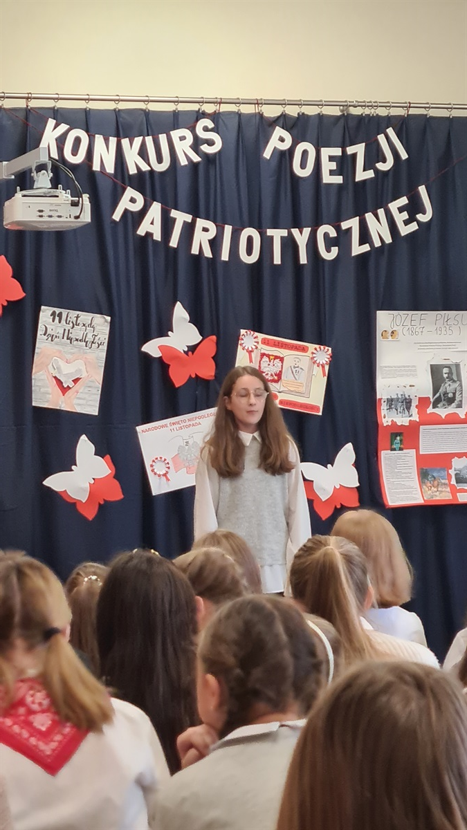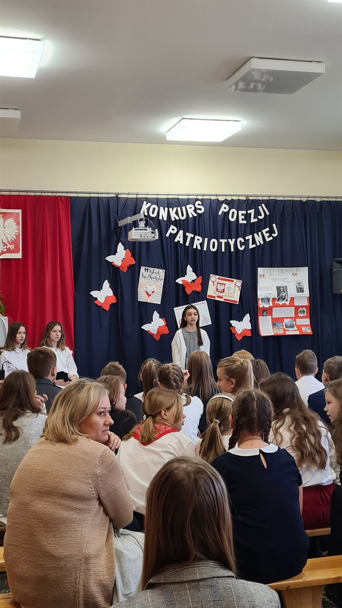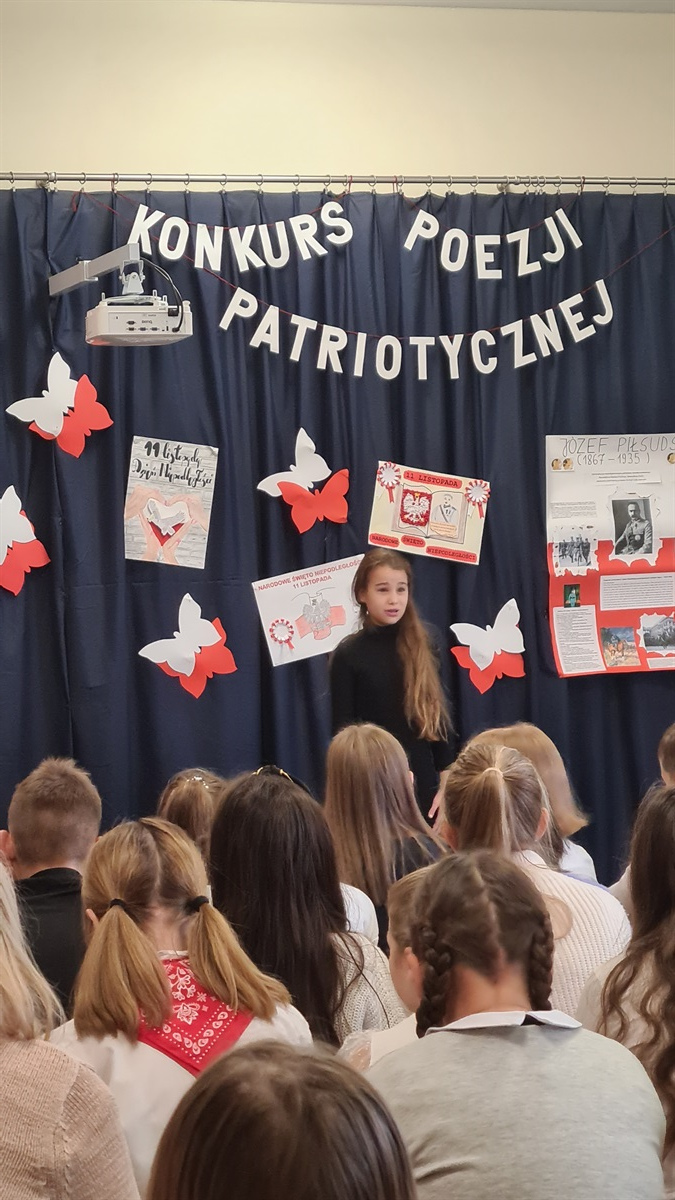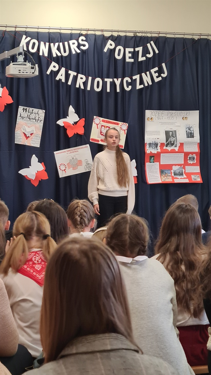 W dniu 14.11.2022 roku w Szkole Podstawowej im. Margarethy Kamprad w Jarostach odbył się gminny konkurs recytatorski poezji patriotycznej. Naszą szkołę reprezentowały uczennice: