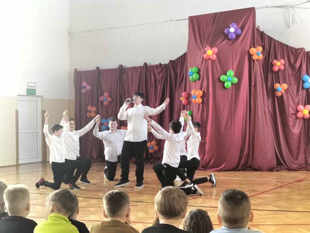 Chłopcy z naszej szkoły przygotowali wspaniałe przedstawienie z okazji Dnia Kobiet. Wszystkie Panie były zachwycone niespodzianką i występami chłopców. Wielkie brawa dla aktorów.