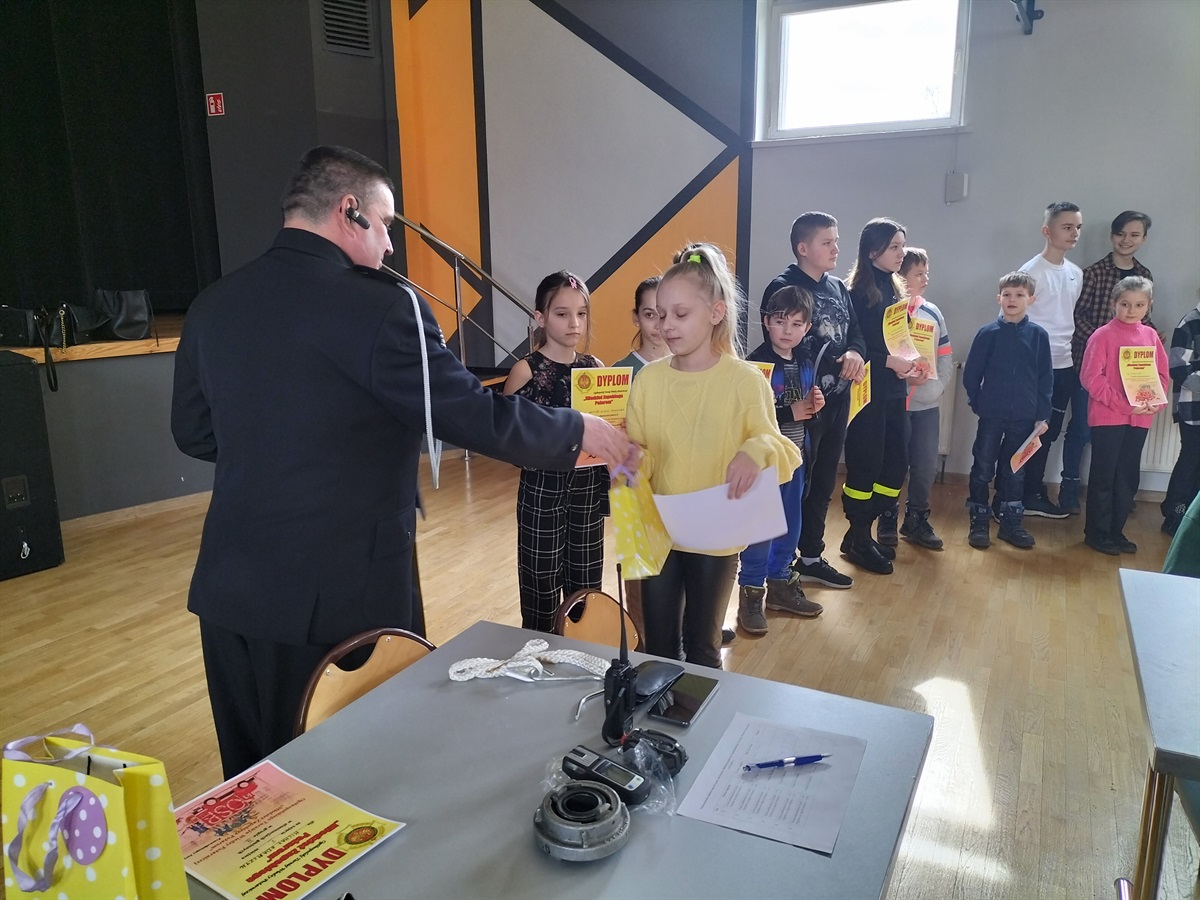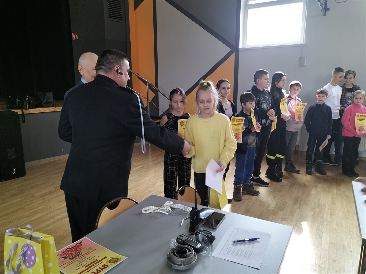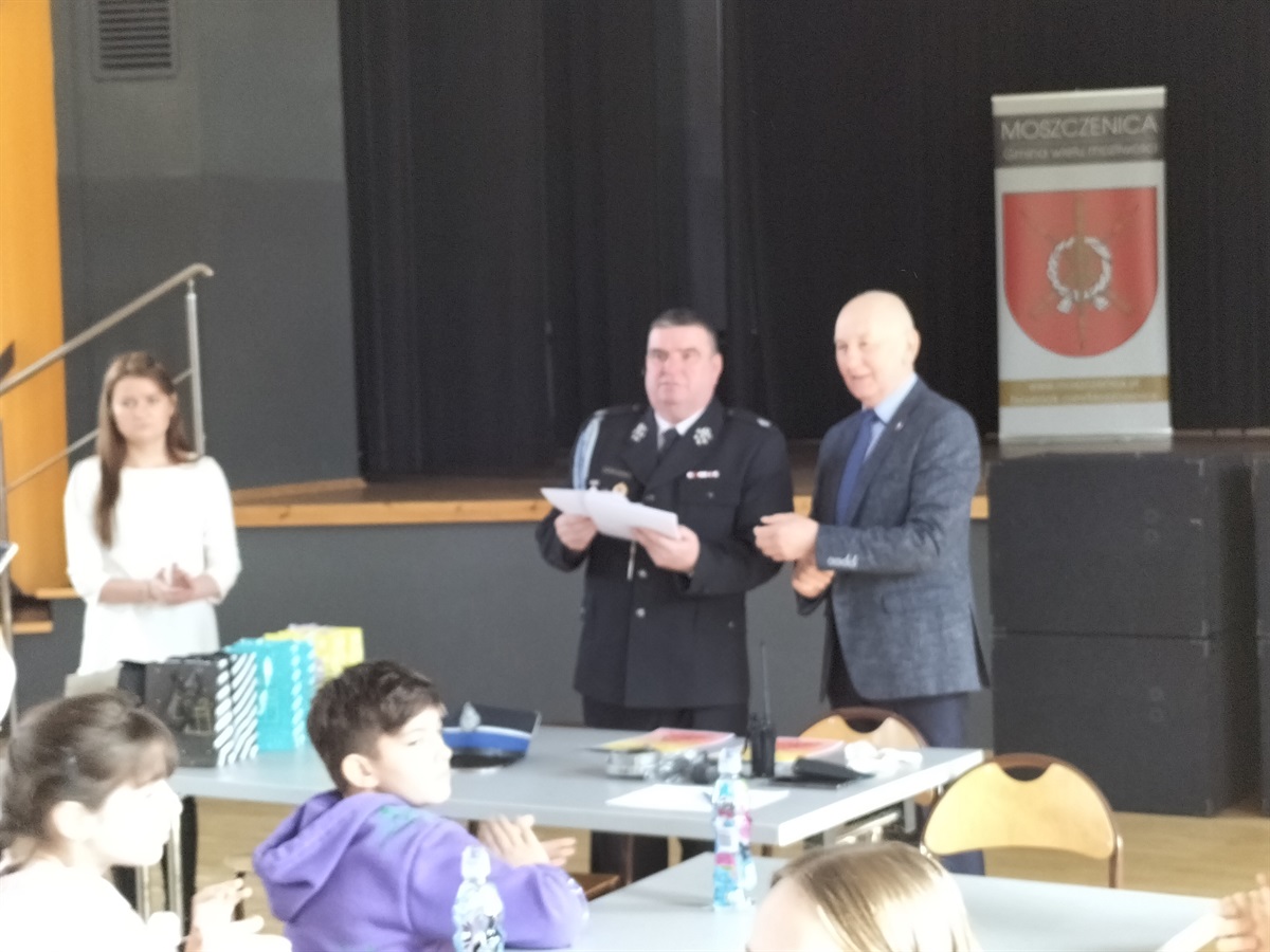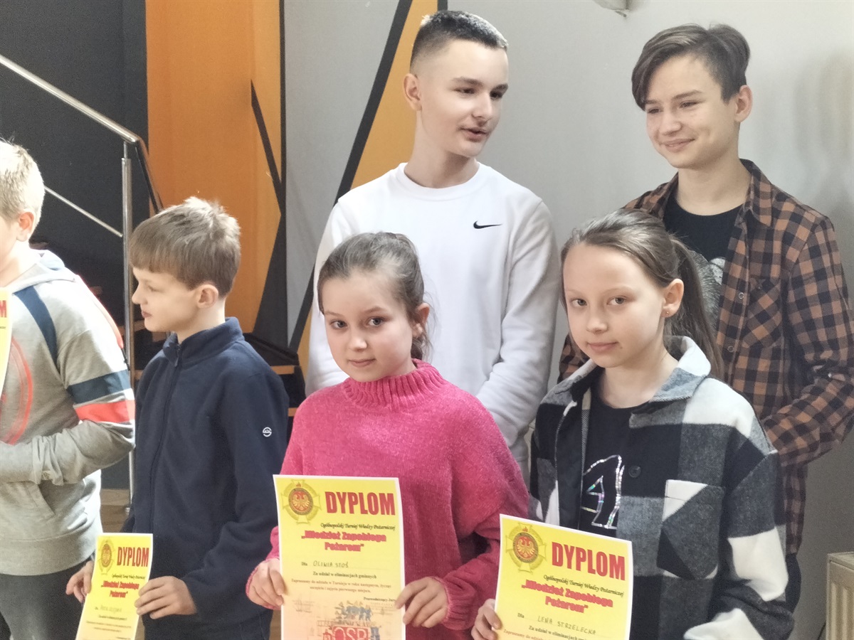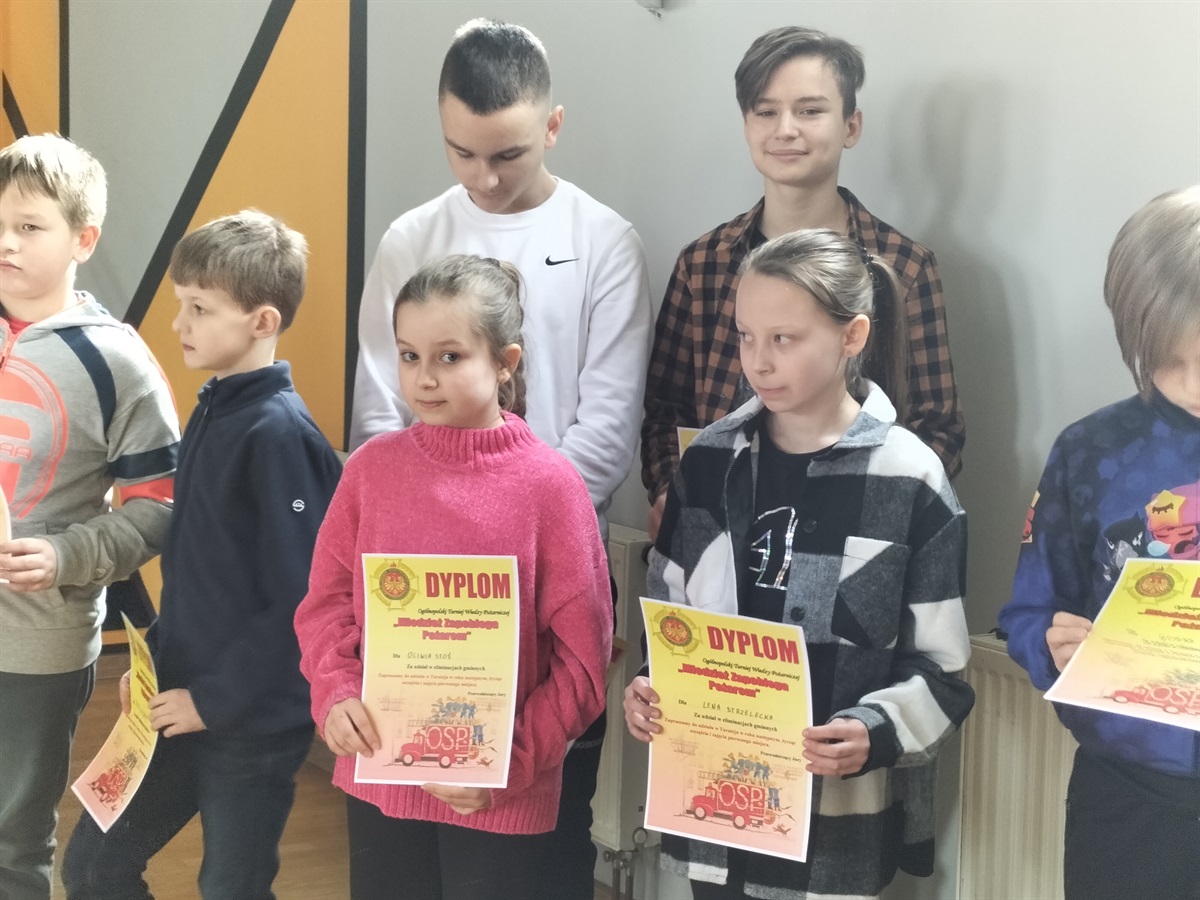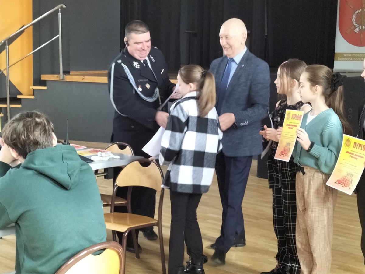 W dniu 15 marca 2023 roku,  w Gminnym Ośrodku Kultury i Sportu  Moszczenicy odbyły się Gminne Eliminacje Ogólnopolskiego Turnieju Wiedzy Pożarniczej „Młodzież Zapobiega Pożarom”. Naszą szkołę reprezentowały 3 uczennice z klasy IV: Nadia Rękar, Oliwia Stoś oraz Lena Strzelecka . Rywalizacja była bardzo wyrównana. Miło nam poinformować, że Nadia Rękar, w grupie wiekowej młodszej (klasy I-IV), zajęła 3. miejsce. Eliminacje przygotowane zostały przez pracownice Urzędu Gminy  Moszczenicy p. Ewelinę Ostrowską i Annę Niepsuj oraz Prezesa Zarządu Oddziału Gminnego Związku OSP RP w Moszczenicy p. Andrzeja Dróżdża. Nagrody wręczał Wójt Gminy p. Marceli Piekarek. Wszystkim uczestnikom gratulujemy wiedzy, a Nadii i jej koleżankom- życzymy sukcesów w przyszłych edycjach turnieju.