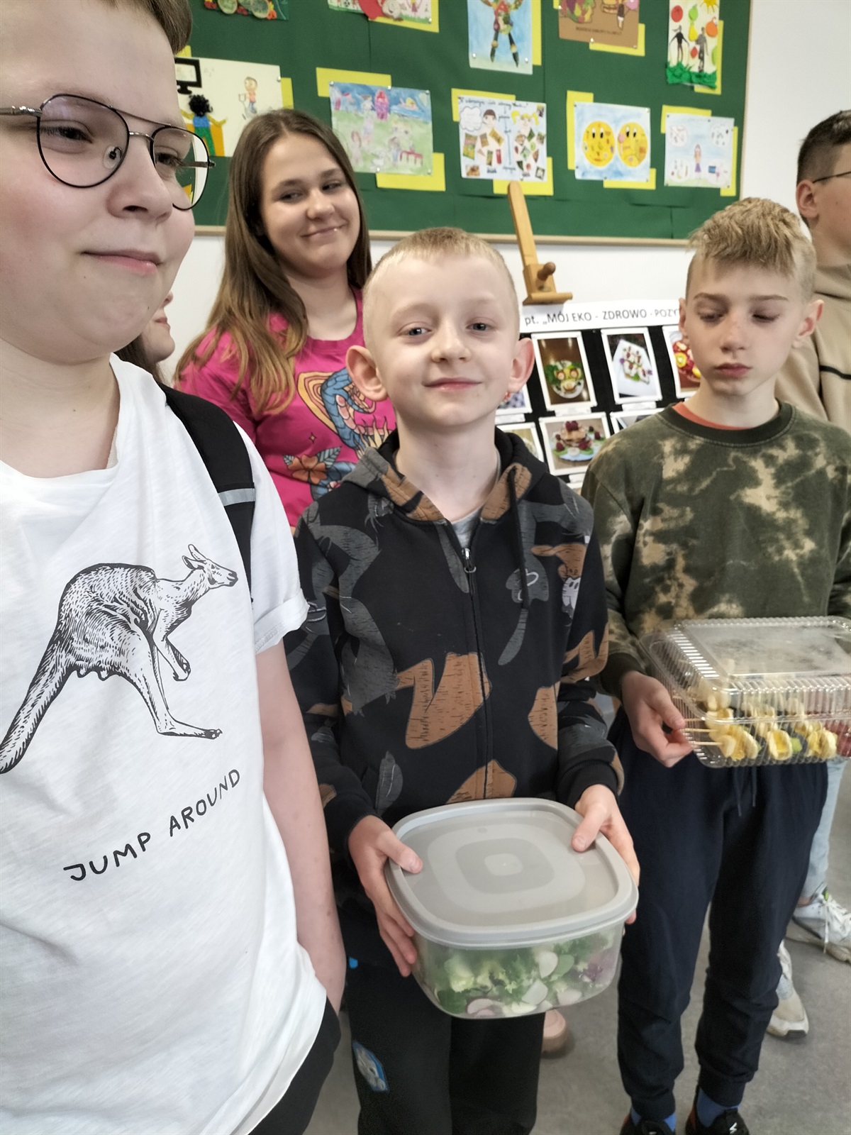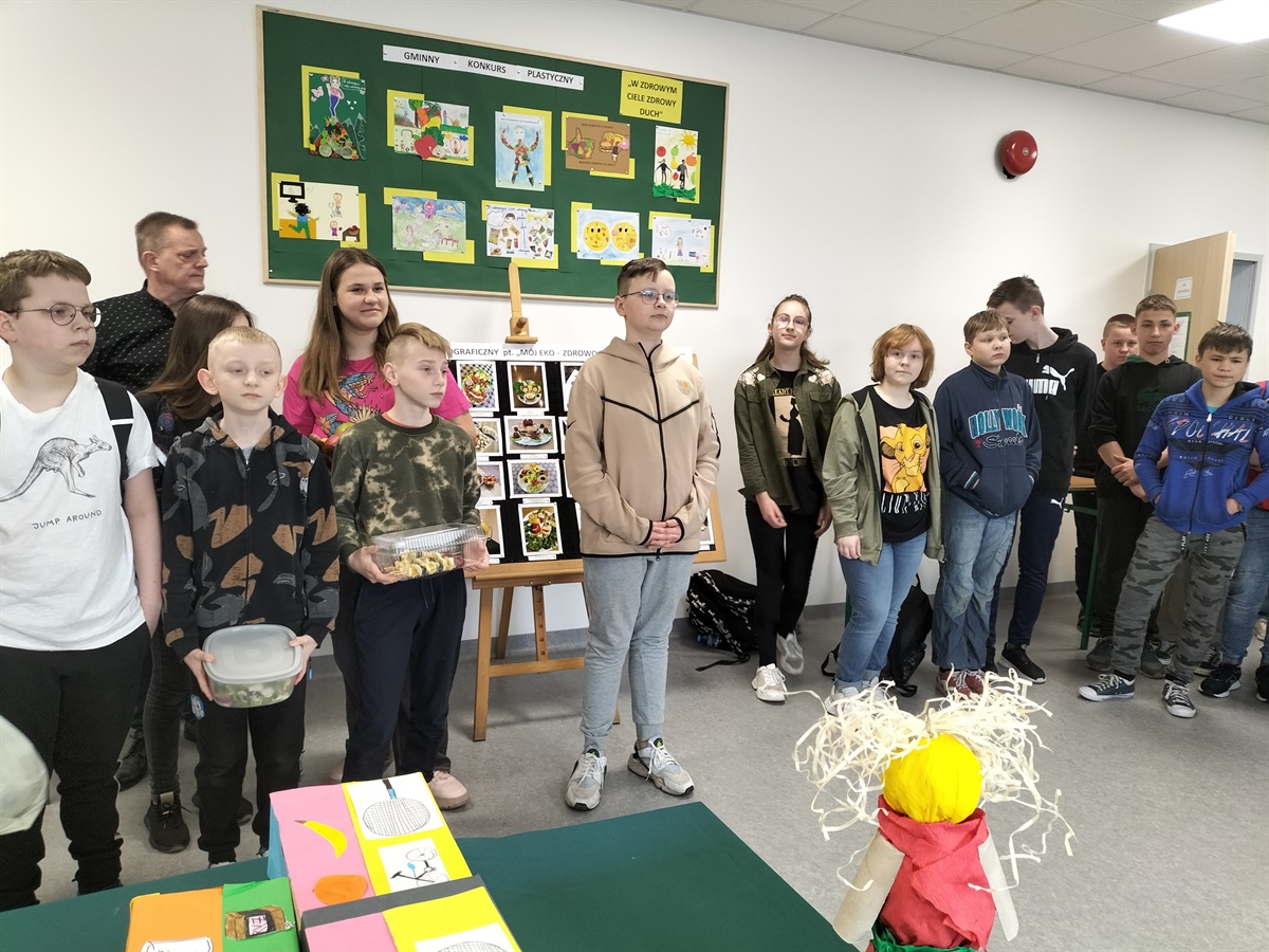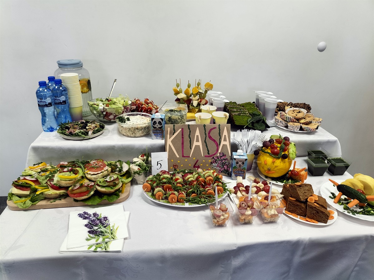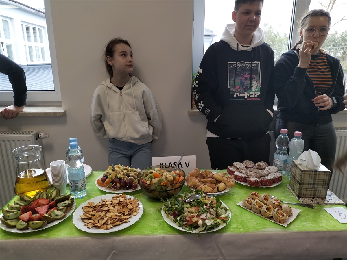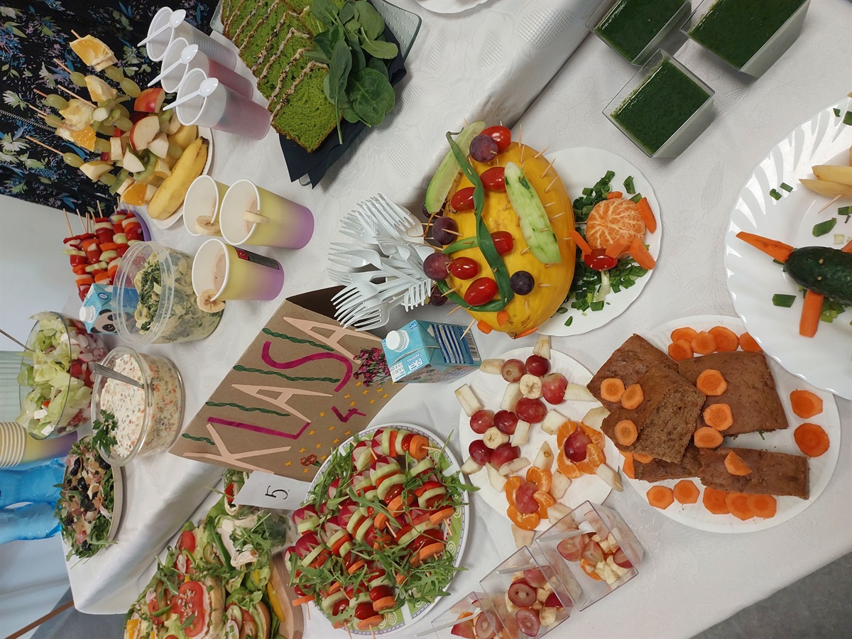 Oj, działo się wiele... Tego dnia uczniowie klas IV-VIII przygotowywali stoły zastawione zdrowymi, smacznymi, pięknie wyglądającymi,  a w dodatku- zbilansowanymi potrawami.  Trudno było wyłonić zwycięzców, dlatego ekologiczne trofea otrzymały wszystkie klasy, a pierwszą nagrodę  przyznano uczniom klasy IV.