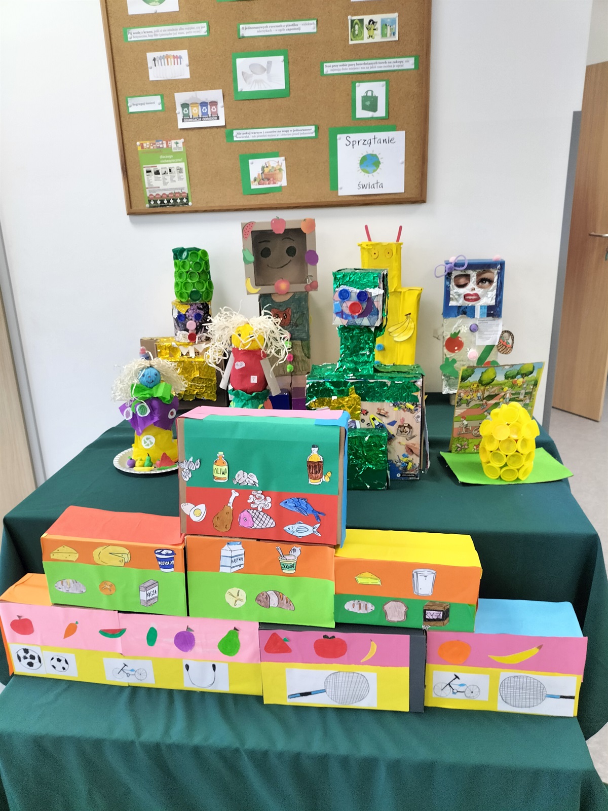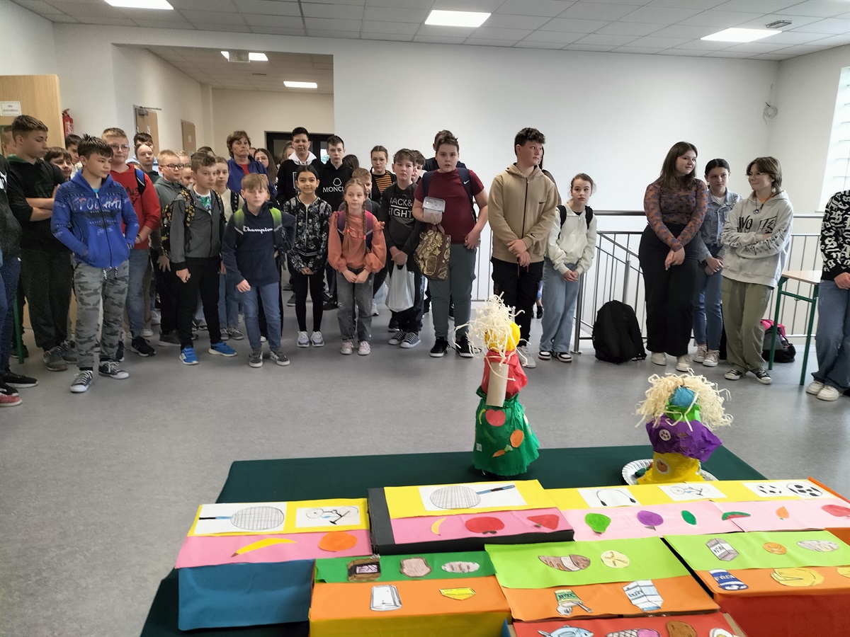 Uczniowie klas I-III przygotowali ciekawe postacie z wykorzystaniem materiałów „z odzysku” (wiadomo- ekologia!), a następnie- spędzili czas w sali gimnastycznej, rywalizując w konkurencjach sportowych.