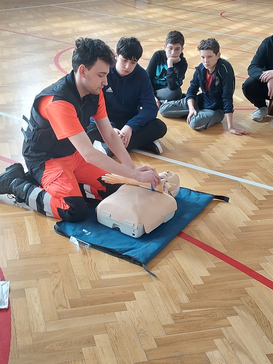 Dzięki współpracy z naszym byłym uczniem, obecnie ratownikiem medycznym- Wiktorem Barańskim, uczniowie klas IV-VIII przeszli szkolenie z zakresu pierwszej pomocy przedmedycznej.
