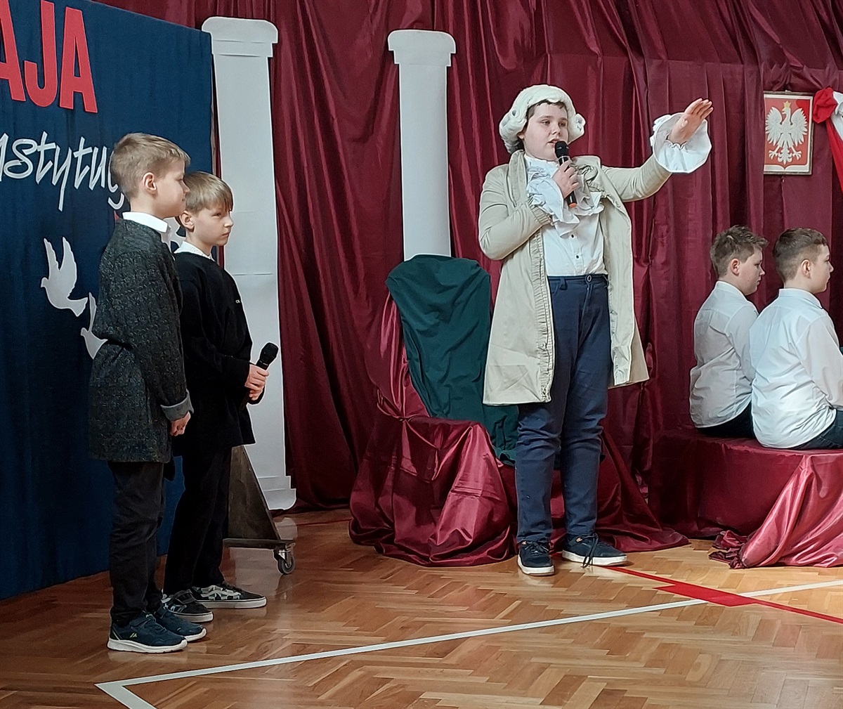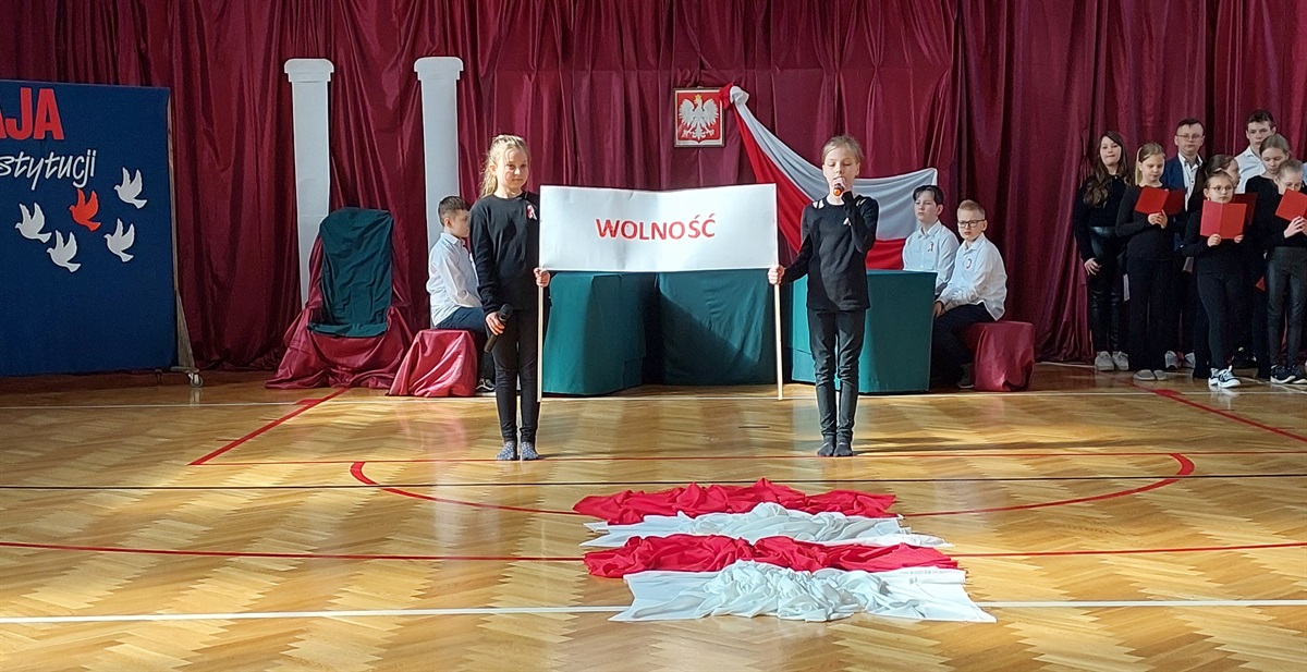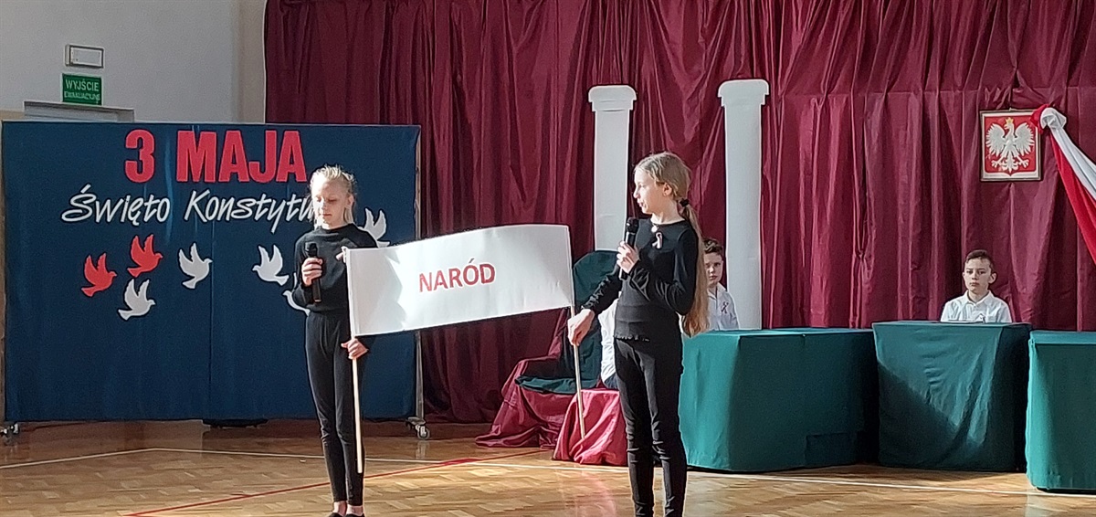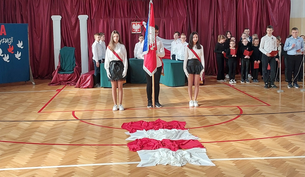 Uczniowie naszej szkoły uczcili  232. rocznicę uchwalenia Konstytucji 3 maja. Z tej okazji zaprezentowali montaż słowno-muzyczny. Przypomnieli, jak ważnym wydarzeniem w dziejach naszego państwa było uchwalenie tego aktu prawnego.