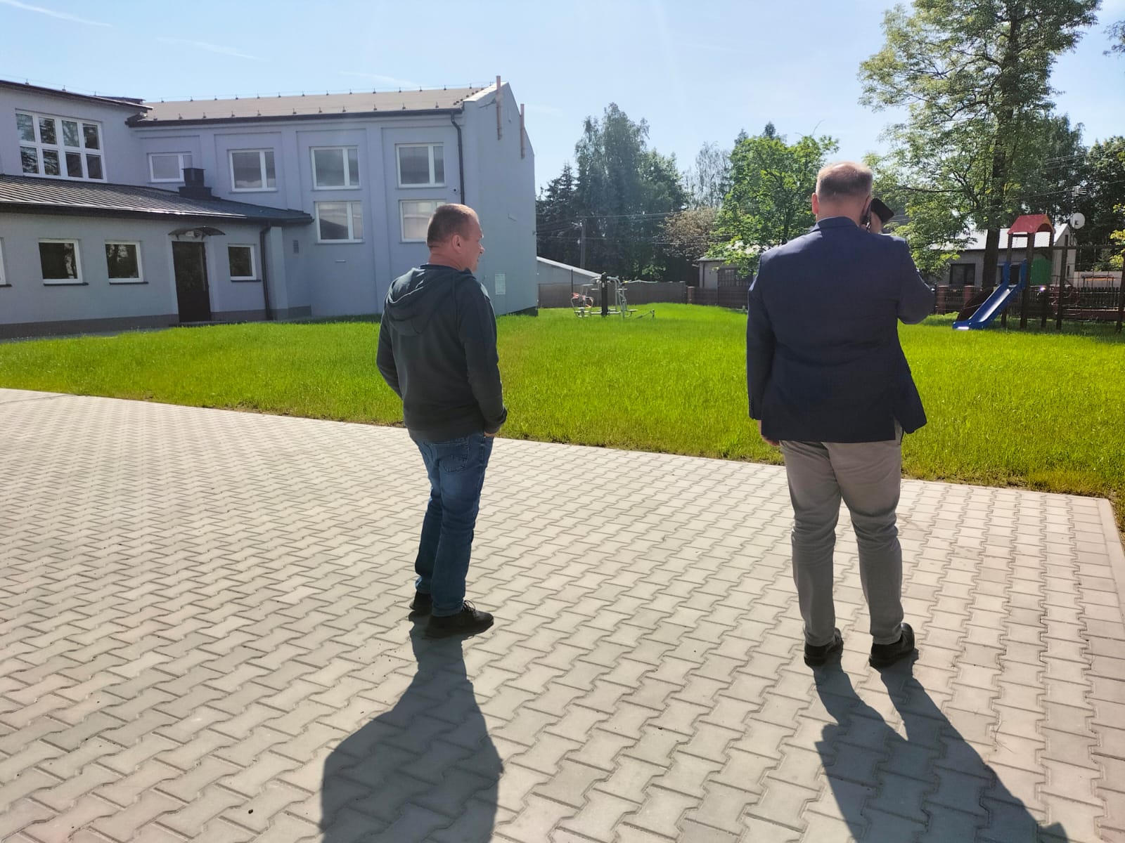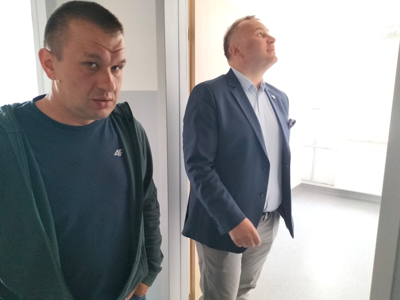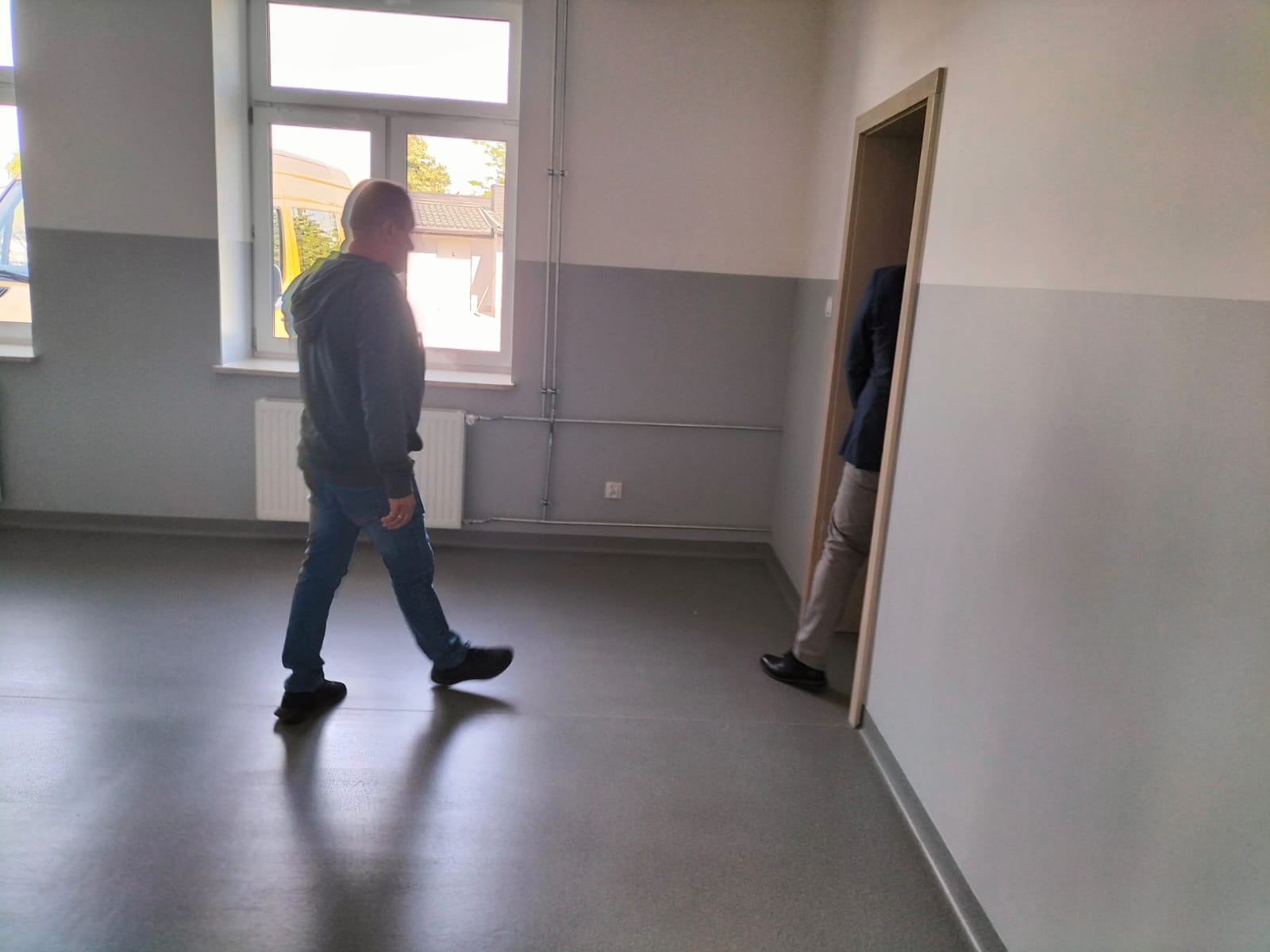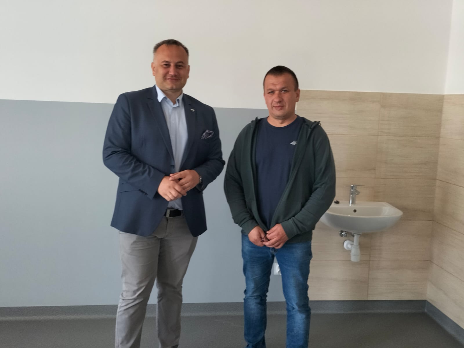 W ostatnich dniach maja naszą szkołę odwiedził Starosta Powiatu Piotrkowskiego Piotr Wojtysiak. Wraz z przedstawicielem firmy EL-MOT-. Sylwestrem Paturajem, oglądał efekty trwającego remontu.