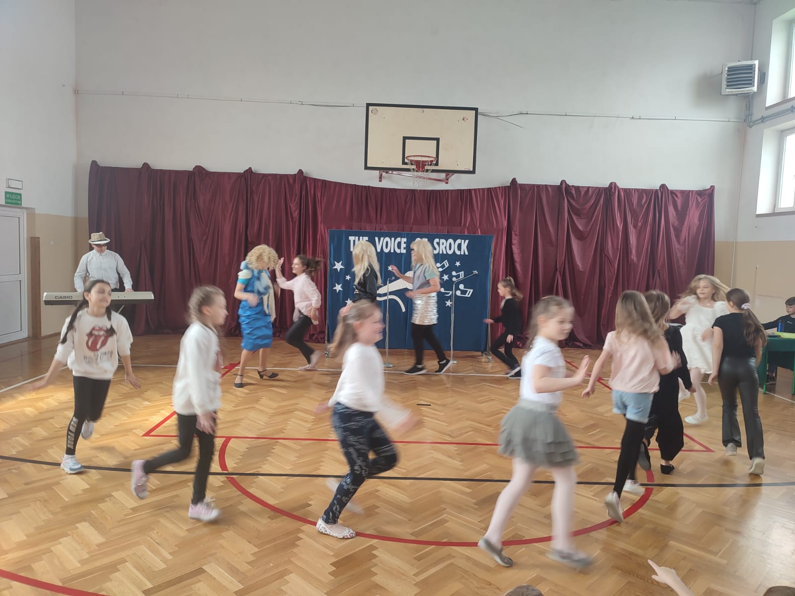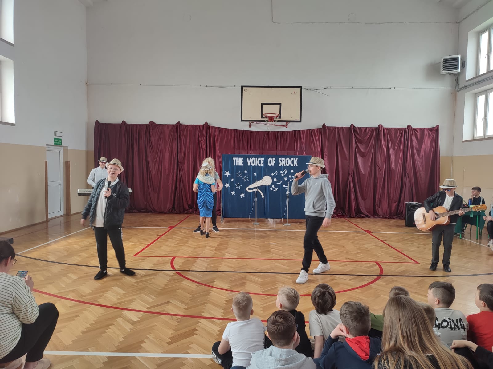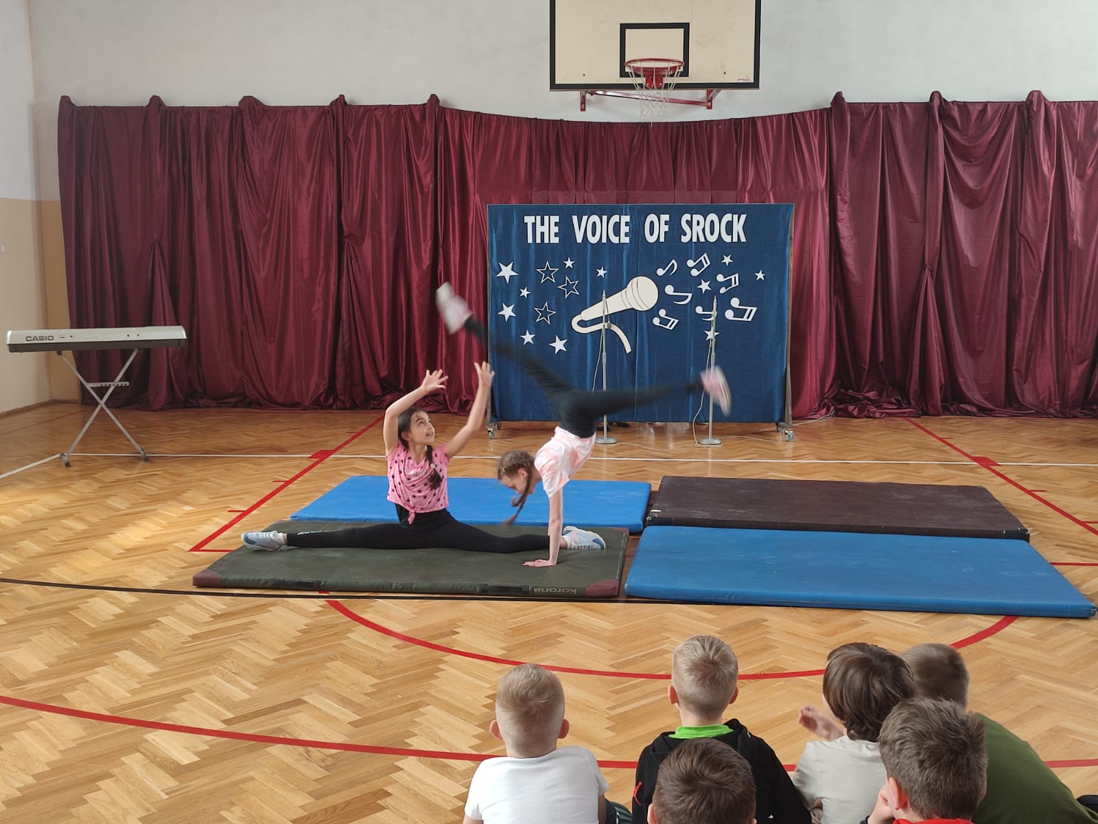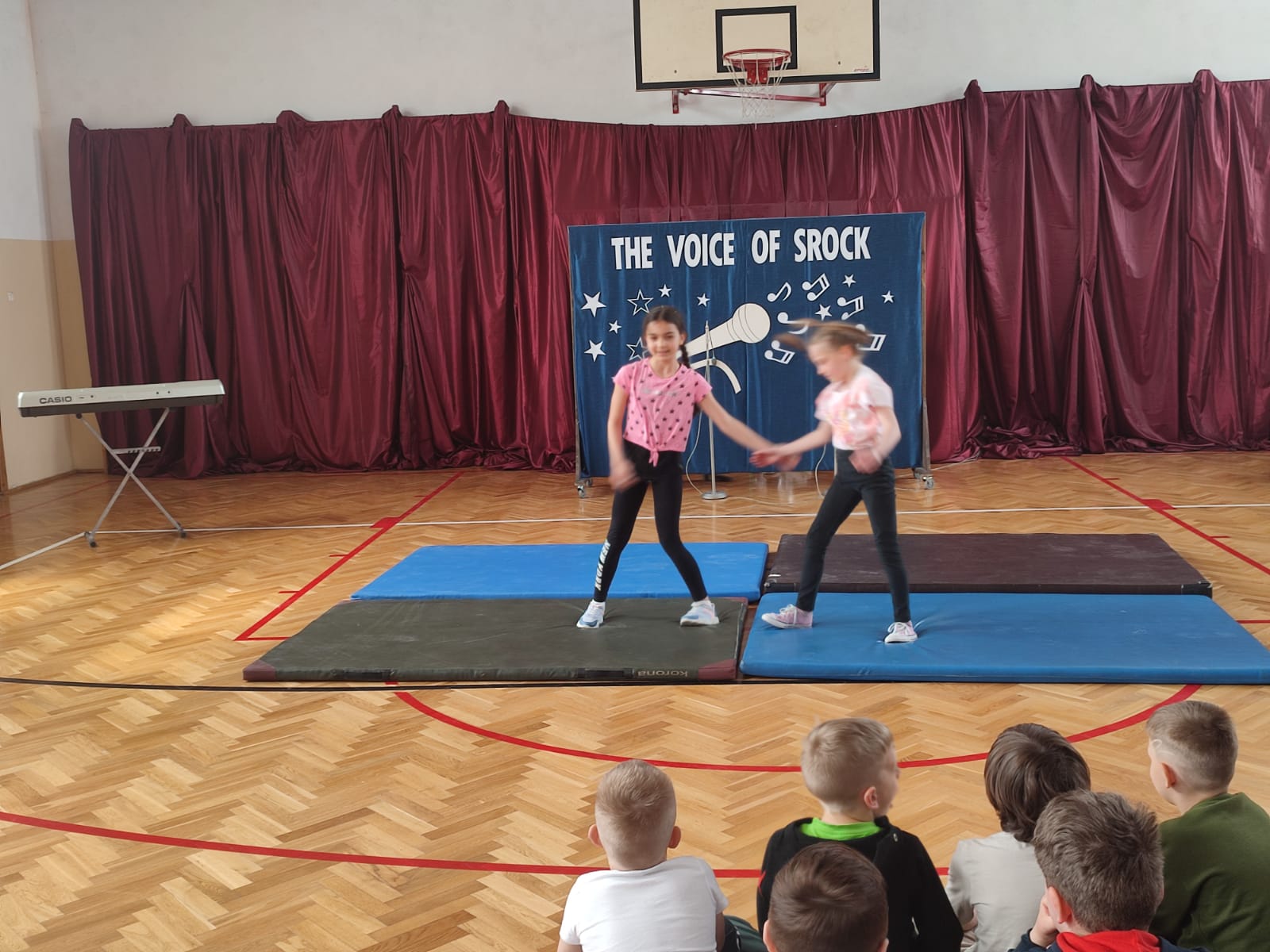 Ponadto, w tym roku, w ramach konkursu "Mam Talent"  przyznano główną nagrodę Zuzannie Oleksiewicz i Wiktorii Maciejek z kl. 4, które zachwyciły wszystkich swoimi umiejętnościami taneczno - akrobatycznymi. Widzowie mogli podziwiać również Nadię Dębską i Natalię tańczących  "Macarenę". Tegoroczna edycja konkursu "The Voice of Srock" została zorganizowana pod patronatem Punktu Informacji Europejskiej Europe Direct z Piotrkowa Tryb., który wraz z Radą Rodziców ufundował nagrody dla uczestników konkursowych zmagań. Dziękujemy.