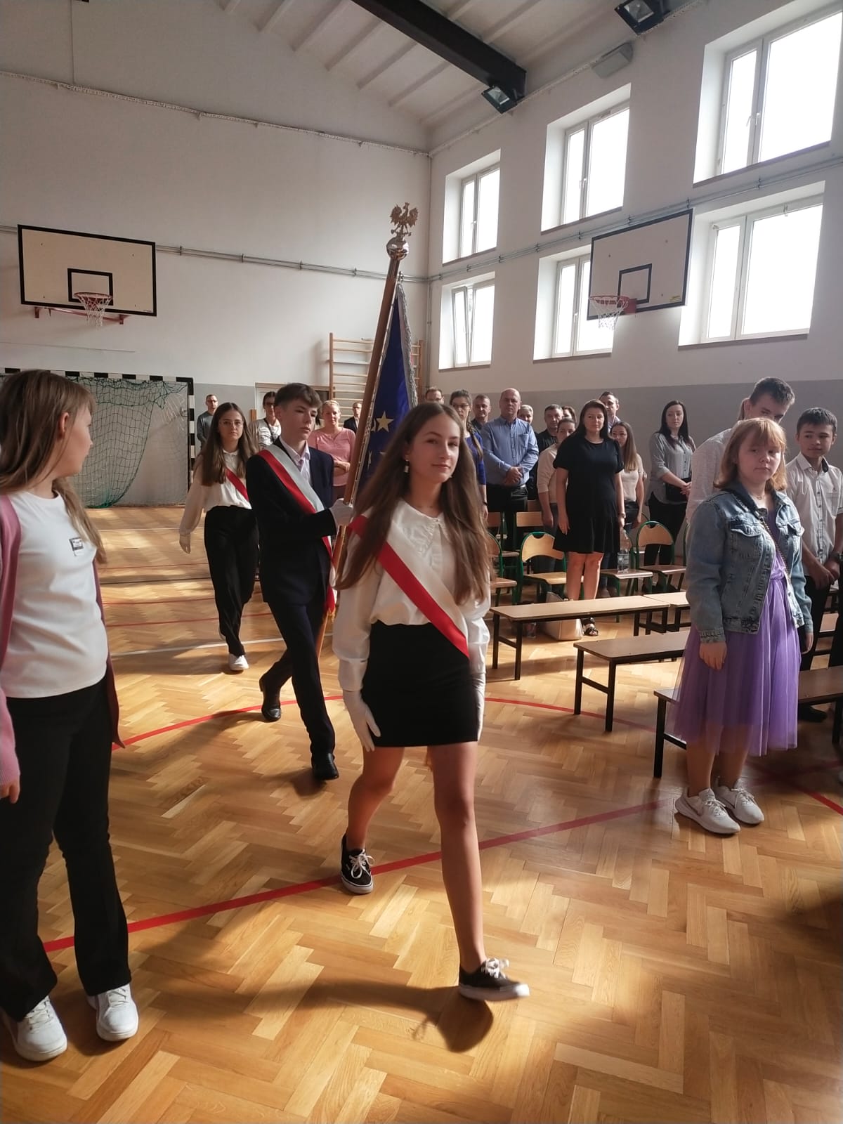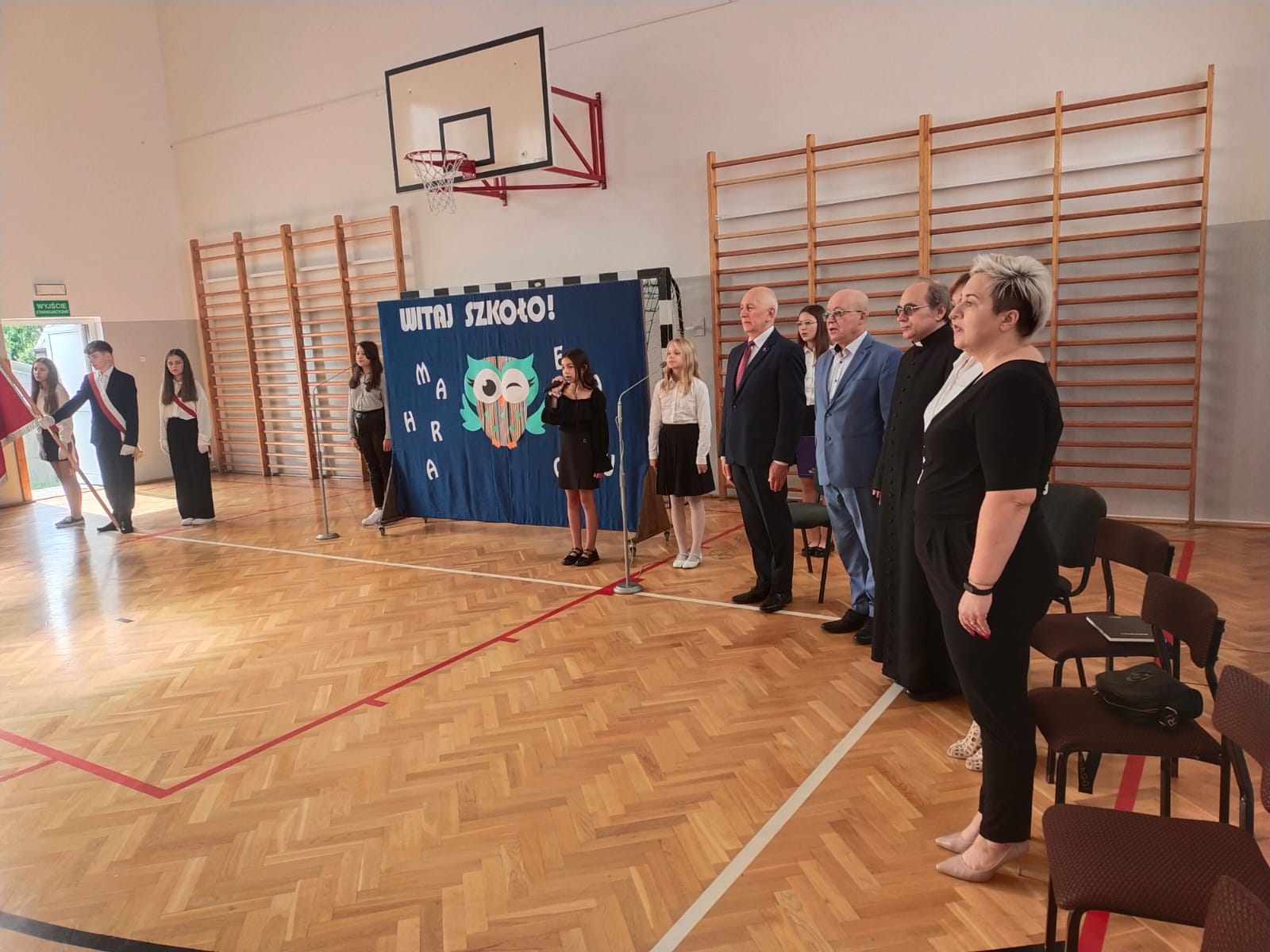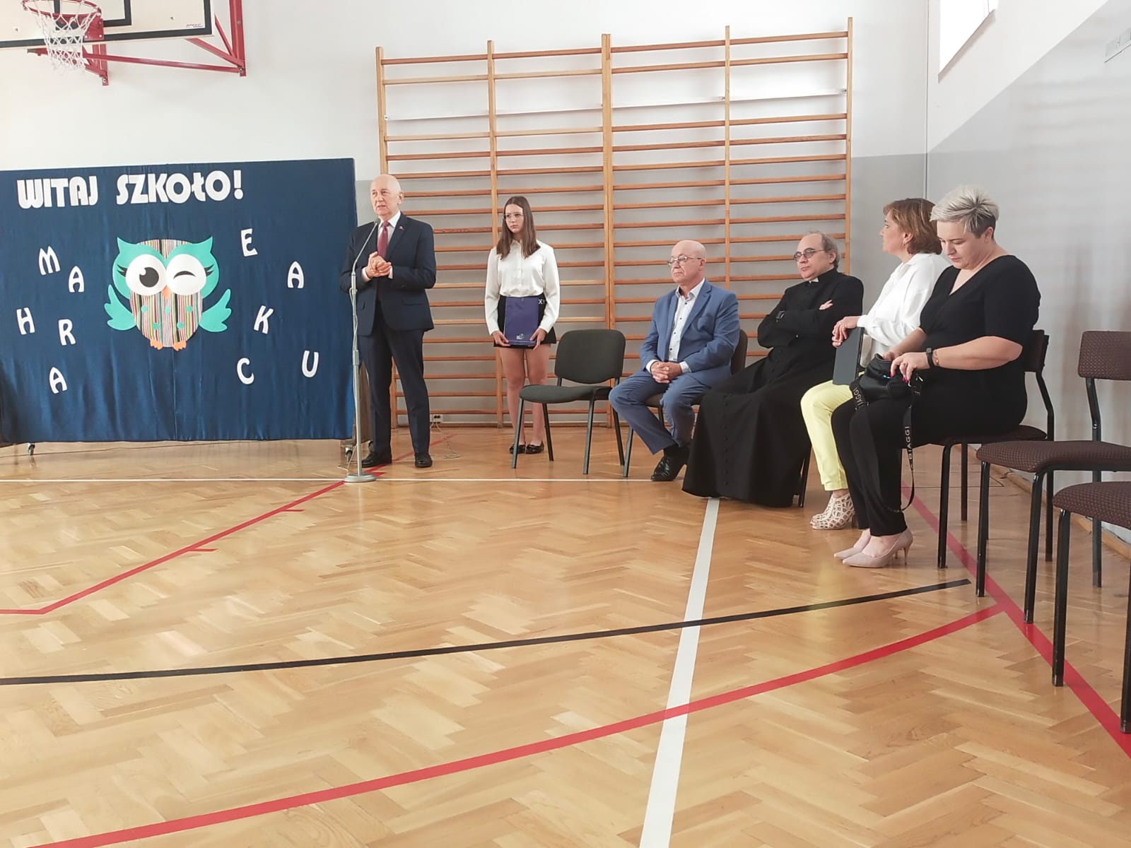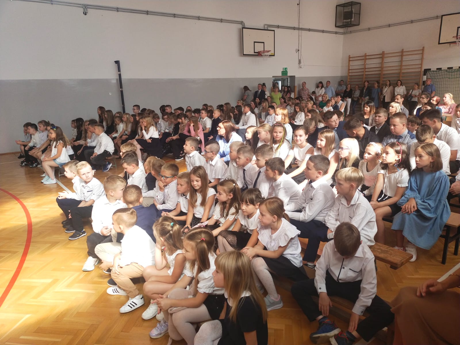 Inauguracja  roku szkolnego 2023/2024 w Szkole Podstawowej w Srocku tradycyjnie  rozpoczęła się od mszy świętej w kościele parafialnym. Po jej zakończeniu uczniowie, rodzice, pracownicy  i zaproszeni goście zgromadzili się w sali gimnastycznej. Po hymnie i oficjalnych powitaniach reprezentantka Samorządu Uczniowskiego żartobliwie zgłosiła gotowość uczniów do nauki. Wójt Marceli Piekarek, w imieniu własnym i przewodniczącej Rady Gminy Małgorzaty Domańskiej,  przekazał najlepsze życzenia na cały rok pracy i nauki. Przypomniał o trudzie, ale i sukcesie inwestycji rozbudowy i modernizacji budynku. Wójt i  pani dyrektor Iwona Pałygiewicz wspólnie zaprosili wszystkich obecnych na uroczystość poświęconą  podsumowaniu tych kilkuletnich działań, zaplanowaną na 27 września. Uczniowie usłyszeli też ciepłe słowa od księdza Mariusza Staszczyka oraz radnego Jacka Kozakowskiego. Pani dyrektor, na ręce pani prezes Sylwii Dębskiej, przekazała podziękowania  dla całego Stowarzyszenia „Szkoła w Srocku” za doposażenie jednej z sal lekcyjnych. Wyraziła także wdzięczność dla  wszystkich członków Rady Rodziców za sfinansowanie malowania sali gimnastycznej i modernizację placu zabaw dla dzieci. Szczególne słowa wdzięczności skierowała do państwa Anny i Szymona  Kopciów z firmy IKA Meble za podarowanie pięknego zestawu mebli do sali edukacji wczesnoszkolnej. Spotkanie zakończyły życzenia zdrowia, wytrwałości i sukcesów w rozpoczynającym się roku szkolnym. Uczniowie udali się z nauczycielami  na pierwsze godziny wychowawcze, a rodzice mogli obejrzeć odnowiony budynek.