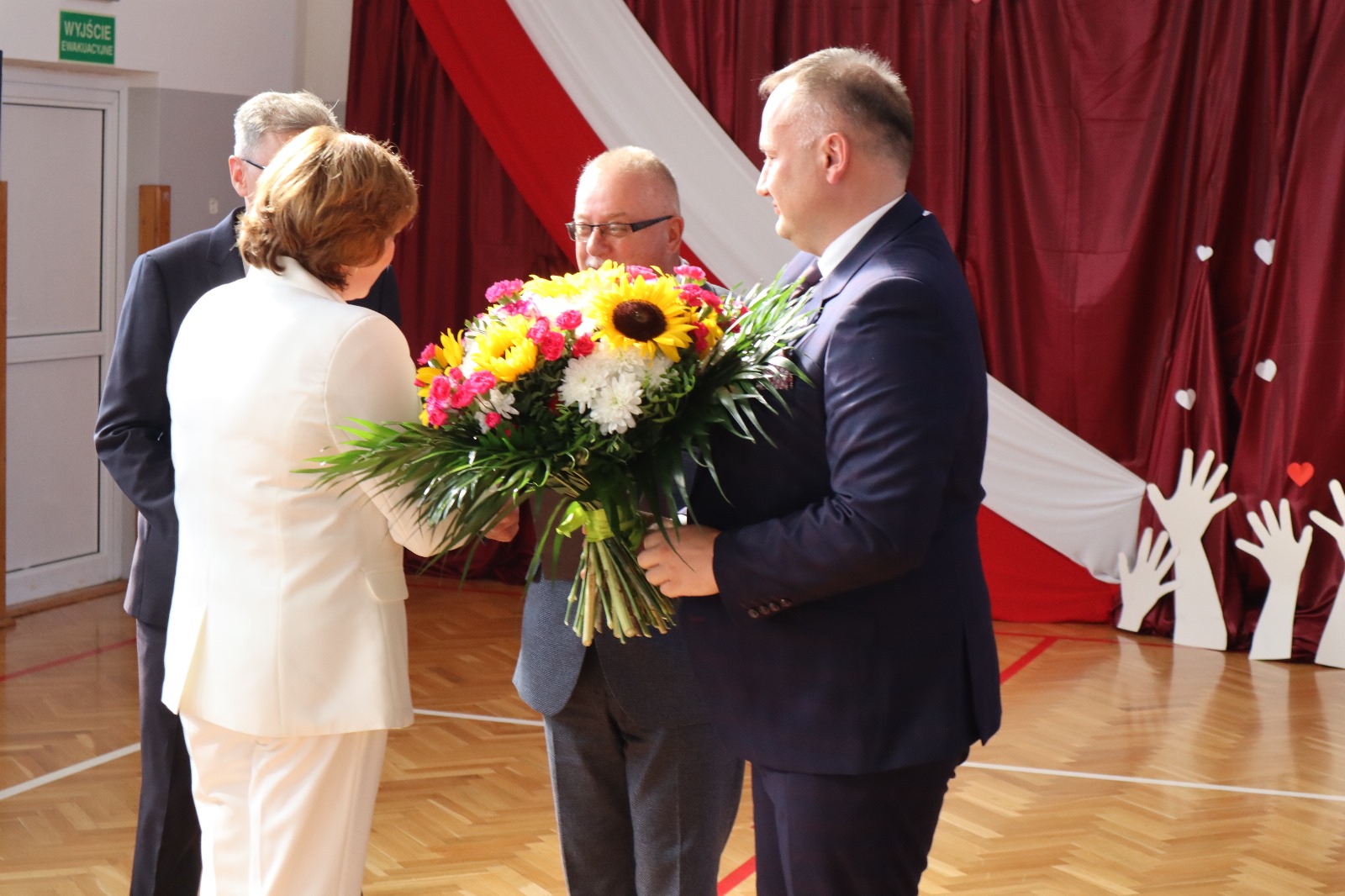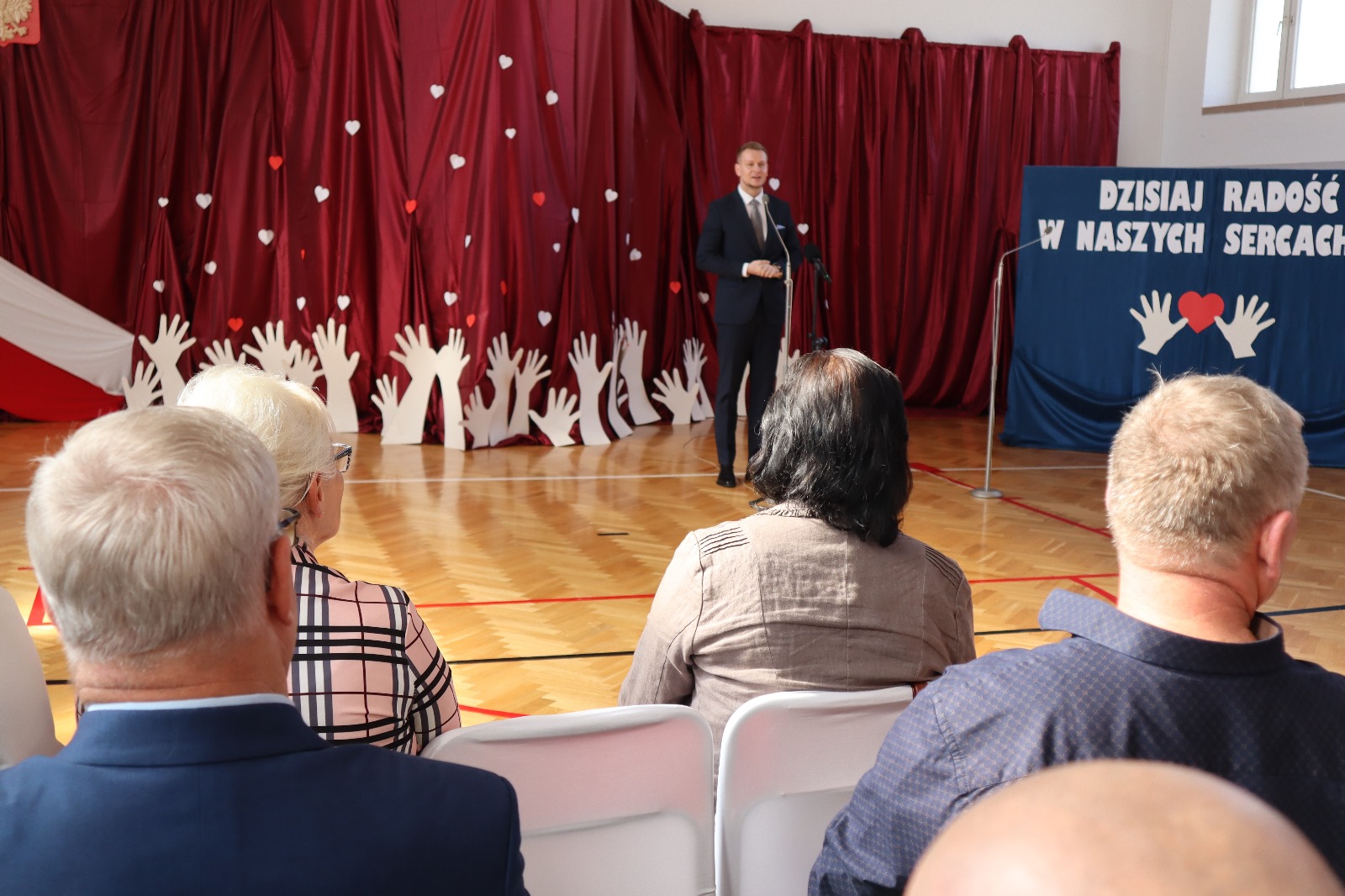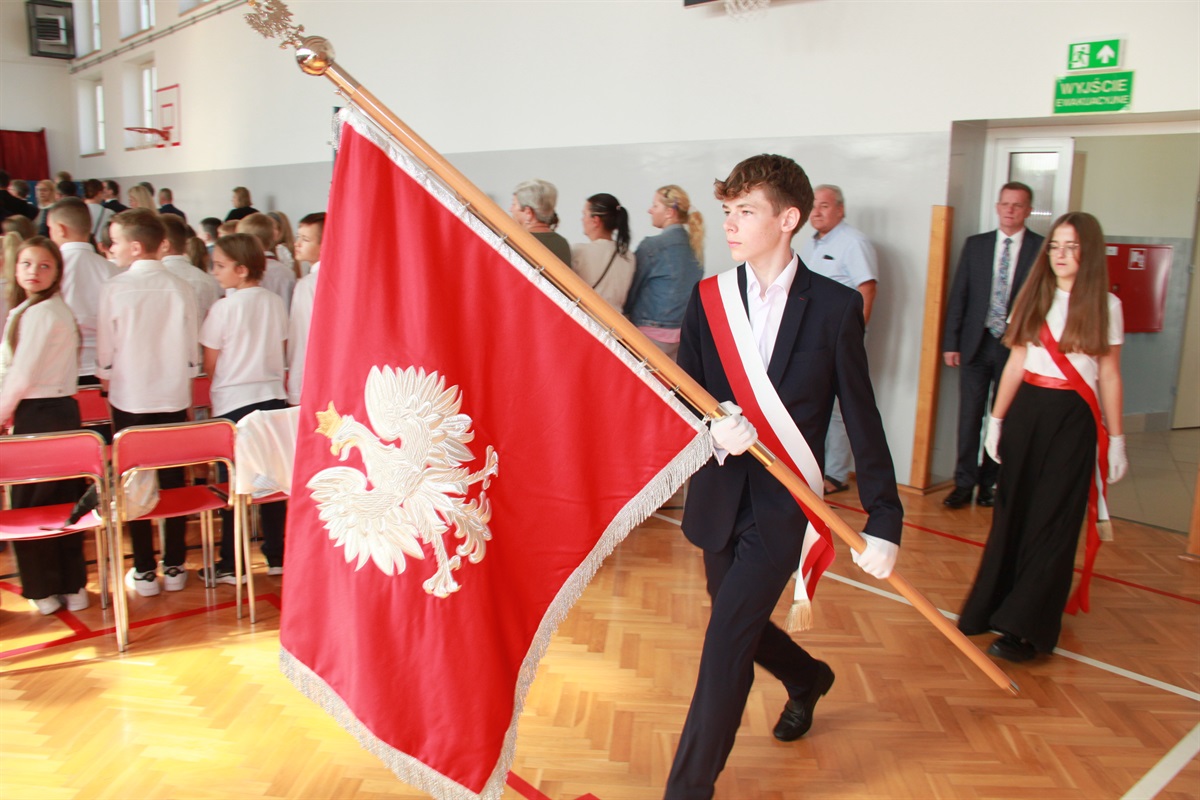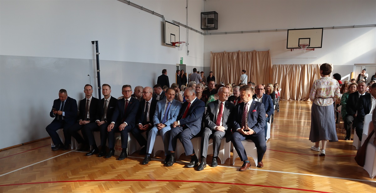 Po odśpiewaniu hymnu, wszystkich zebranych serdecznie powitali gospodarze uroczystości - Marceli Piekarek Wójt Gminy oraz Iwona Pałygiewicz dyrektor szkoły. Następnie, zaproszeni goście wygłosili okolicznościowe przemówienia; ich wypowiedzi przepełnione były pięknymi słowami na temat wartości, właściwego wychowania młodzieży, możliwości uczniów, rozwijania pasji, historii oraz przyszłości. Były też życzenia, kwiaty, gratulacje, prezenty.