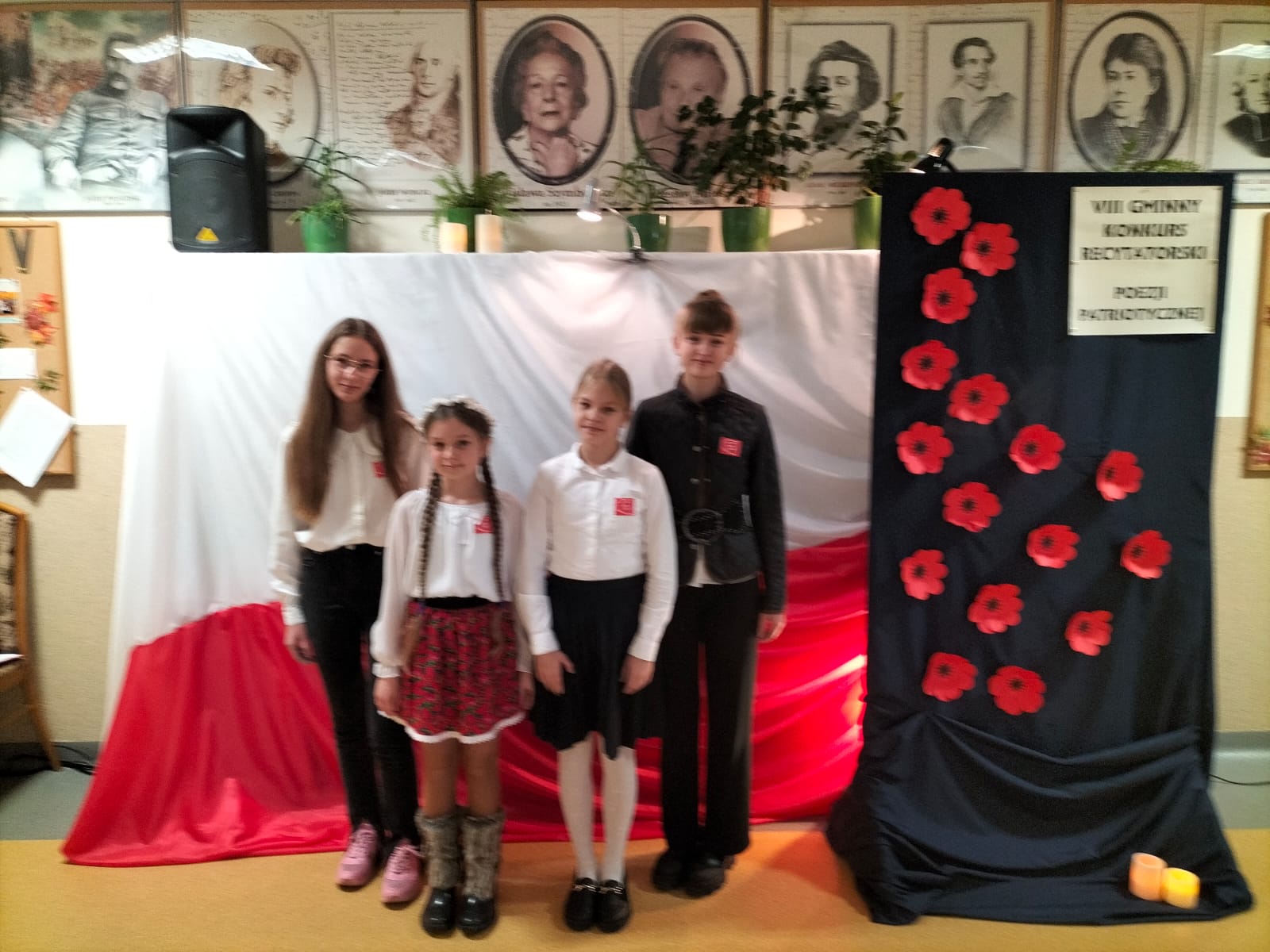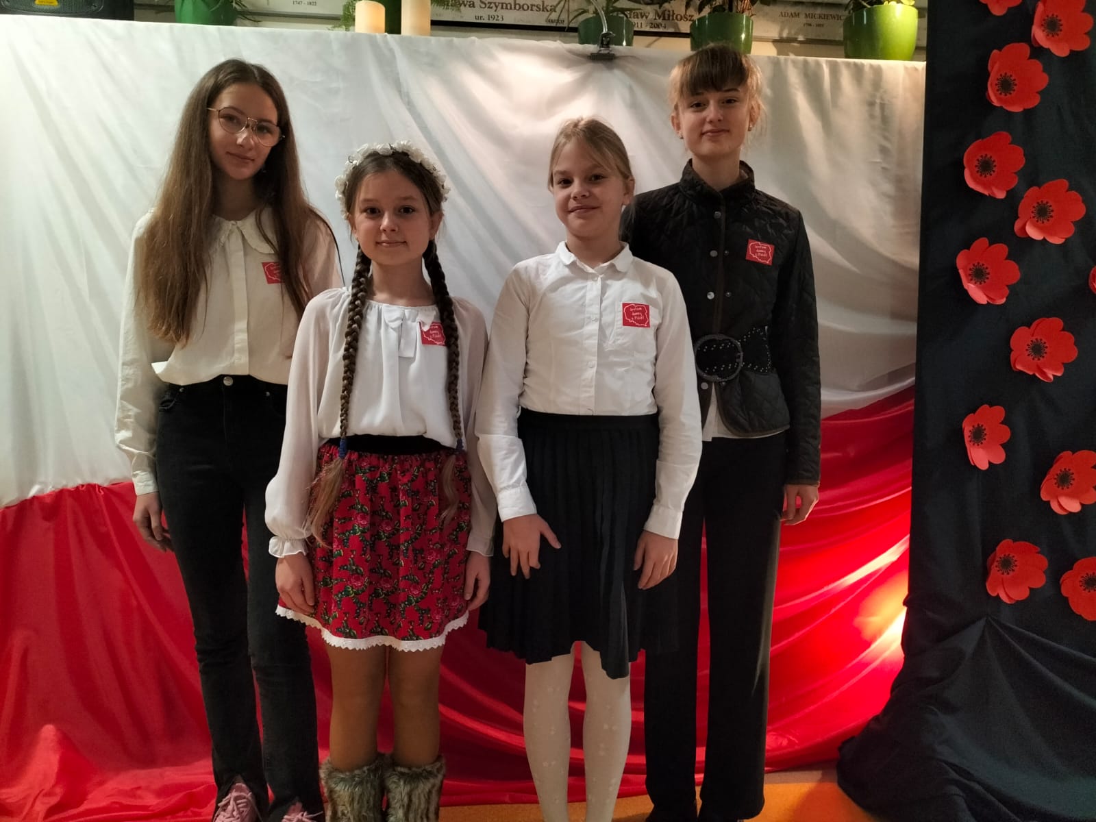 Miło nam poinformować, że w dniu 13 listopada 2023 r., w VIII Gminnym Konkursie  Recytatorskim Poezji Patriotycznej organizowanym przez Szkołę Podstawową im. Margarethy Kamprad  w Jarostach, nasza szkoła odniosła wspaniały sukces. Jury w osobie pana Tomasza Trzaskacza- Dyrektora Delegatury ŁKO w Piotrkowie Trybunalskim oraz pani Jolanty Pietrzak- Inspektora ds. Oświaty w Gminie Moszczenica doceniło występy naszych uczennic:  Zuzia Małgorzaciak (kl. IV) oraz Julia Stoś (kl. VII) otrzymały nagrody, a Oliwia Stoś (kl. V) i Kornelia Badek (kl. VIII)- wyróżnienia.