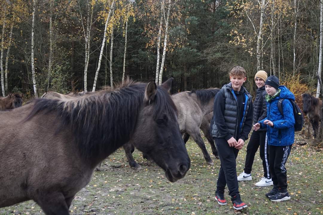 W ramach projektu „Eko-pozytywni” , sfinansowanego przez Zarząd Powiatu Piotrkowskiego, w dniu 13 listopada 2023 roku uczniowie klasy VI i VII spotkali się na terenie Nadpilicznych Parków Krajobrazowych z siedzibą w Moszczenicy, z kolegami i koleżankami ze Szkoły Podstawowej w Bogdanowie oraz Szkoły Podstawowej w Parzniewicach. Wyjazd ten zorganizowano, aby lepiej się poznać z naszymi partnerami z gminy Wola Krzysztoporska oraz porozmawiać o nurtujących nas tematach ekologicznych. Przy okazji tego spotkania Pan Maciej Sobański przeprowadził wyjątkowe warsztaty na temat Parków Krajobrazowych Województwa Łódzkiego. Z kolei Pan Szymon Kielan oprowadził uczestników wycieczki  po terenie parku. Zwieńczeniem spotkania było wspólne ognisko.  Dziękujemy Stowarzyszeniu "Szkoła w Srocku" za umożliwienie udziału w projekcie.