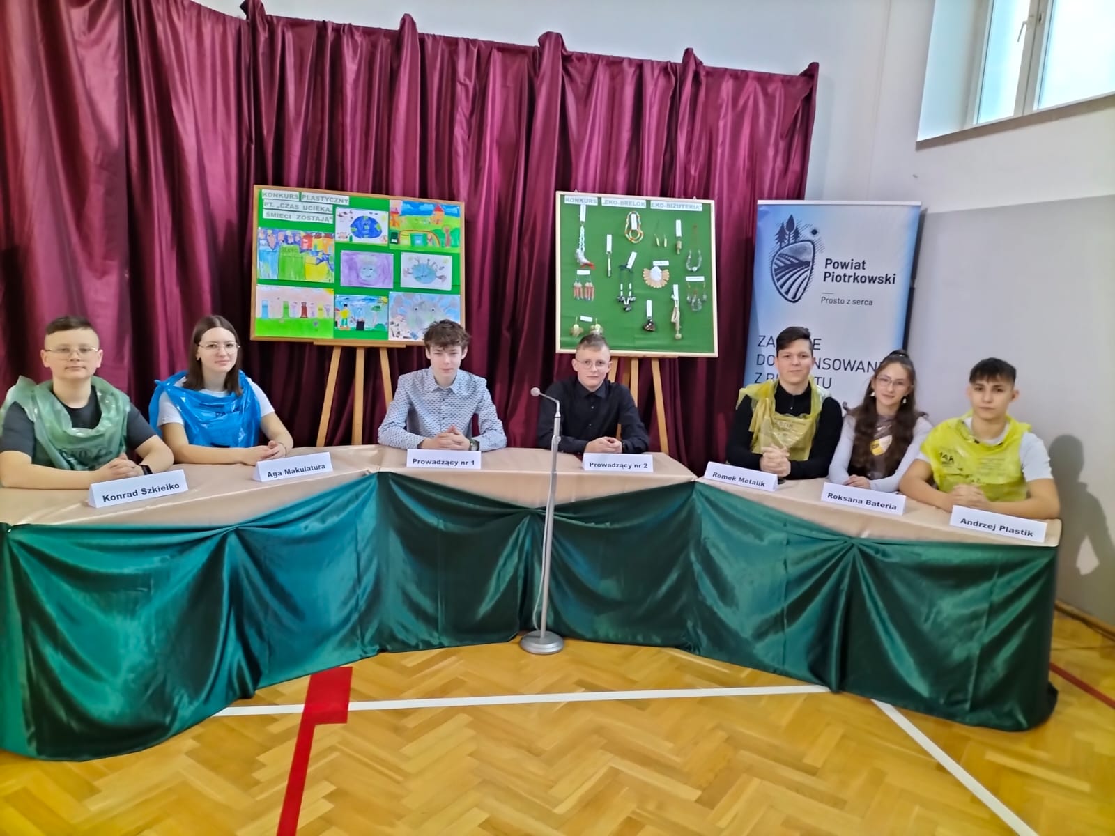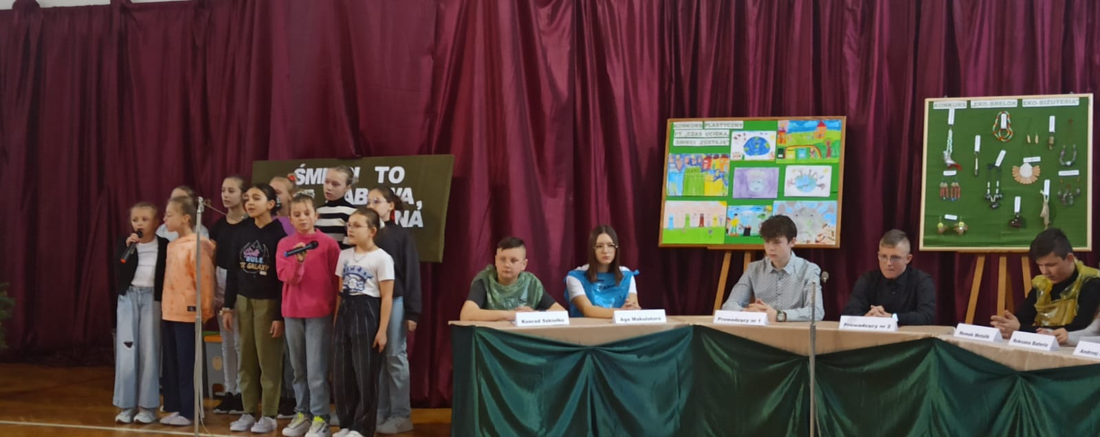 konkursie plastycznym dla uczniów klas 0-III pt. Czas ucieka, śmieci zostają oraz w konkursie dla klas IV- VIII pt. Eko-brelok lub eko –biżuteria.