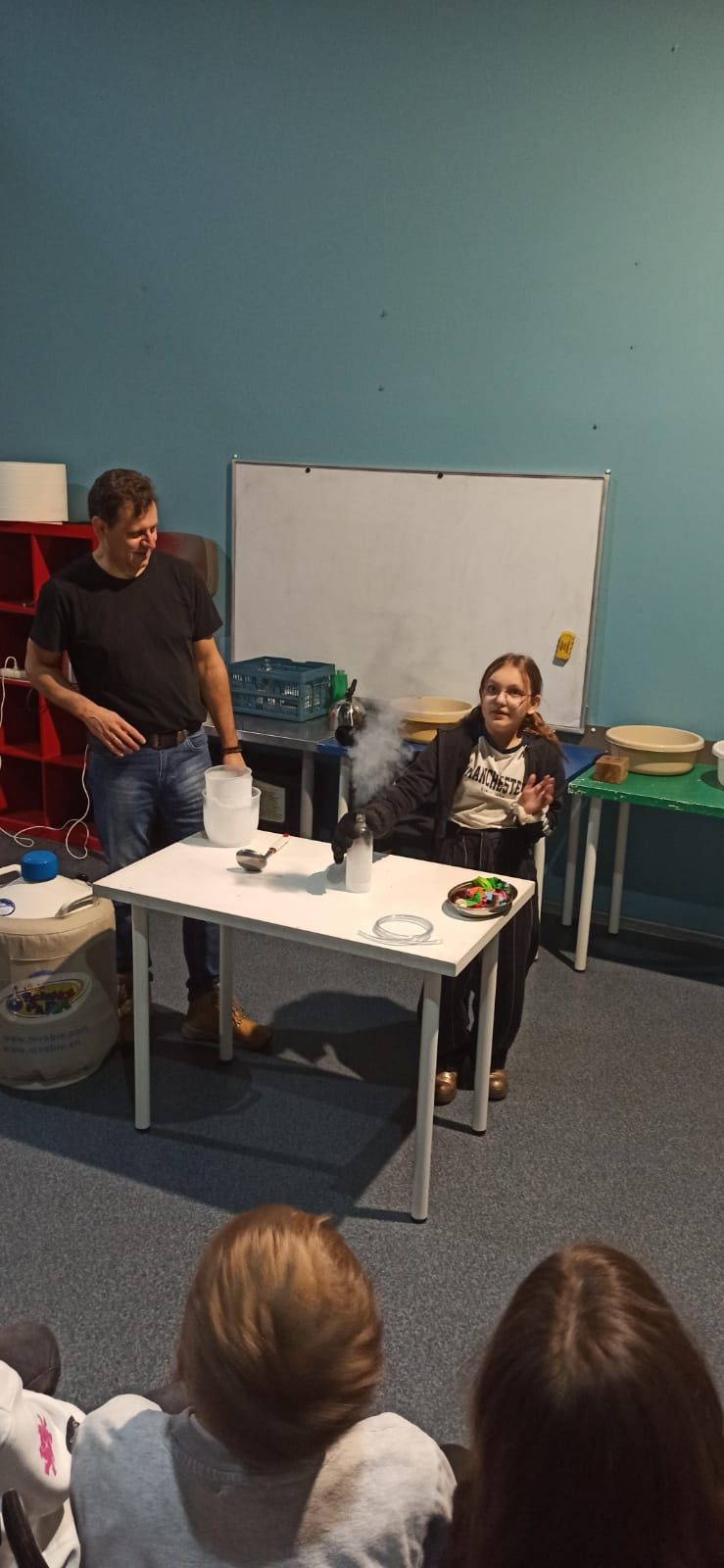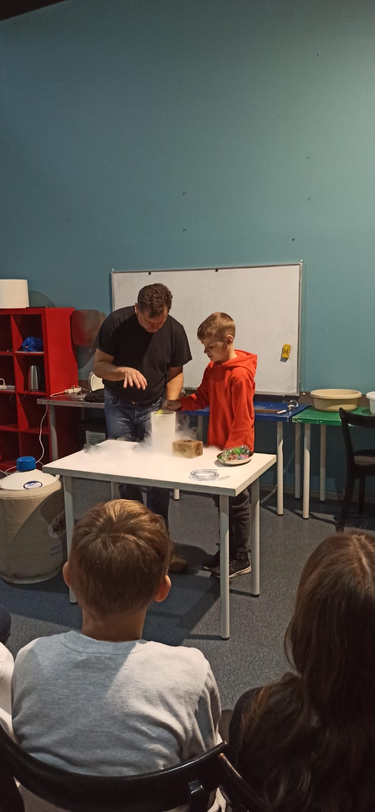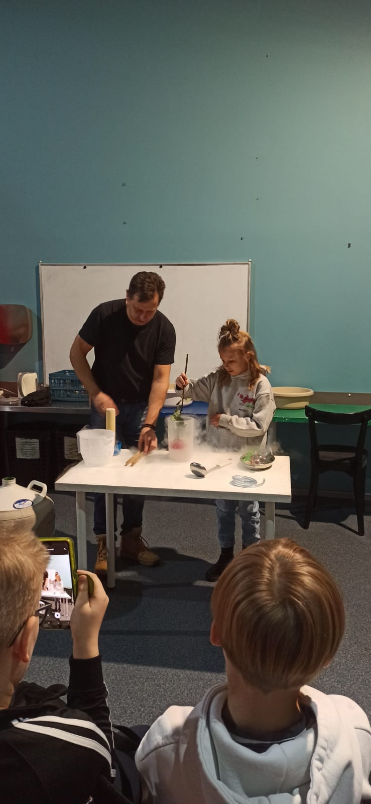 18.12. 2023 - niedawno były mikołajki, wkrótce przerwa świąteczna...więc uczniowie klasy IV i V udali się dziś wraz z wychowawcami do łódzkiej Manufaktury. Odwiedzili kręgielnię GRAKULA, w której mieli do dyspozycji kilka torów, dzięki czemu mogli zmierzyć się między sobą i poczuć nutkę zdrowej rywalizacji. Po zajęciach sportowych poszli do Experymentarium na zajęcia edukacyjne z ciekłym azotem.  Eksperymenty te wywołały wiele emocji. Po tym pokazie uczniowie  jednogłośnie stwierdzili, że jeszcze tu kiedyś wrócą.
