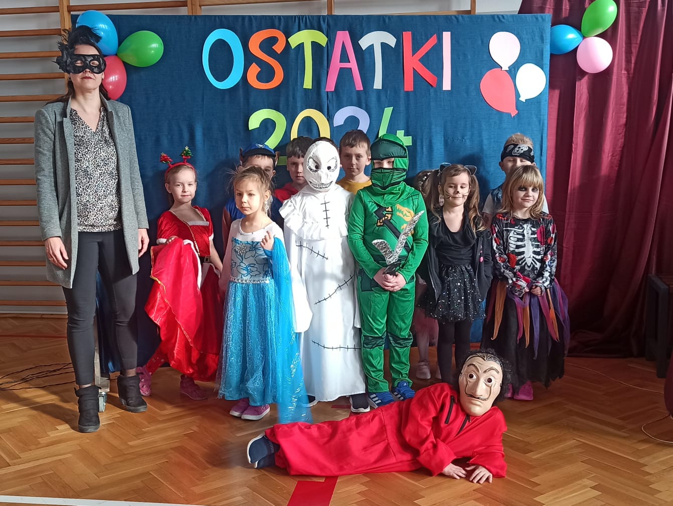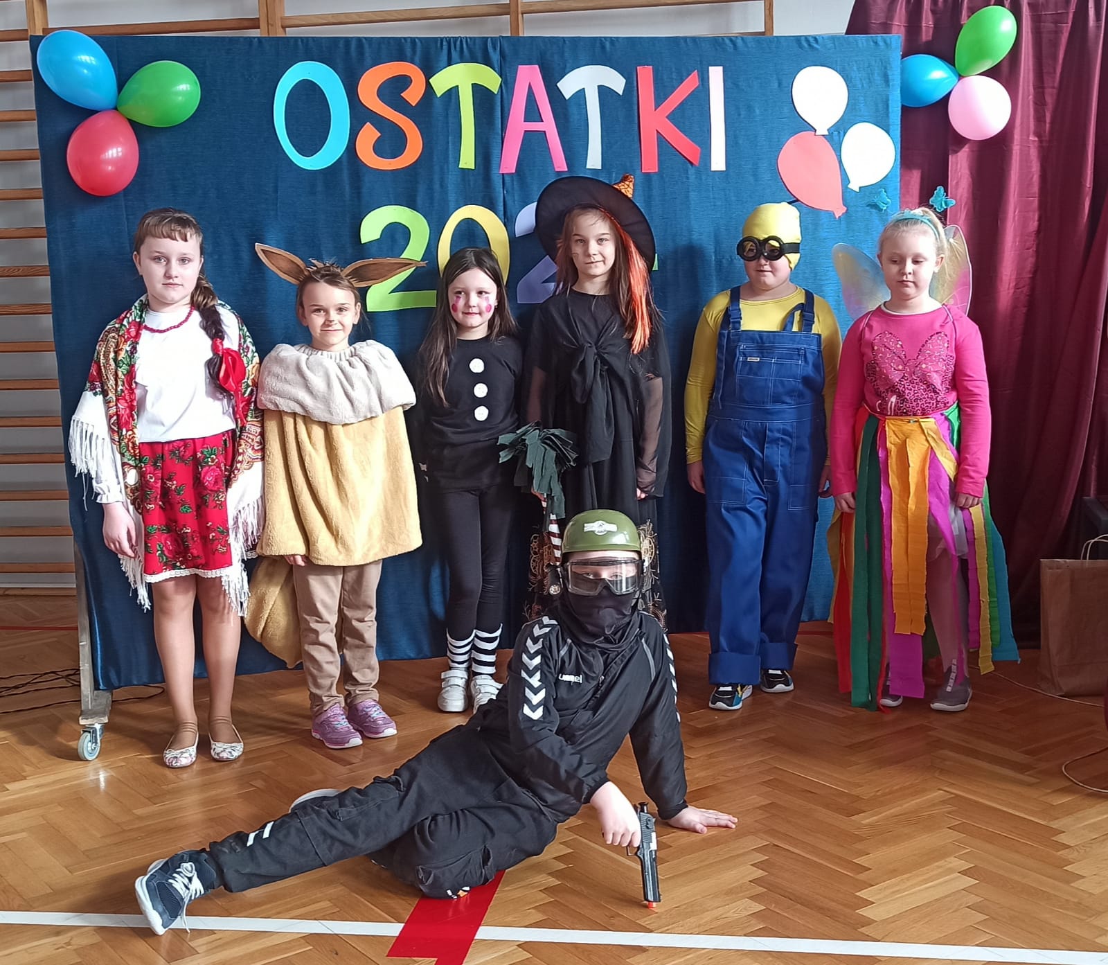 Zgodnie z tradycją naszej szkoły, koniec karnawału świętujemy hucznie i kolorowo. W tym roku ostatki wypadły we wtorek 13 lutego. Z tej okazji od rana szkolne korytarze przemierzali  żołnierze, pielęgniarki, policjanci, piraci, księżniczki, piękne psiaki i kociaki,  piłkarze, kibice, superbohaterowie oraz wiele innych barwnych i ciekawych postaci.