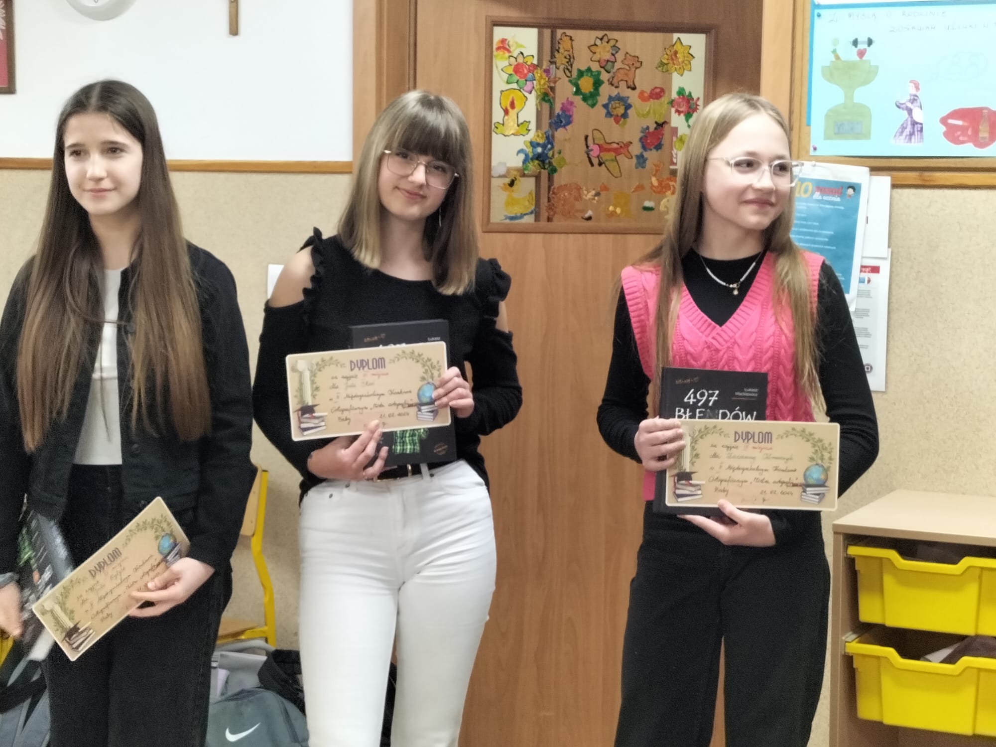 W  dniu 21 lutego 2024 roku, w  Szkole Podstawowej im. Janusza Korczaka w Babach, odbył się Gminny Konkurs Ortograficzny dla uczniów klas 7 i 8.  Wydarzenie to było  także okazją  do ogłoszenia wyników Gminnego  Konkursu Profilaktycznego.   W zmaganiach z ortografią naszą szkołę reprezentowały: Aleksandra Maciejek, Amelia Małgorzaciak i Julia Stoś, przygotowane przez panią Martę Goszczyńską. Dla 18 uczestników konkursu przygotowano bardzo trudne dyktando. Brawa należą się wszystkim, którzy podjęli się jego napisania. Miło nam poinformować, że Julia Stoś wykazała się bardzo dobrą znajomością zasad pisowni i zajęła III miejsce.