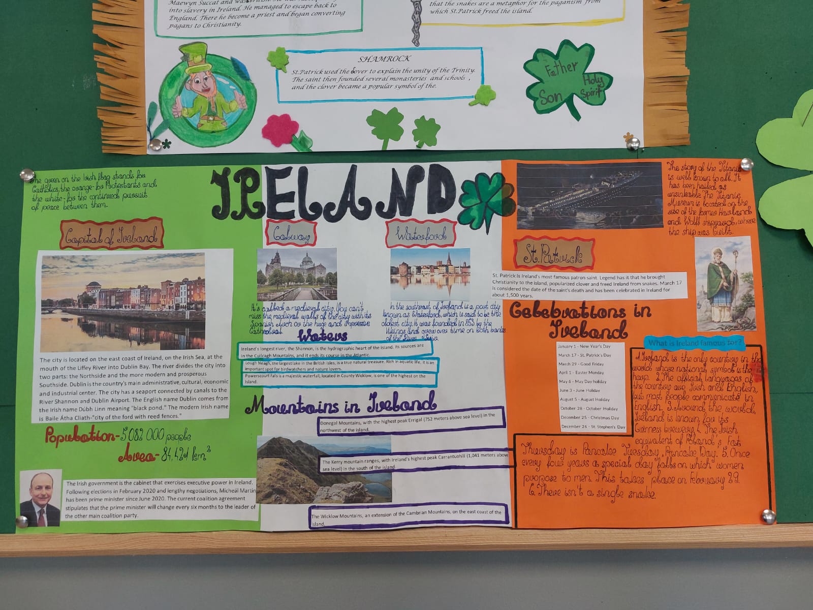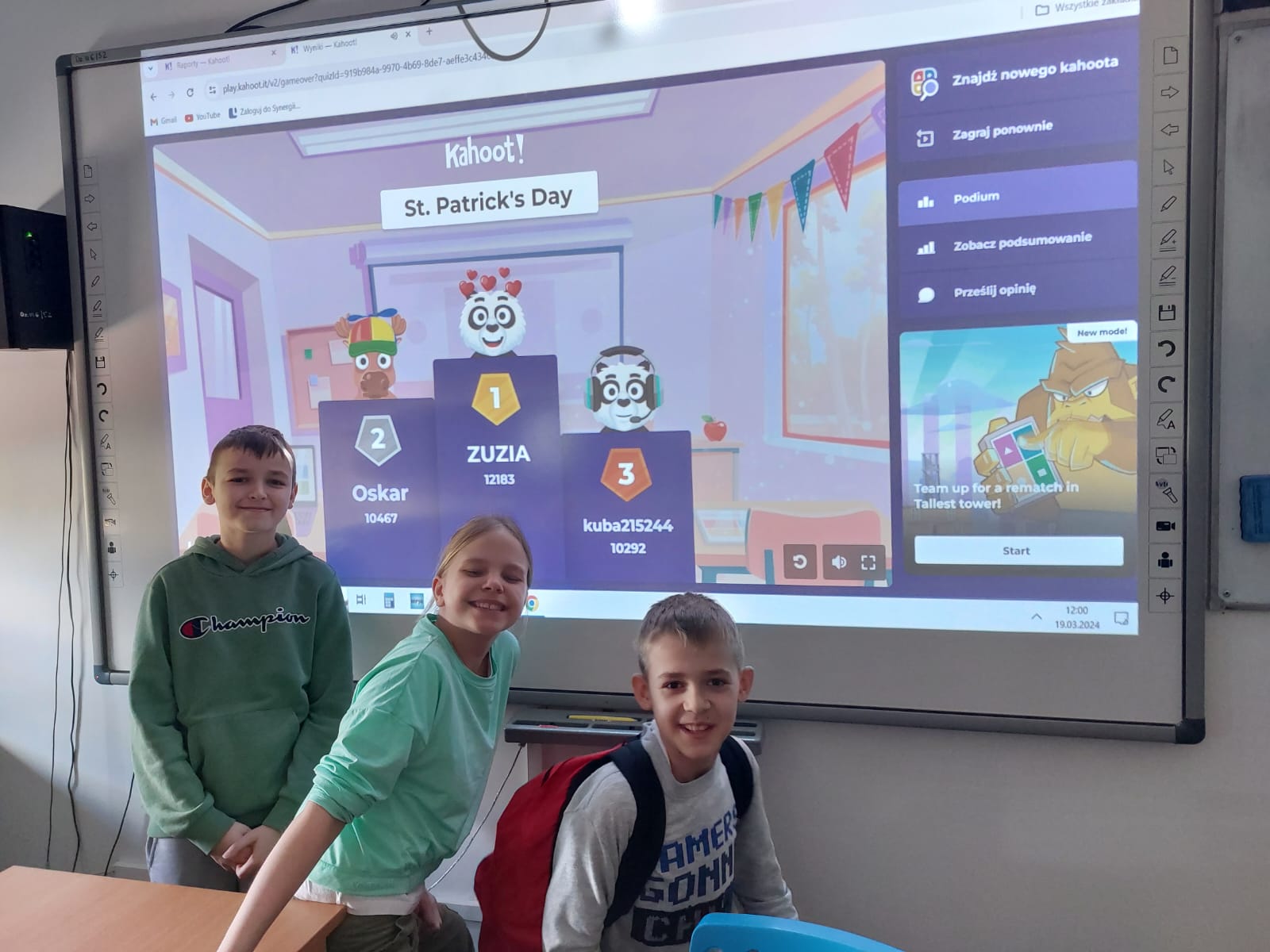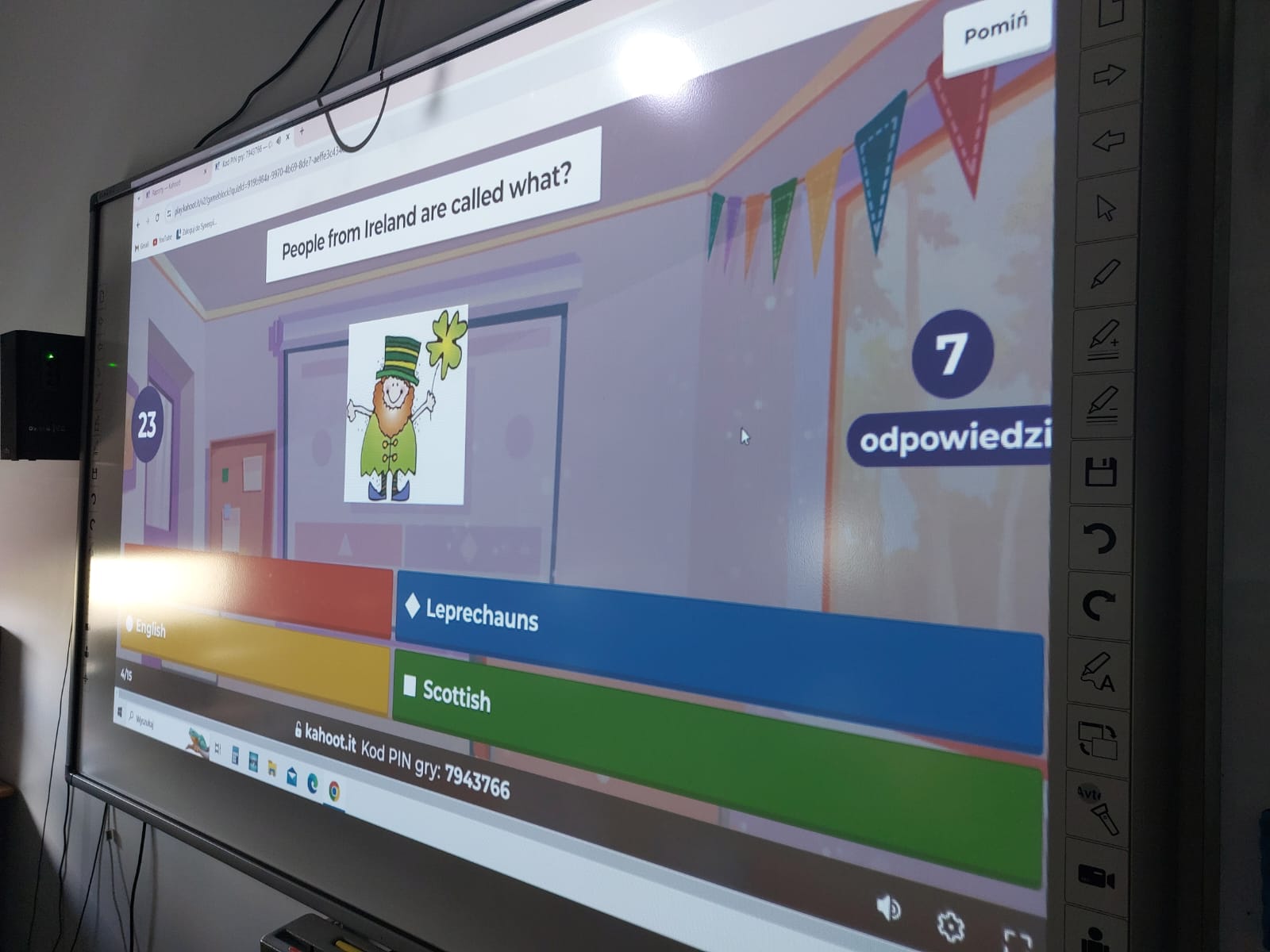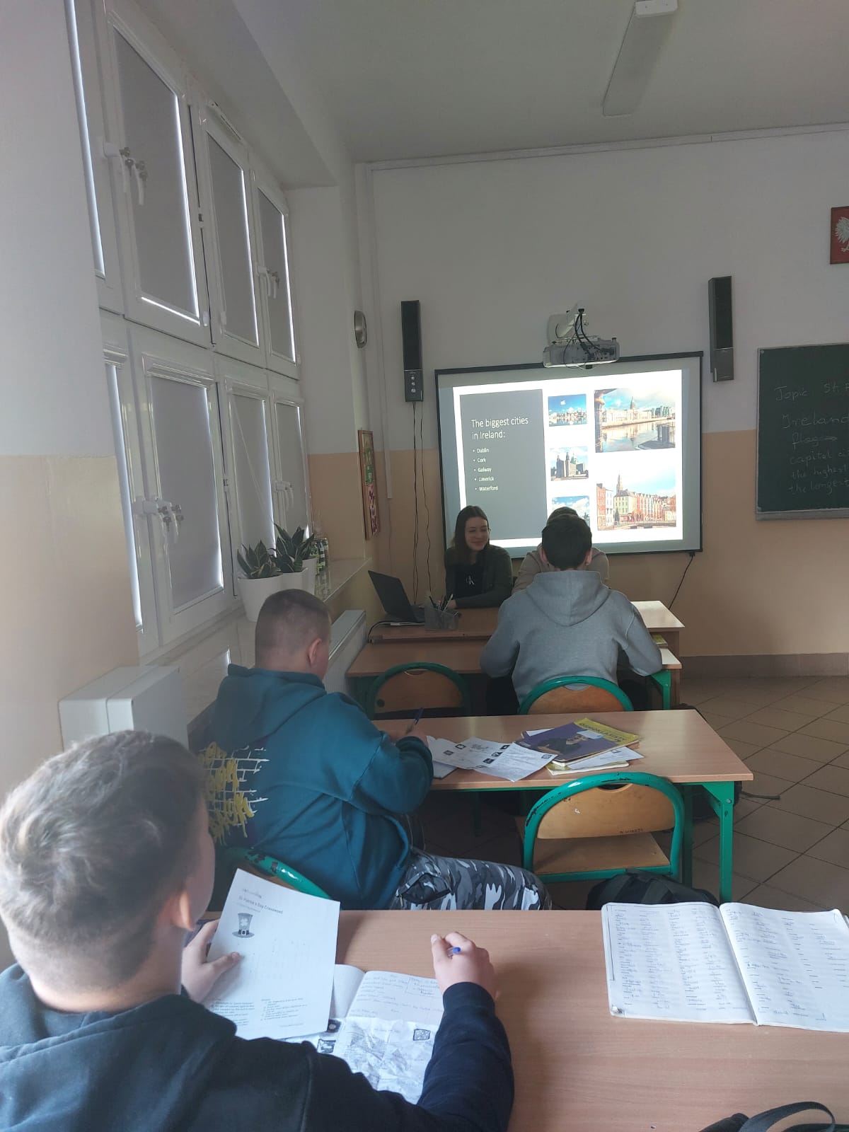 Dzisiaj w naszej szkole dominował kolor zielony. Jest to motyw irlandzkiego święta obchodzonego corocznie w dniu 17 marca – Dnia Świętego Patryka. Uczniowie klas 4-8 wykonali piękne plakaty o tradycjach związanych z tym świętem oraz o cudownej szmaragdowej wyspie jak potocznie nazywana jest Irlandia. Ponadto osoby z klasy 8 – Maja Trojan, Oliwier Żerek, Dominik Florczyk oraz Mateusz Krawczyk - przedstawiły swoim rówieśnikom oraz młodszym kolegom przygotowane przez siebie prezentacje. Nie zabrakło również Leprikona – Adama Oleksiewicza, który starał się bacznie pilnować swojego garnka ze złotem. Każda klasa miała okazję sprawdzić swoją wiedzę o św. Patryku oraz o Irlandii, rozwiązując różne zagadki oraz quizy Kahoot.