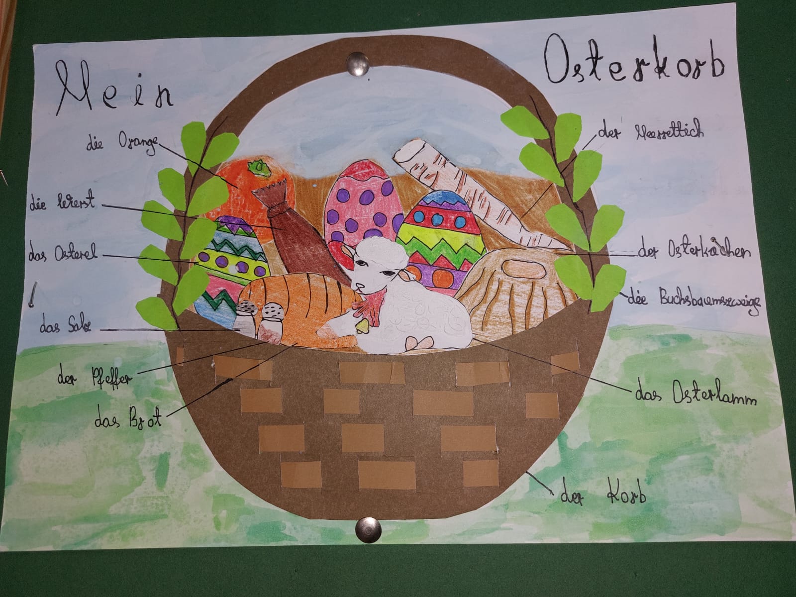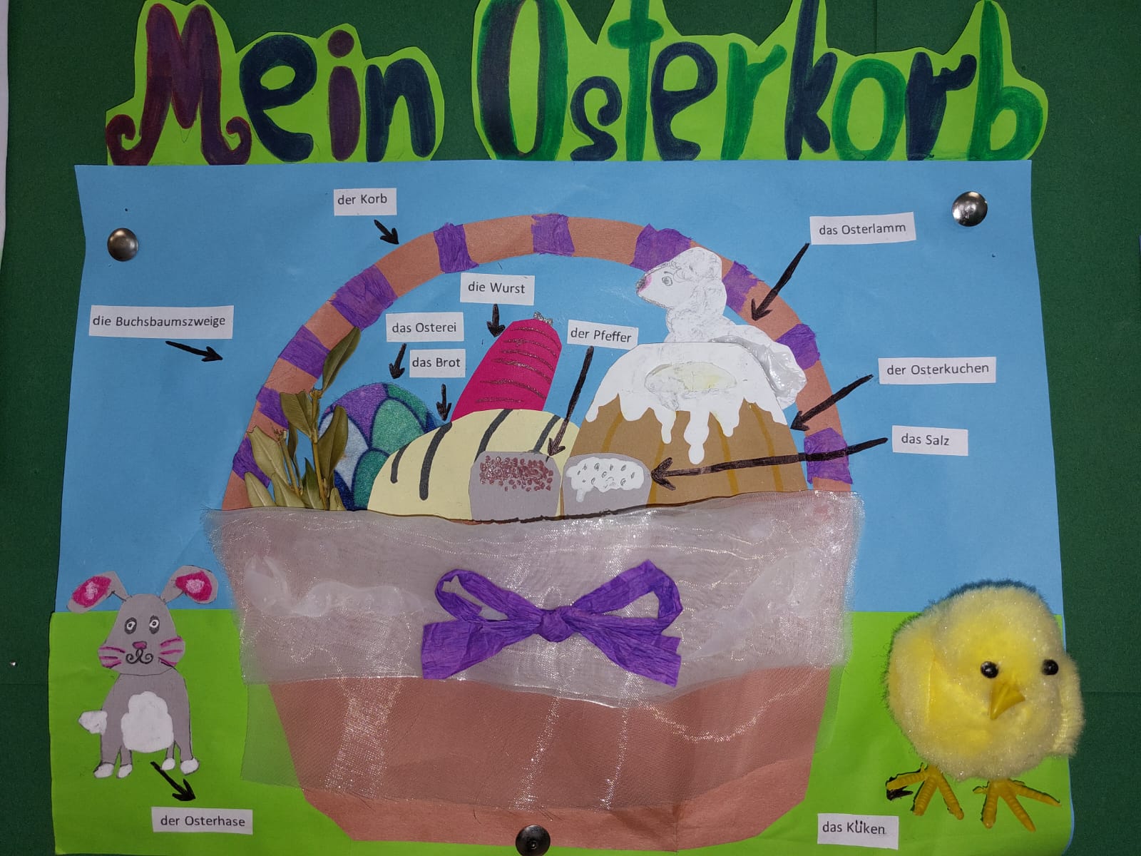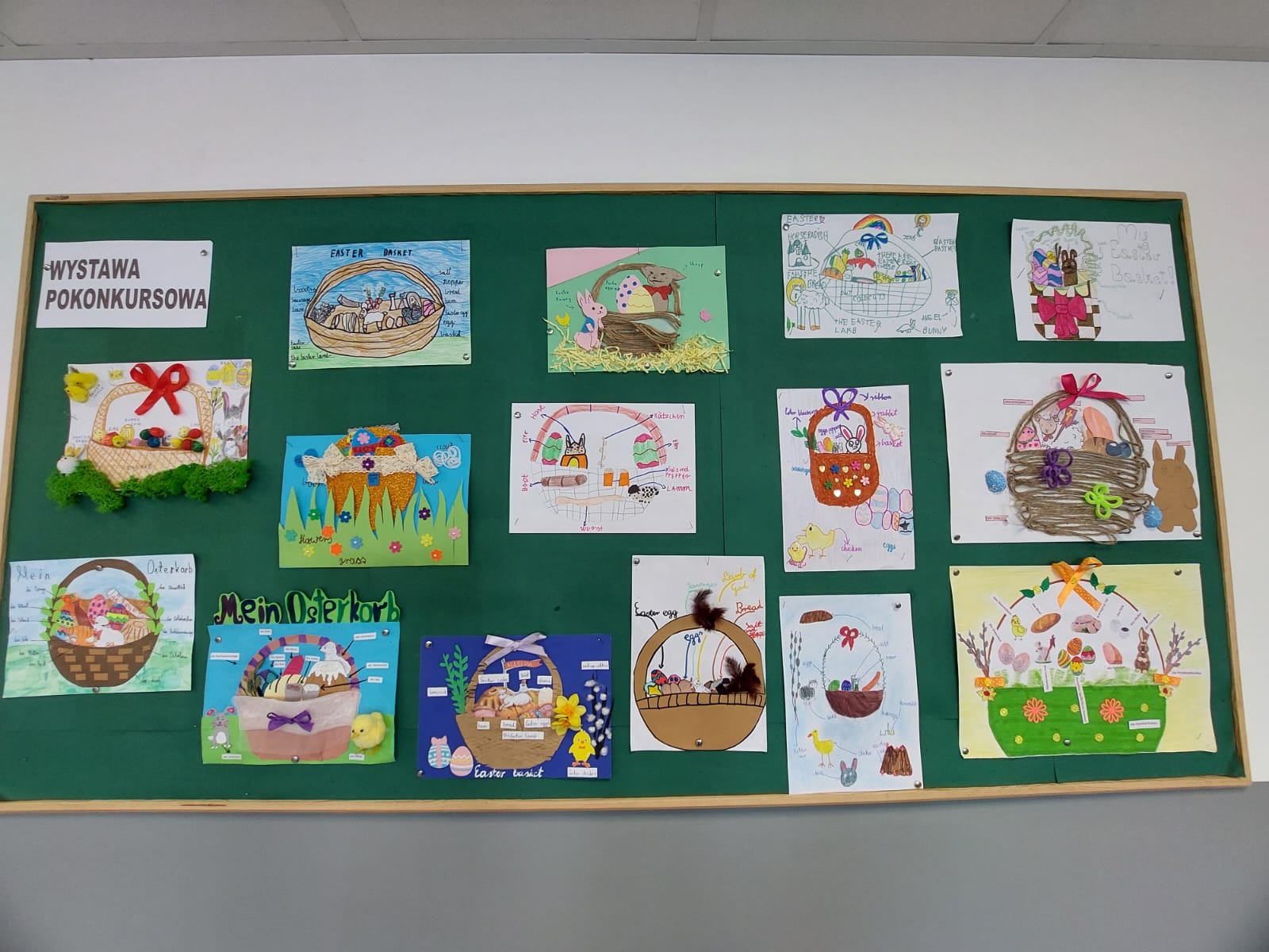 Szkolny konkurs plastyczno – językowy „MÓJ KOSZYCZEK WIELKANOCNY” -  “My Easter Basket”/ “Mein Osterkorb” został rozstrzygnięty! Konkurs skierowany był do wszystkich uczniów naszej szkoły. Główne cele konkursu to: rozbudzanie zainteresowań uczniów w zakresie nauki języka angielskiego i niemieckiego, rozwijanie zdolności plastycznych, pogłębianie wiedzy na temat tradycji wielkanocnych oraz pobudzanie uczniów do kreatywności i twórczości. Zadaniem uczestników było wykonanie pracy przedstawiającej koszyczek wielkanocny, którego elementy musiały być podpisane w języku angielskim lub niemieckim.