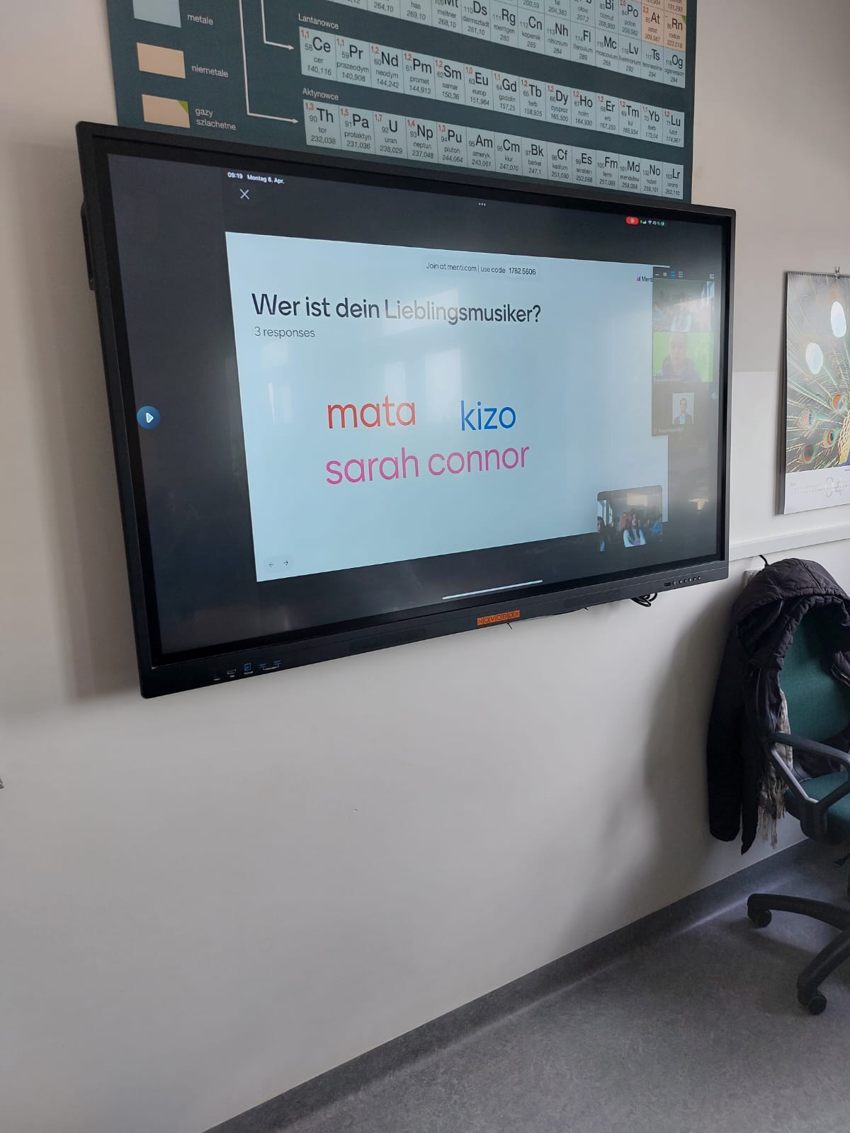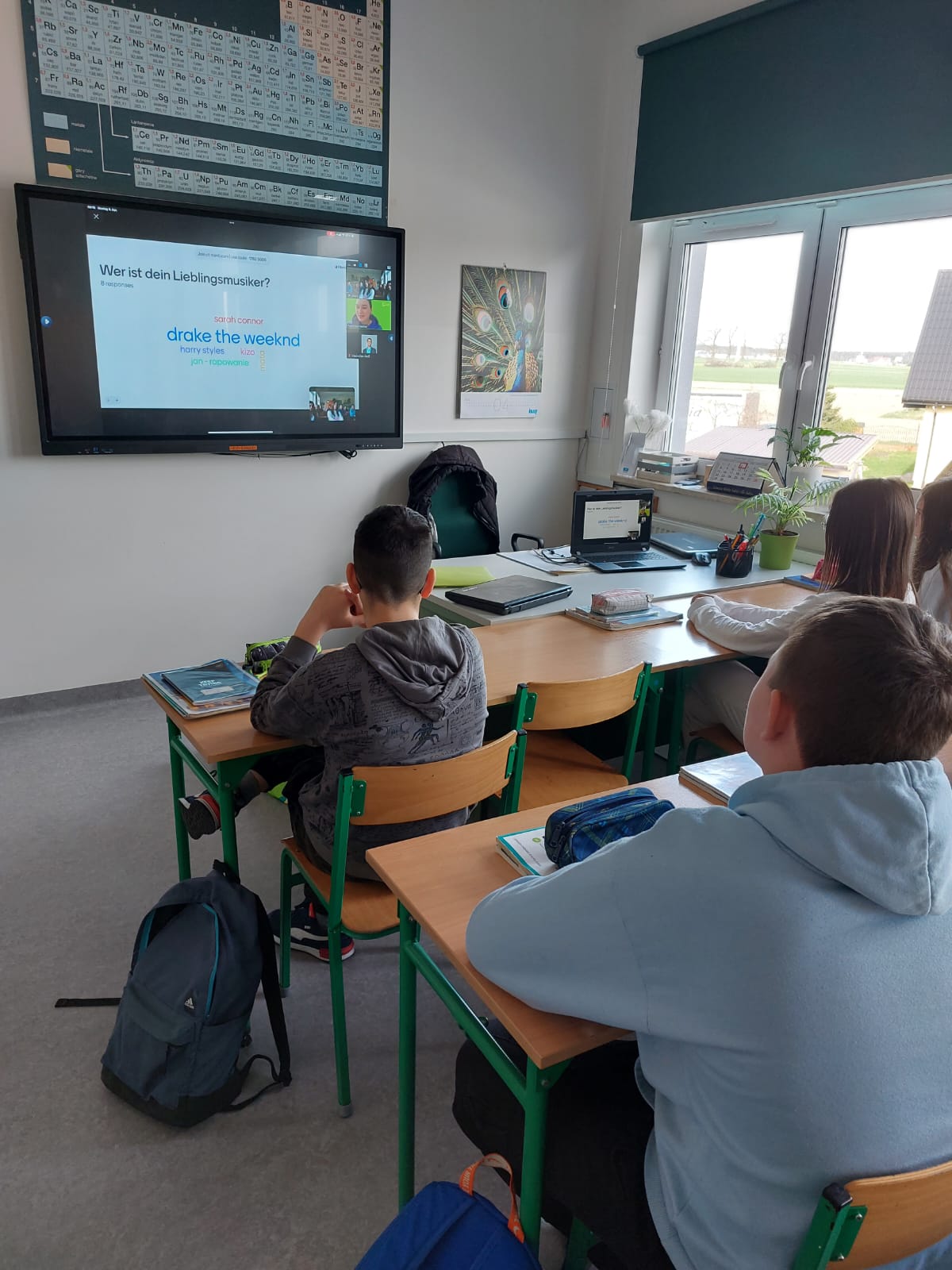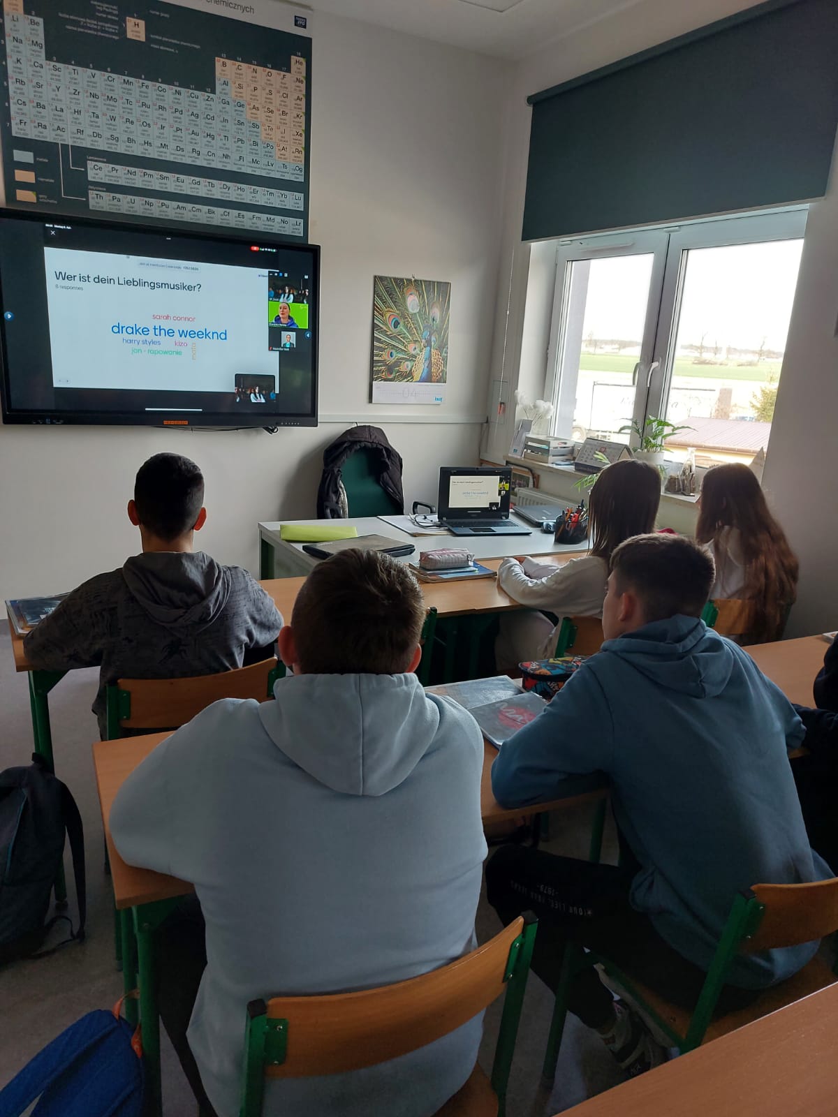 W ramach projektu „Deutsch Plus” uczniowie klasy 7 uczestniczyli  w dniu 08.04.2024 r. w spotkaniu online z Franziską Weibler. Franzi to młoda osoba pochodząca z Niemiec, która podczas zajęć prezentuje młodzieży niemiecką kulturę w formie warsztatów.  Aktywistka opowiedziała o swoim życiu, a następnie przedstawiła uczniom sylwetki różnych współczesnych wykonawców muzycznych oraz zespoły pochodzące z Niemiec. Na zakończenie spotkania uczniowie mieli również okazję zadać Franzi kilka pytań na temat jej zainteresowań. Dziękujemy Instytutowi Goethego z Warszawy za możliwość udziału w tej nietypowej lekcji.
