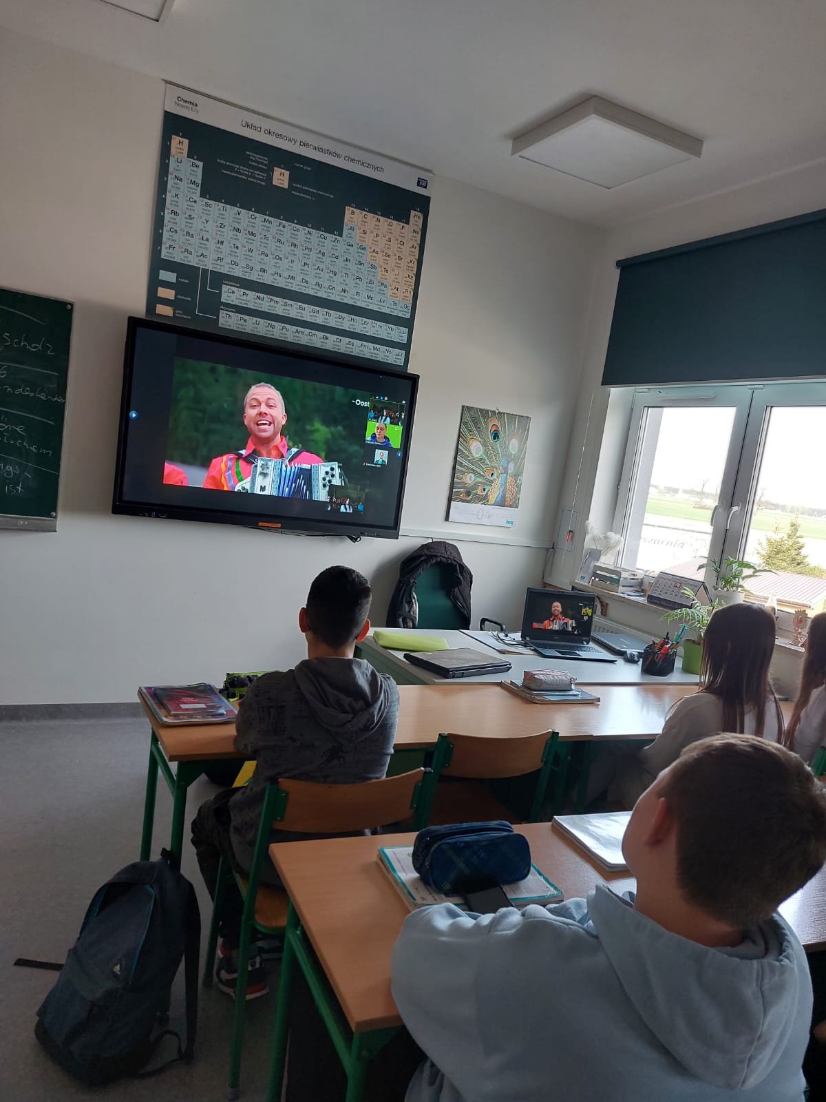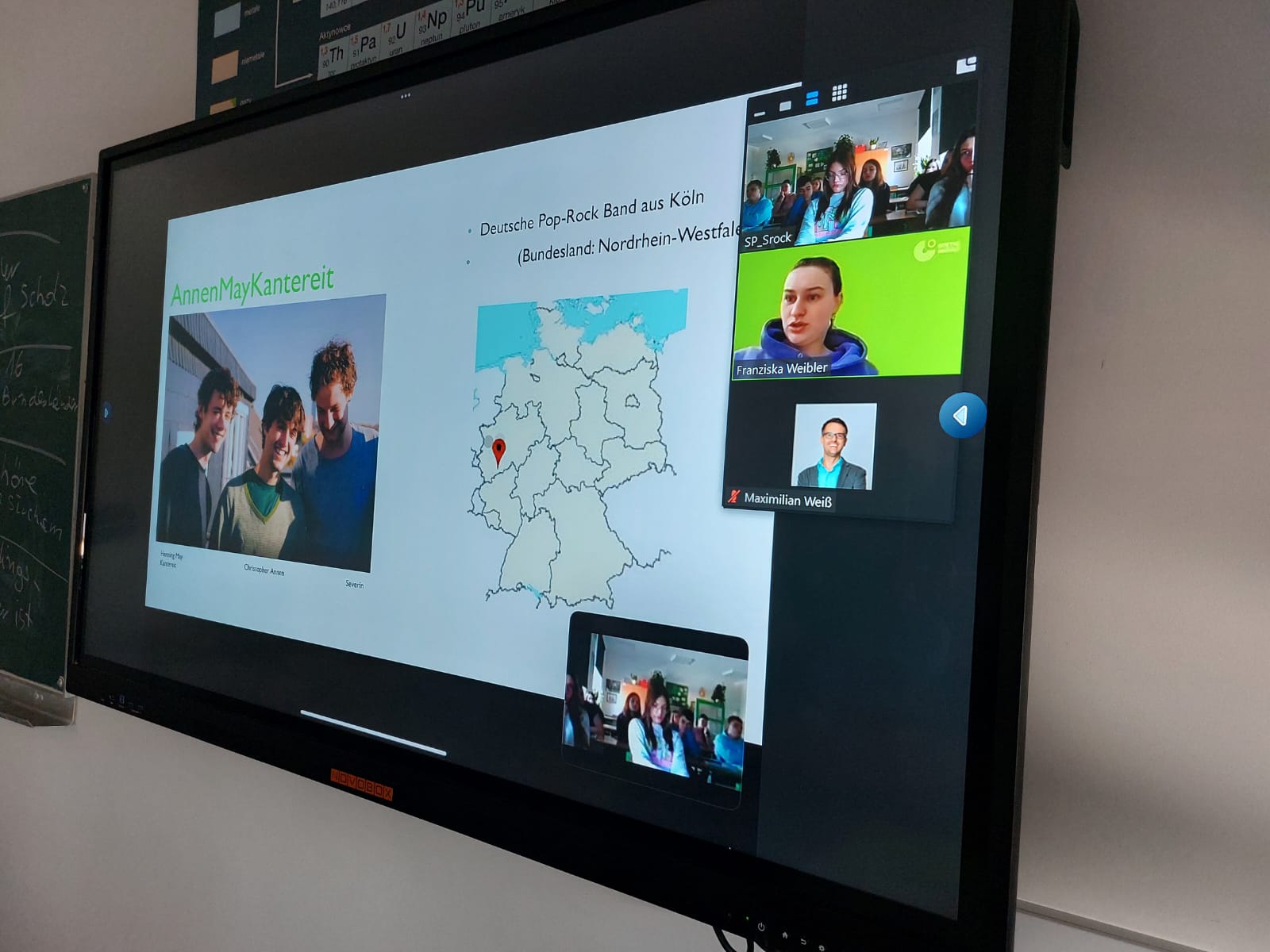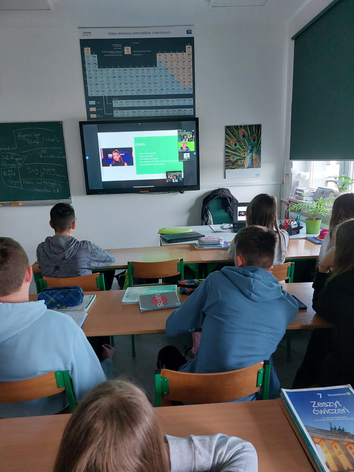W ramach projektu „Deutsch Plus” uczniowie klasy 7 uczestniczyli  w dniu 08.04.2024 r. w spotkaniu online z Franziską Weibler. Franzi to młoda osoba pochodząca z Niemiec, która podczas zajęć prezentuje młodzieży niemiecką kulturę w formie warsztatów.  Aktywistka opowiedziała o swoim życiu, a następnie przedstawiła uczniom sylwetki różnych współczesnych wykonawców muzycznych oraz zespoły pochodzące z Niemiec. Na zakończenie spotkania uczniowie mieli również okazję zadać Franzi kilka pytań na temat jej zainteresowań. Dziękujemy Instytutowi Goethego z Warszawy za możliwość udziału w tej nietypowej lekcji.