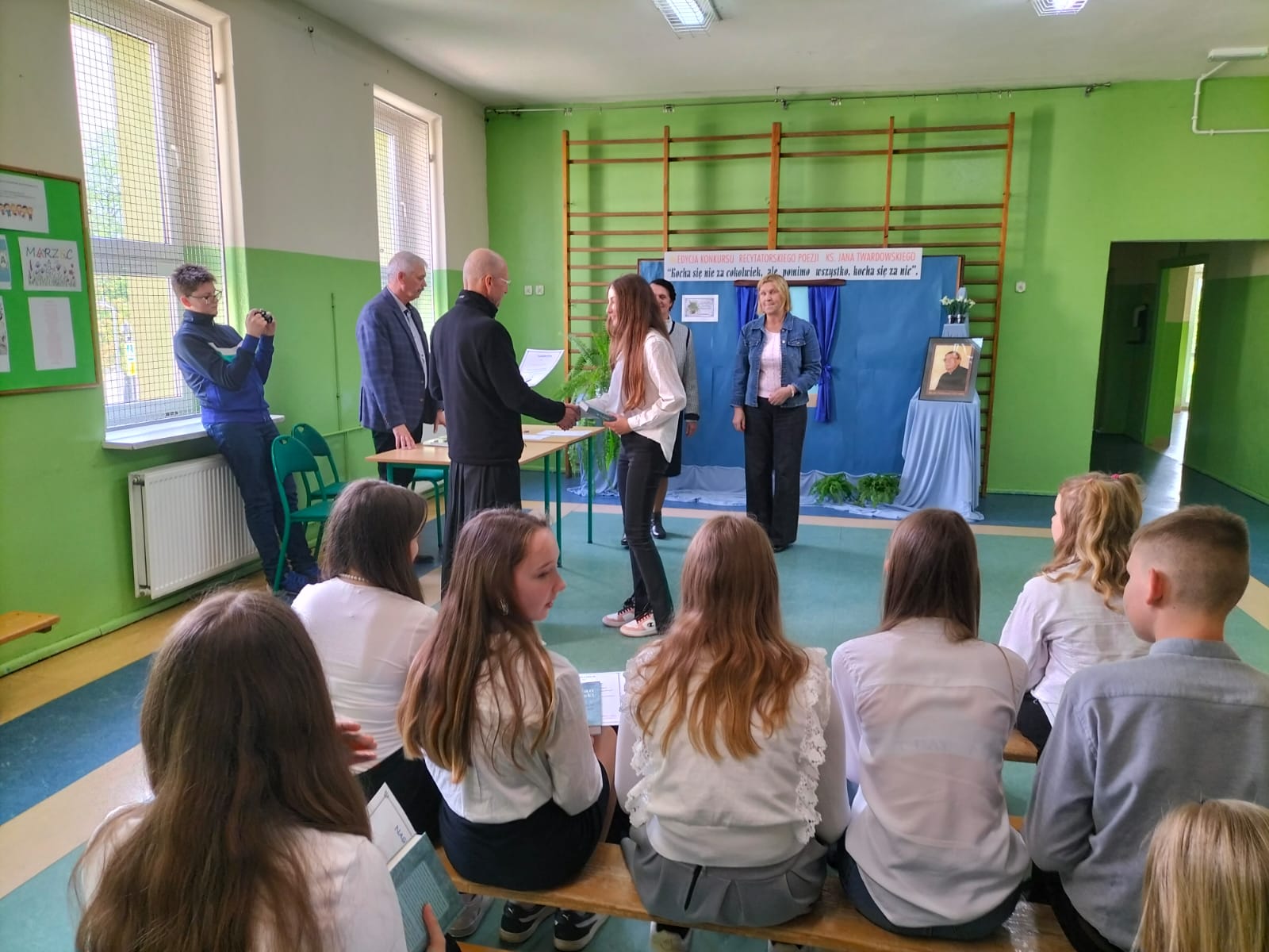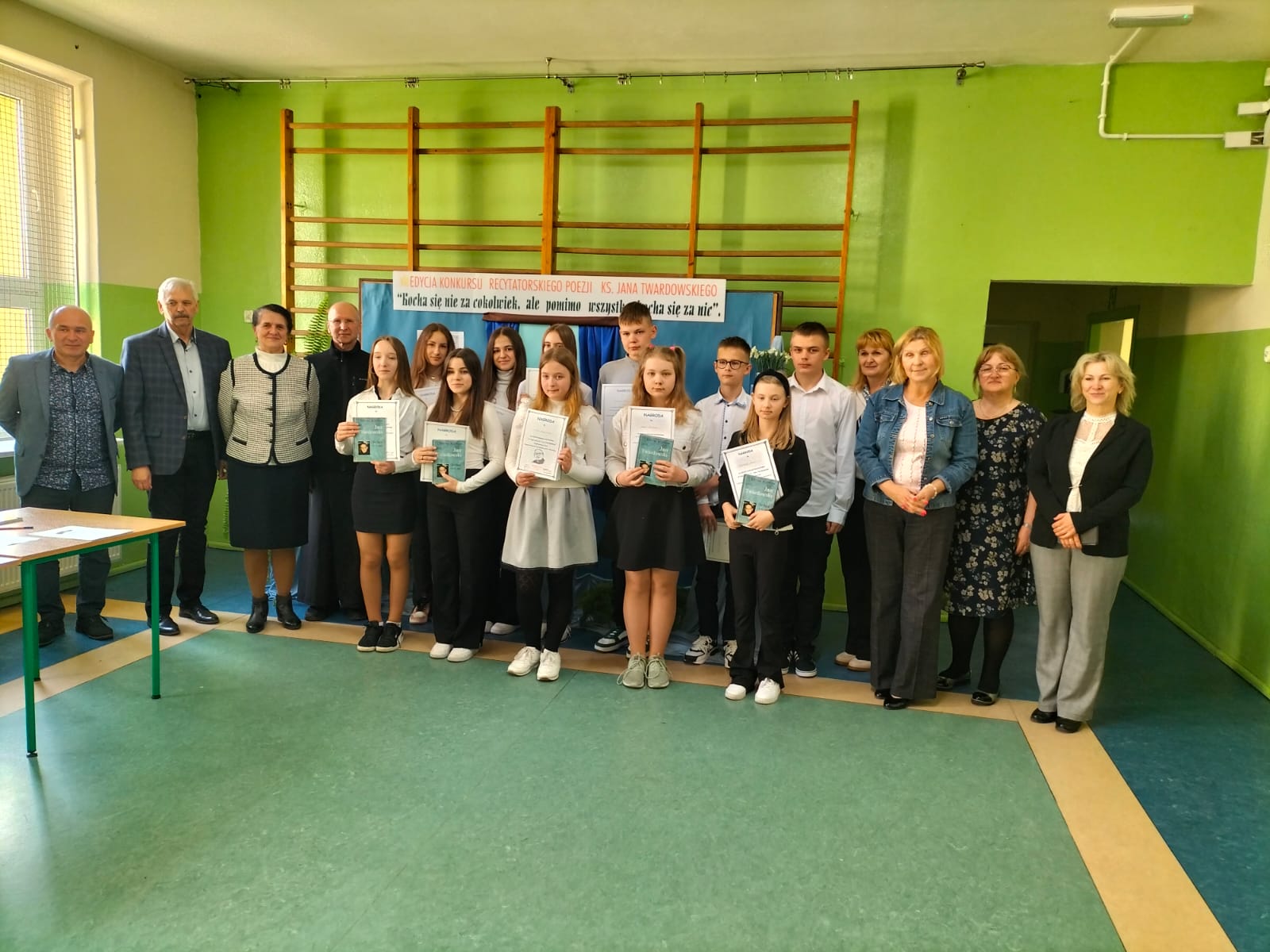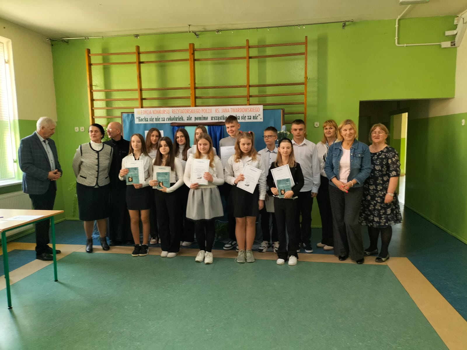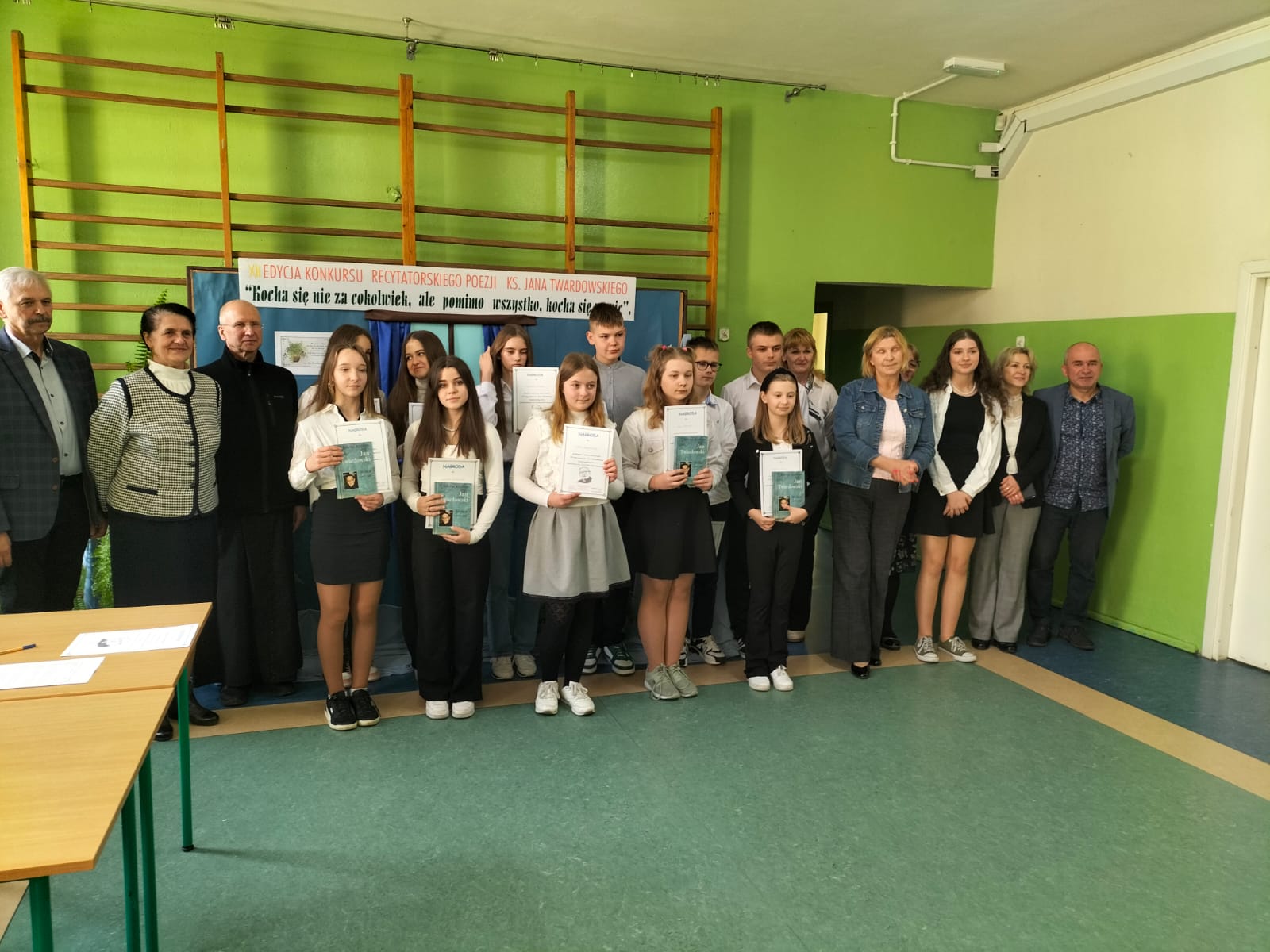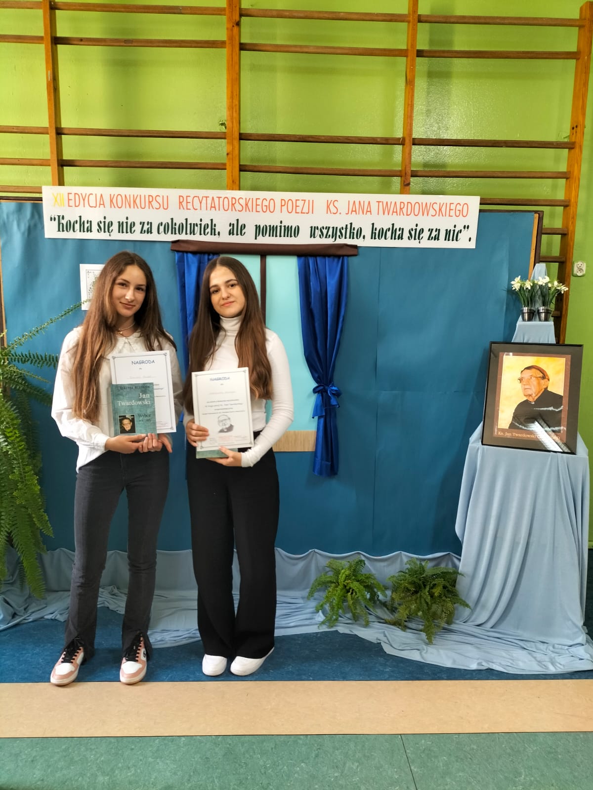 19 kwietnia nasze uczennice Ola Maciejek i Kornelia Badek (przygotowane przez p. Martę Goszczyńską) wzięły udział w XII już edycji Gminnego Konkursu Recytatorskiego Poezji ks. Jana Twardowskiego organizowanego przez Szkołę Podstawową im. św. Stanisława Kostki w Moszczenicy. Ola i Kornelia zaprezentowały się bardzo dobrze, ale jury miało problem z wyłonieniem zwycięzcy, więc nagrody otrzymali wszyscy uczestnicy konkursu. Dziękujemy za godne reprezentowanie naszej szkoły i gratulujemy udanych wystąpień.