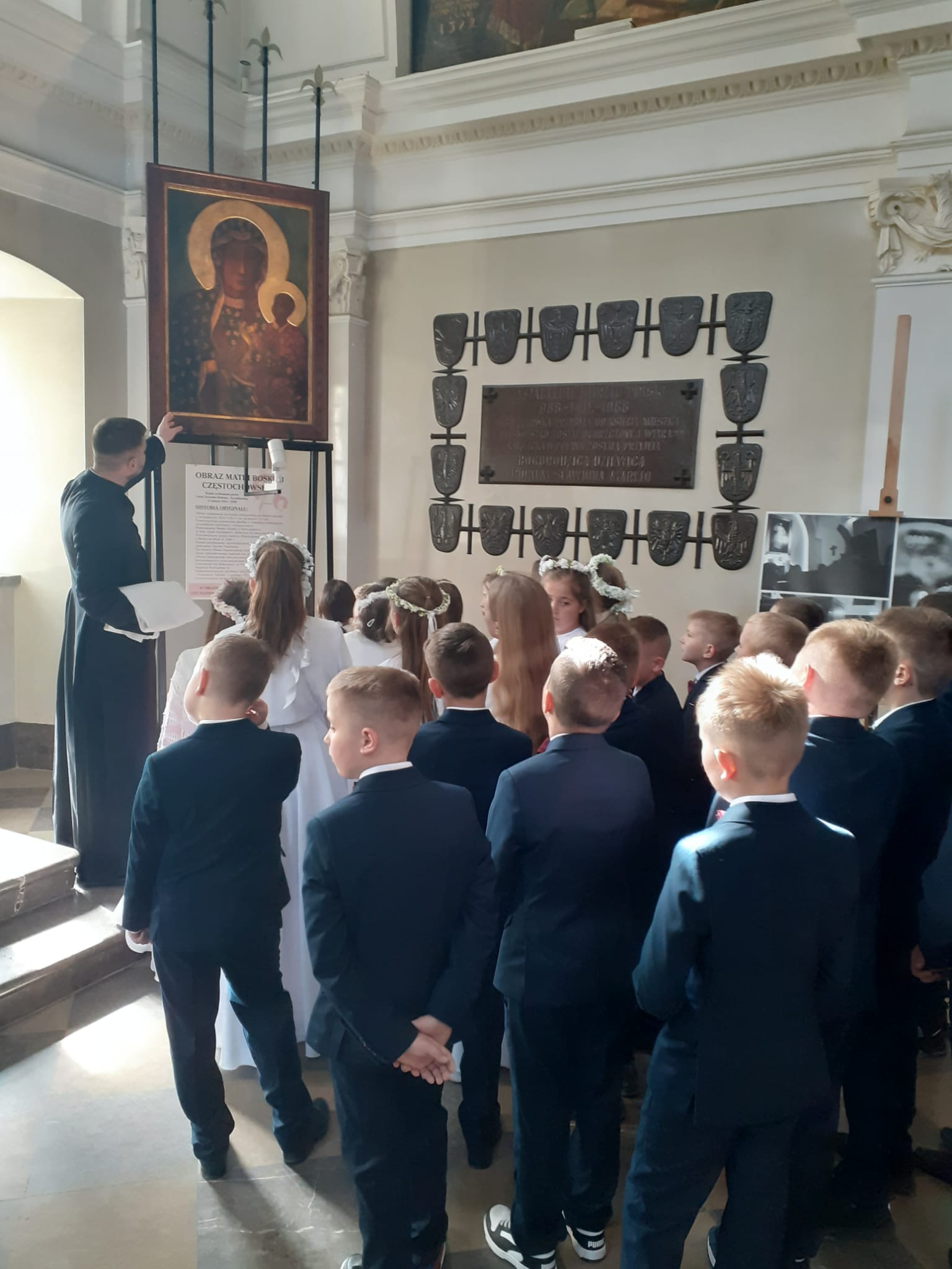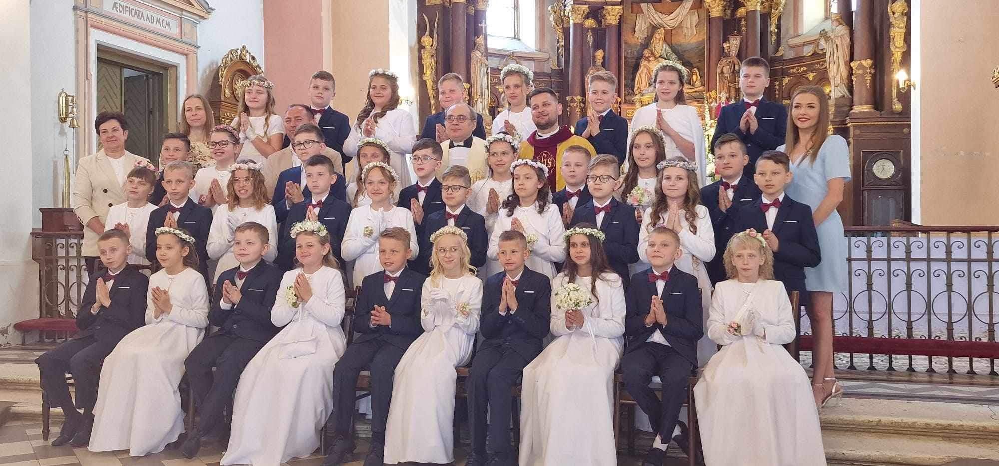 Dzień 5 maja zapisze się na zawsze w pamięci uczniów klasy III naszej szkoły. W tym dniu po raz pierwszy dzieci przyjęły Pana Jezusa do swojego serca, podczas uroczystej mszy świętej w Kościele parafialnym w Srocku. W podziękowaniu za Sakrament Eucharystii we wtorek 7 maja wyruszyliśmy na pielgrzymkę do Częstochowy. Tam przed cudownym obrazem Matki Bożej Królowej Polski wraz z rodzicami, ks. Marcinem i paniami katechetami z naszej parafii podziękowaliśmy za ten wielki dar. Następnie zwiedziliśmy salę rycerską, Bastion św. Rocha poznając nieco historię Polski związaną z Jasną Górą i klasztorem. W drodze powrotnej odwiedziliśmy Sanktuarium św. Ojca Pio na Przeprośnej Górce, gdzie przeszliśmy drogę krzyżową Pana Jezusa oraz poznaliśmy bliżej życie i działalność Ojca Pio.