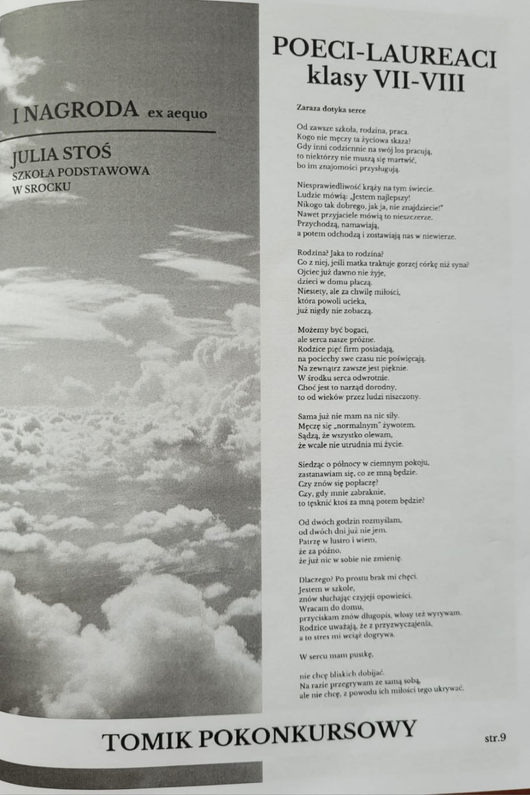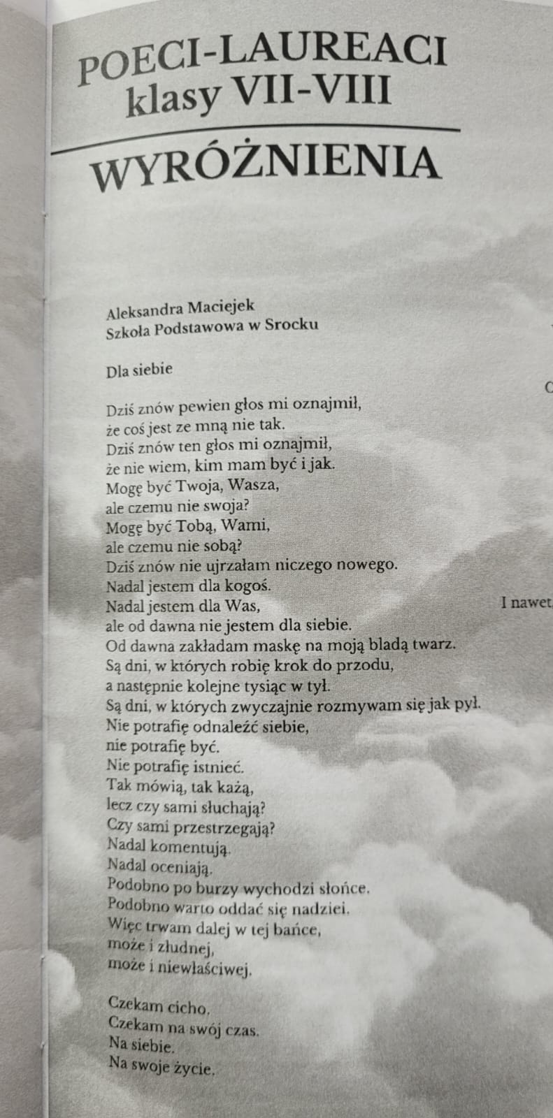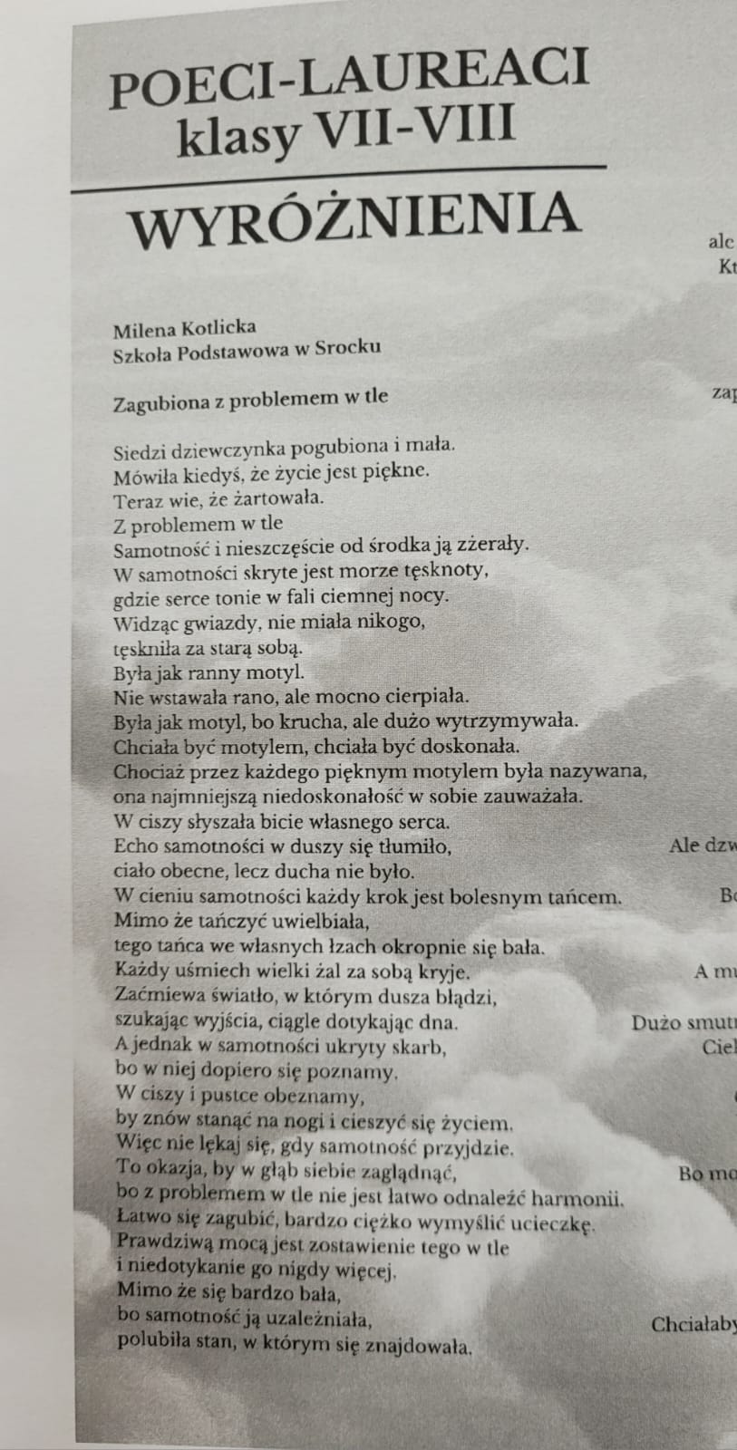 Mamy ogromną przyjemność poinformować, że nasze cztery uczennice, zmotywowane przez panią Martę Goszczyńską,  napisały wiersze na konkurs i - jak się okazało- zostały nagrodzone!