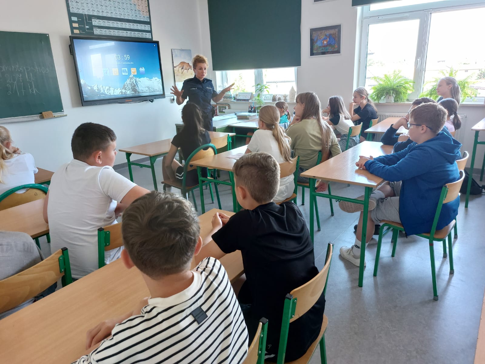 Cyberprzemoc, hejt i agresja rówieśnicza to główne tematy zajęć, które przeprowadziła w naszej szkole pani Katarzyna Dębińska z zespołu ds. profilaktyki Komendy Miejskiej Policji  w Piotrkowie Trybunalskim. Spotkanie odbyło się w dniu 11 czerwca 2024 r. i uczestniczyli w nim uczniowie podzieleni na dwie grupy wiekowe: klasy IV – V oraz VI – VIII. Pani aspirant omówiła rodzaje przemocy podając konkretne sytuacje ze swojej pracy zawodowej. Ponadto dokładnie przedstawiła konsekwencje prawne wobec osób nieletnich. Na zakończenie policjantka przypomniała o podstawowych zasadach bezpiecznego zachowania podczas wakacji.