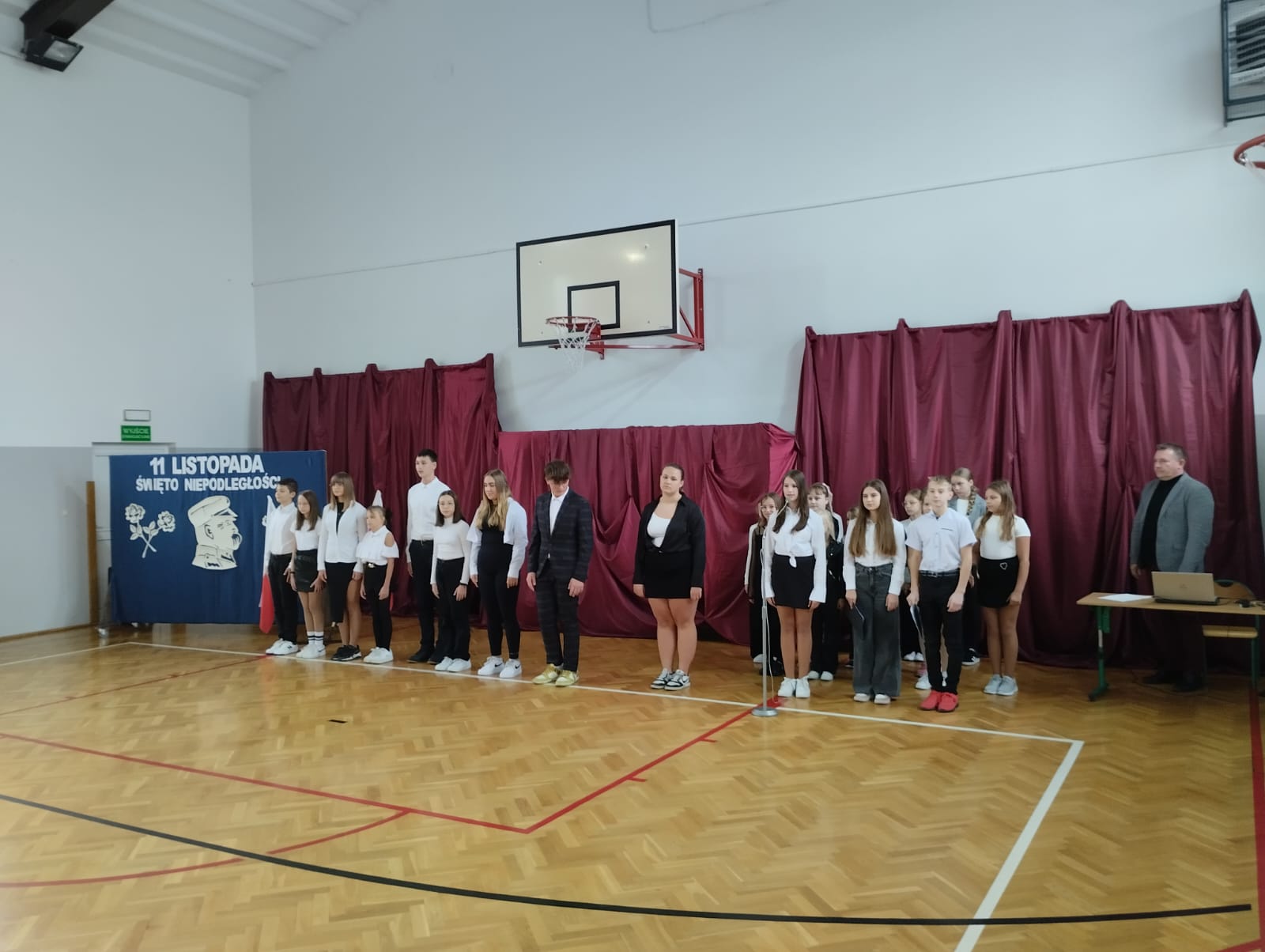 W dniu 7 listopada w naszej szkole odbyła się uroczysta akademia  z okazji Narodowego Święta Niepodległości. Uczniowie klas VI, VII i VIII przedstawili najważniejsze fakty z naszej walki o niepodległość przeplatane recytacją wierszy o tematyce patriotycznej oraz pięknymi utworami muzycznymi zaprezentowanymi przez nasz chór. Akademię przygotowali Bogusław Bereżny i Adam Gajda.
