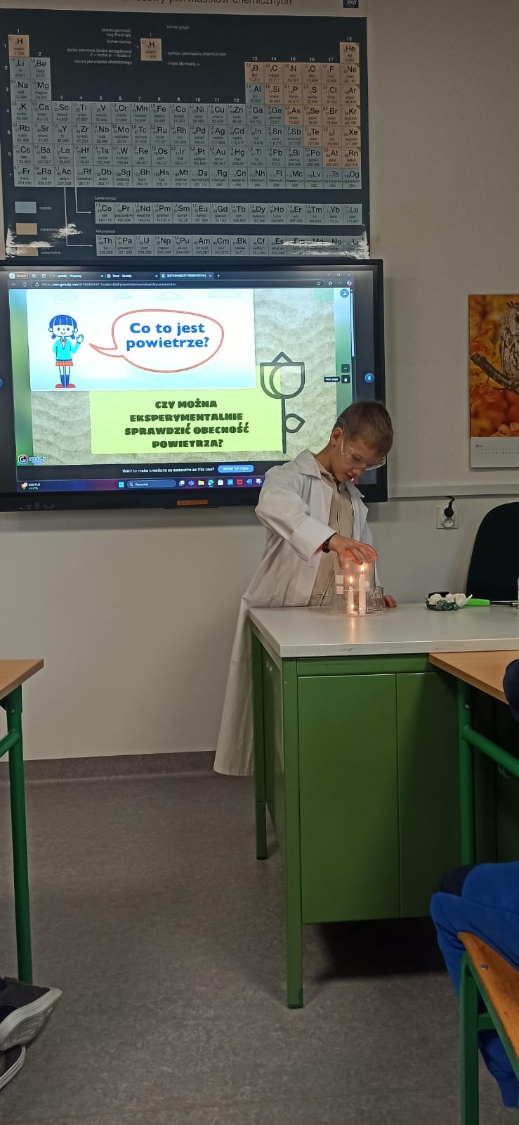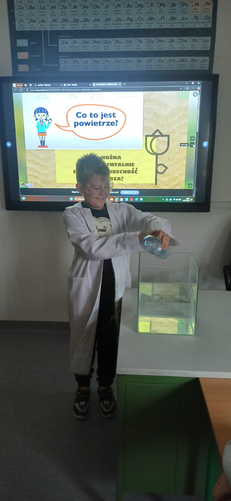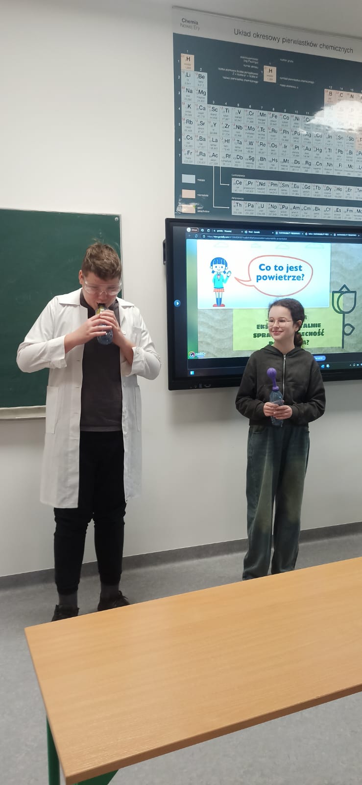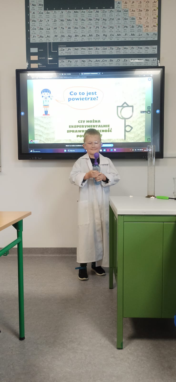 Na dzisiejszych zajęciach uczniowie naszej placówki samodzielnie wykonywali doświadczenia dotyczące powietrza. Młodzi profesorowie zademonstrowali, jak wykryć powietrze, jaki ma skład oraz jaka jest w nim zawartość czystego tlenu. Ponadto otrzymali smog.