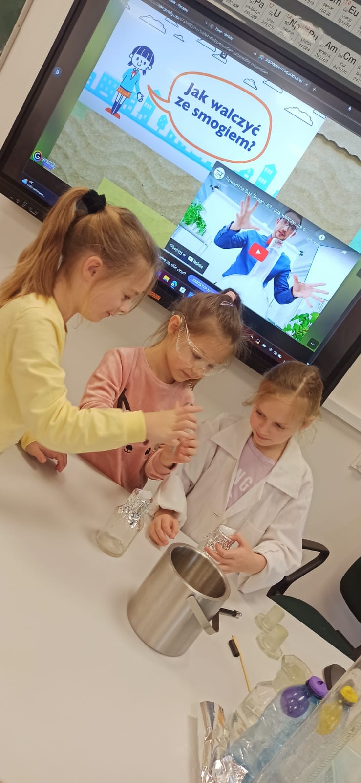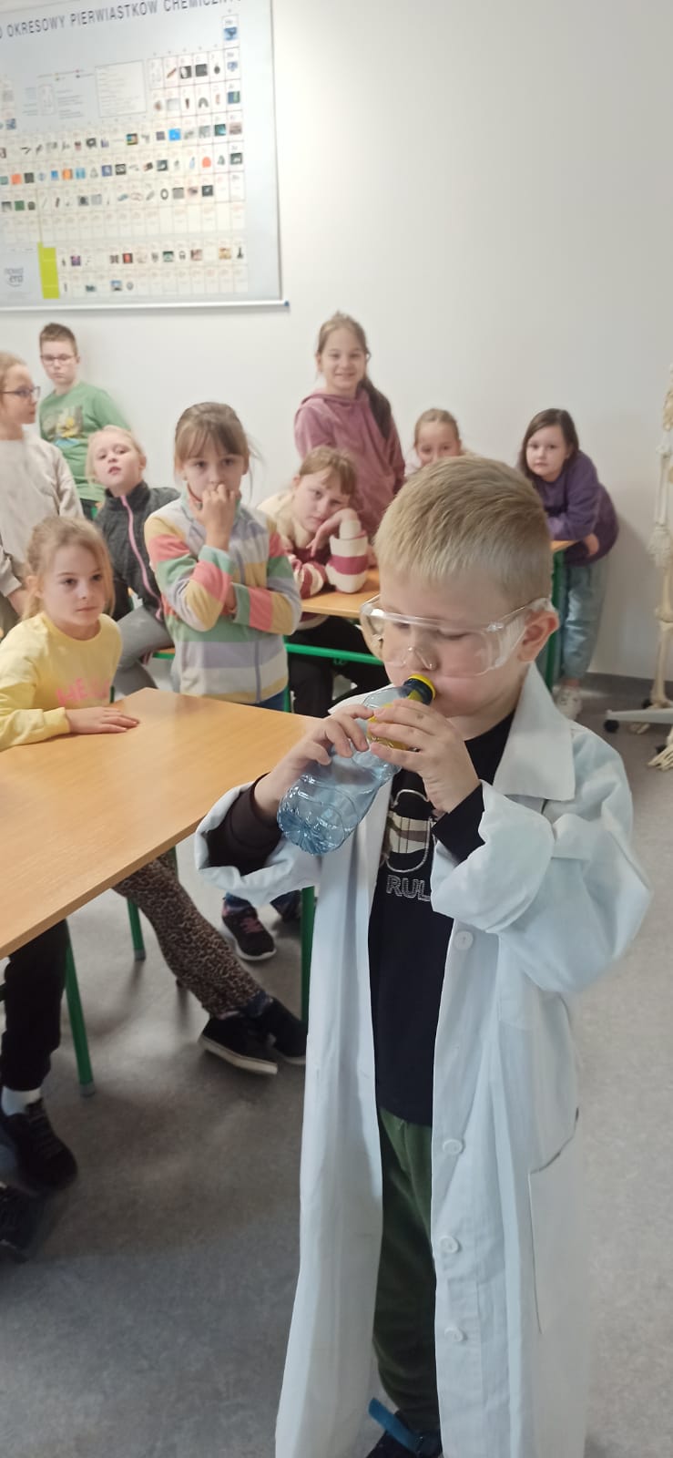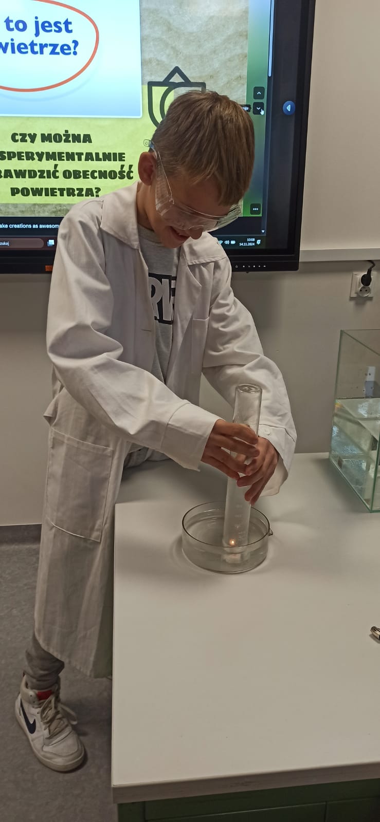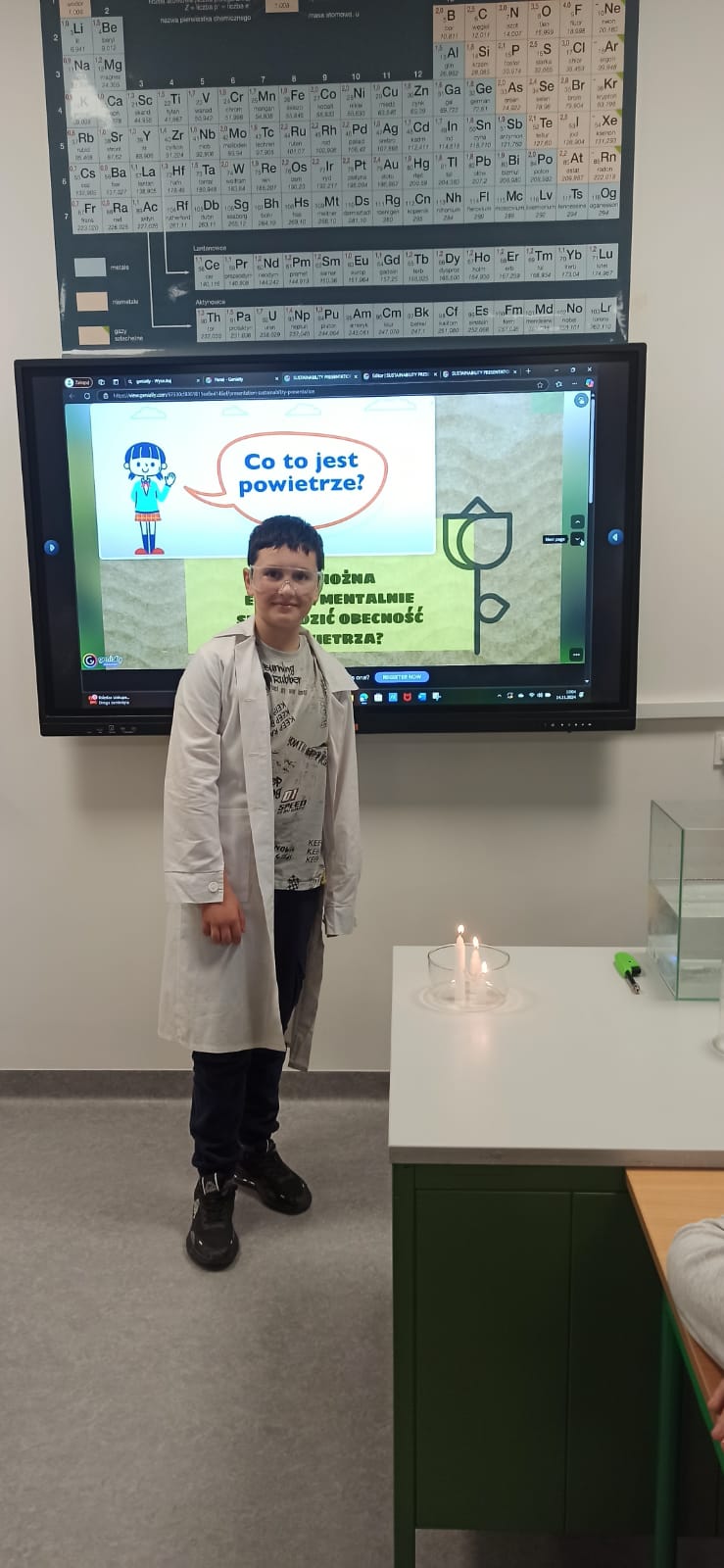 Na dzisiejszych zajęciach uczniowie naszej placówki samodzielnie wykonywali doświadczenia dotyczące powietrza. Młodzi profesorowie zademonstrowali, jak wykryć powietrze, jaki ma skład oraz jaka jest w nim zawartość czystego tlenu. Ponadto otrzymali smog.