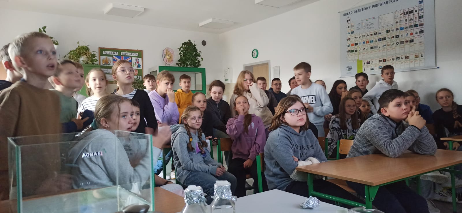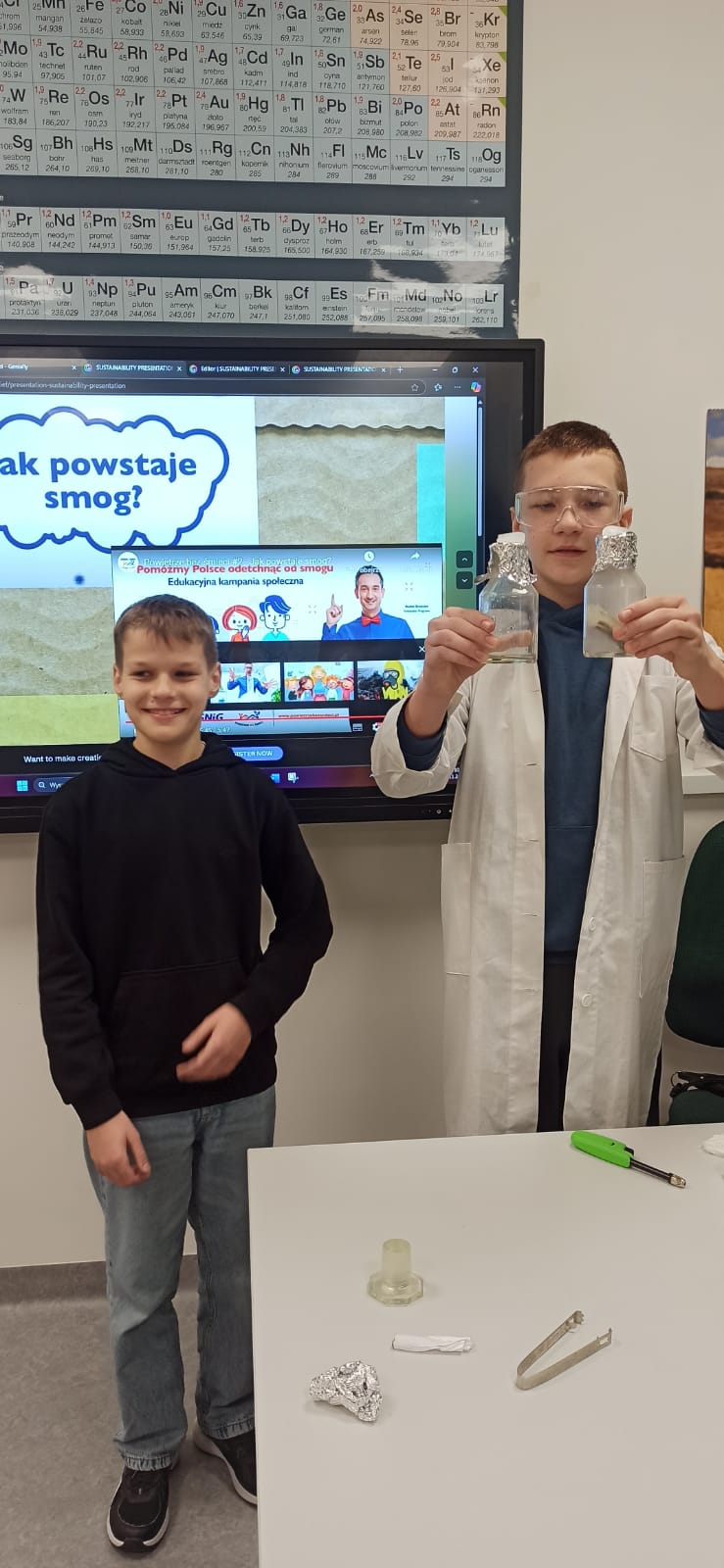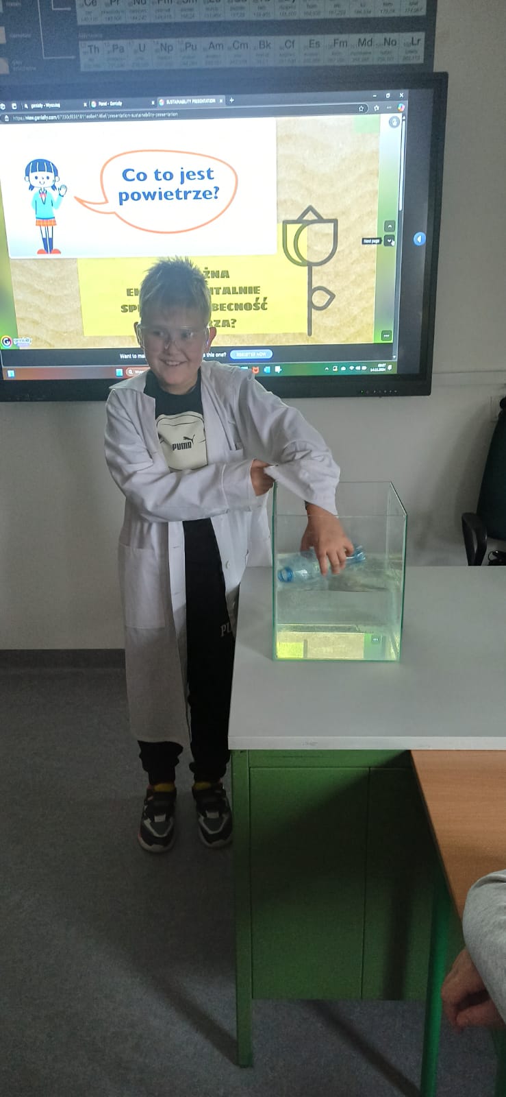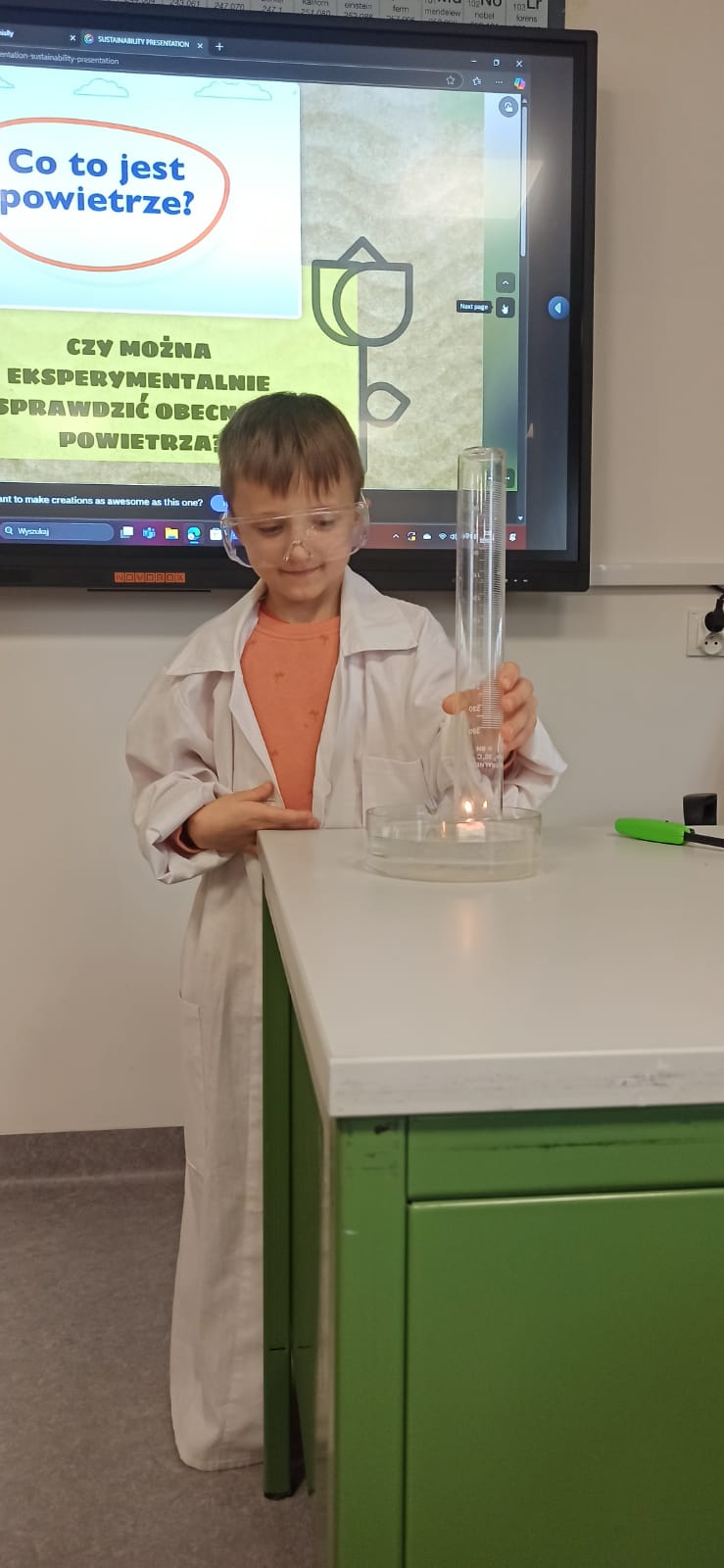 Na dzisiejszych zajęciach uczniowie naszej placówki samodzielnie wykonywali doświadczenia dotyczące powietrza. Młodzi profesorowie zademonstrowali, jak wykryć powietrze, jaki ma skład oraz jaka jest w nim zawartość czystego tlenu. Ponadto otrzymali smog.