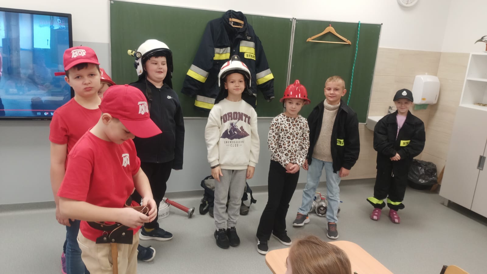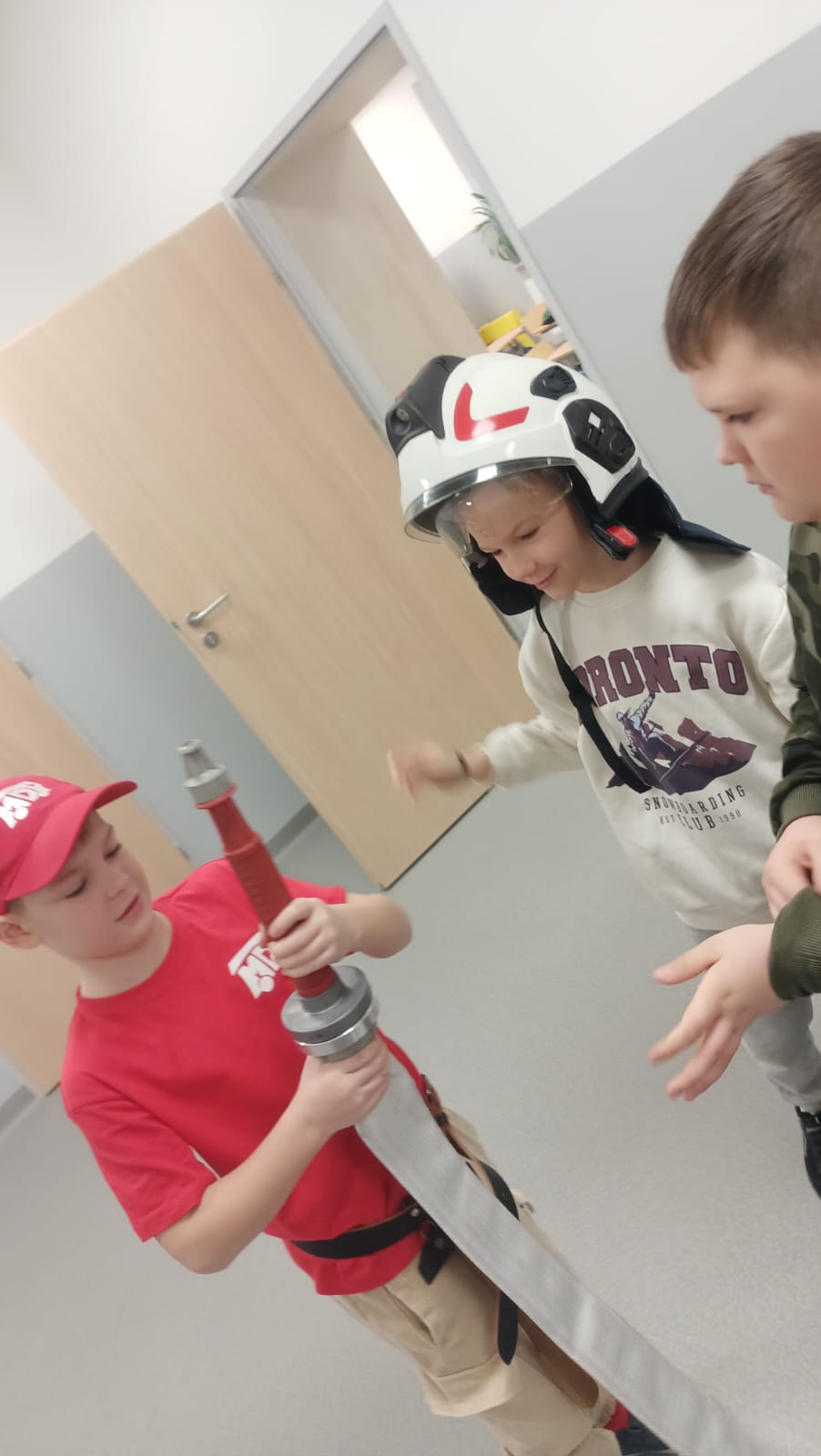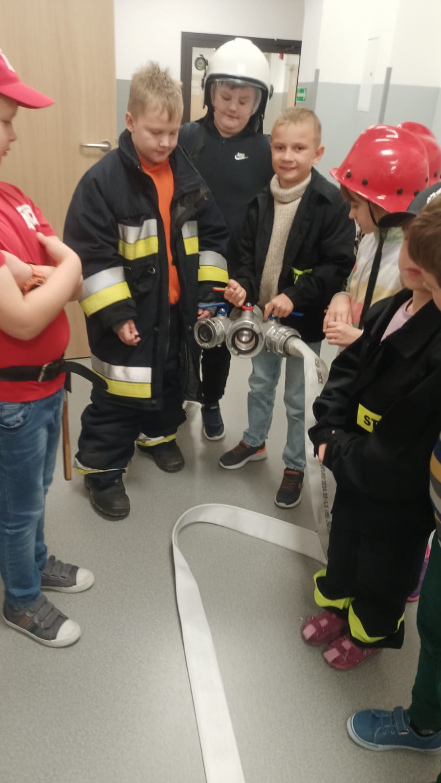 29 listopada w naszej szkole w ramach cyklu zajęć  o zawodach, uczniowie klas I-III uczestniczyli w ciekawej lekcji dotyczącej pracy strażaka. Przymierzali stroje, które noszą  strażacy w czasie akcji oraz  poznawali wygląd i nazwy sprzętu strażackiego . Nauka przez zabawę była wspaniała i czekamy na kolejne zajęcia!