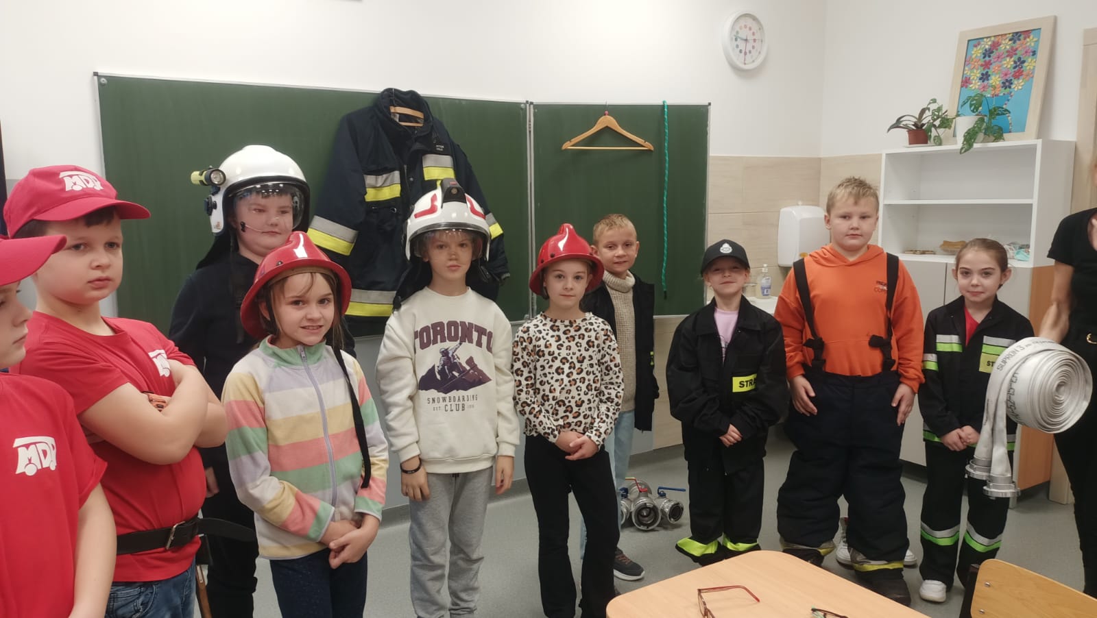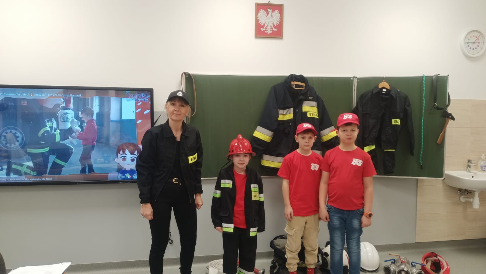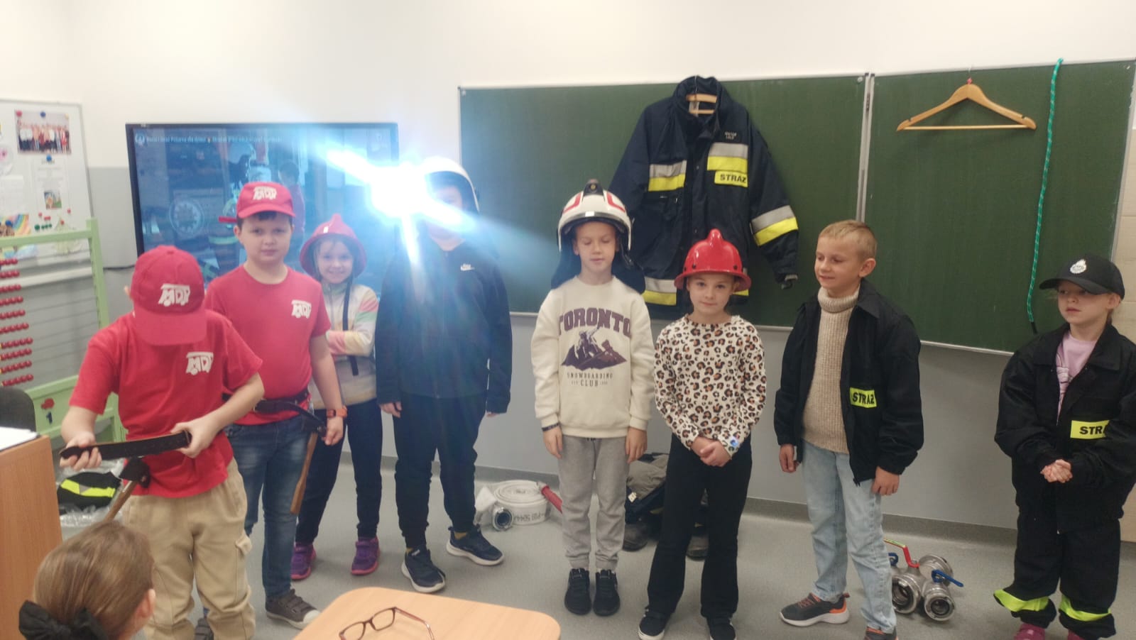 29 listopada w naszej szkole w ramach cyklu zajęć  o zawodach, uczniowie klas I-III uczestniczyli w ciekawej lekcji dotyczącej pracy strażaka. Przymierzali stroje, które noszą  strażacy w czasie akcji oraz  poznawali wygląd i nazwy sprzętu strażackiego . Nauka przez zabawę była wspaniała i czekamy na kolejne zajęcia!