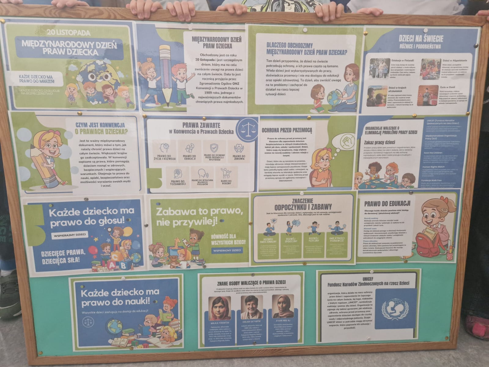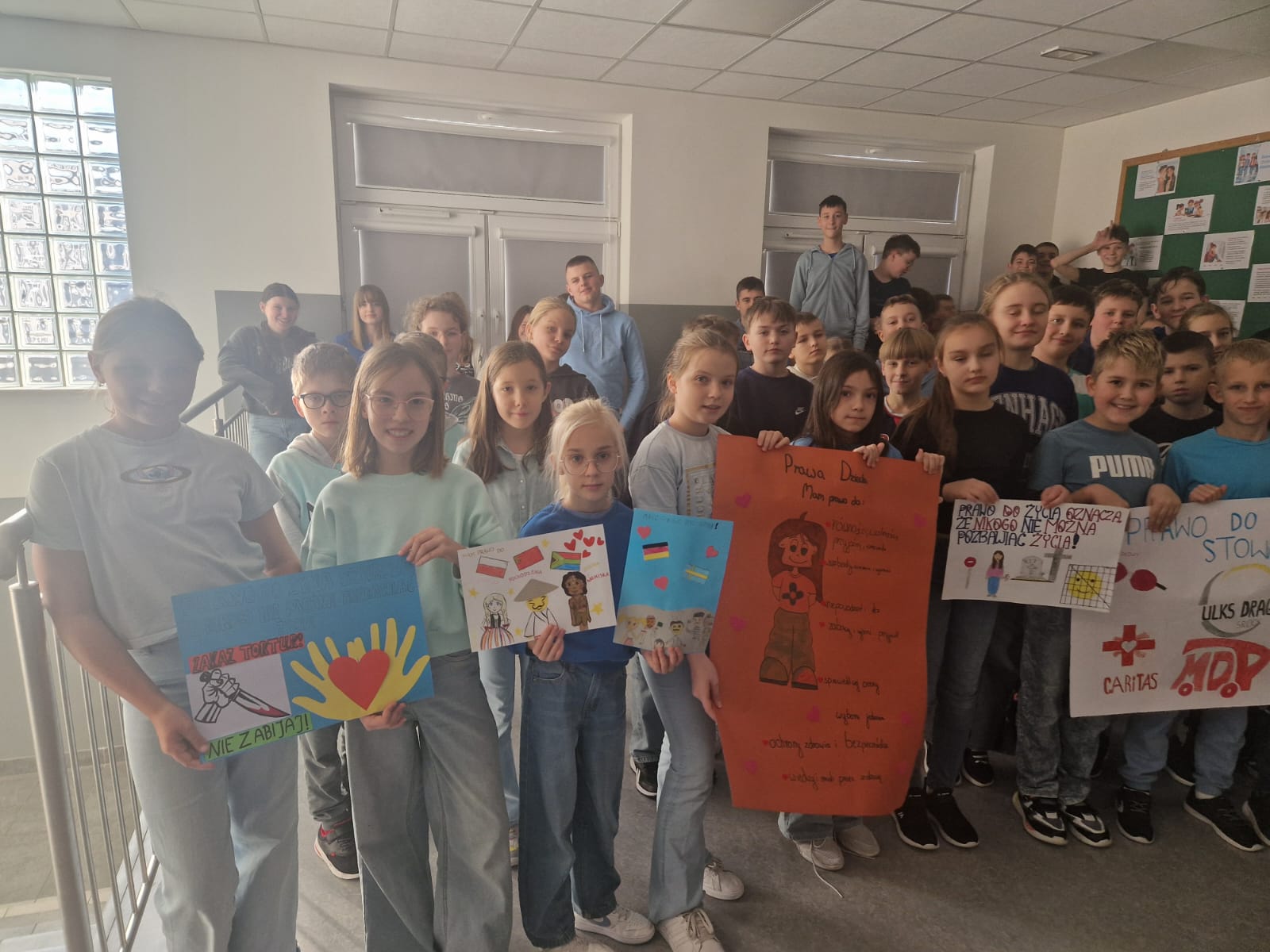 Nasza szkoła dołączyła do akcji "Międzynarodowy Dzień Praw Dziecka UNICEF 2204", projekt ten miał na celu przekazanie wiedzy oraz kształtowanie świadomości uczniów na temat znaczenia praw dziecka, przybliżenie zagadnień dotyczących praw dziecka społeczności szkolnej, włączenie placówki w uroczyste obchody rocznicy uchwalenia Konwencji o prawach dziecka.