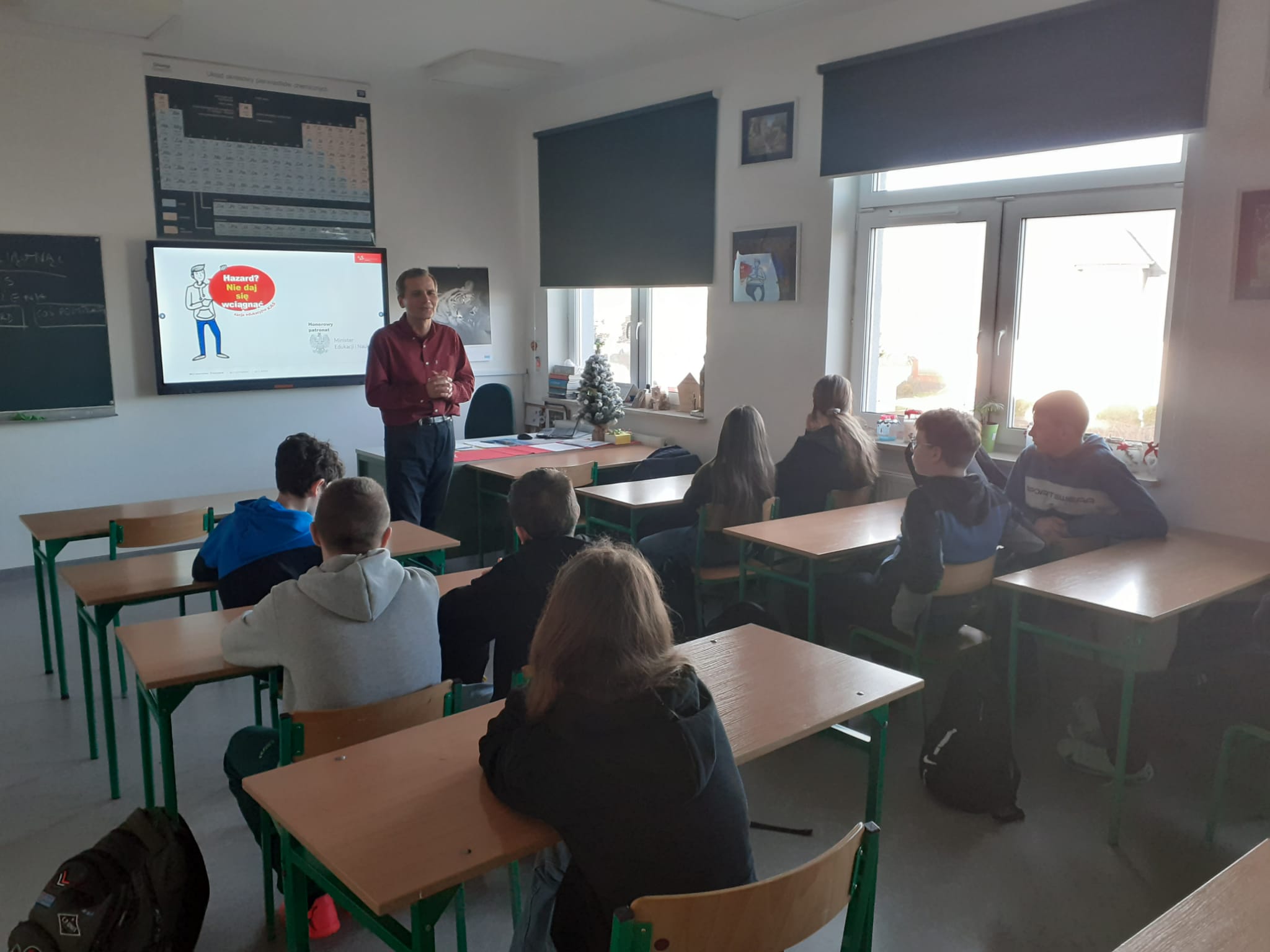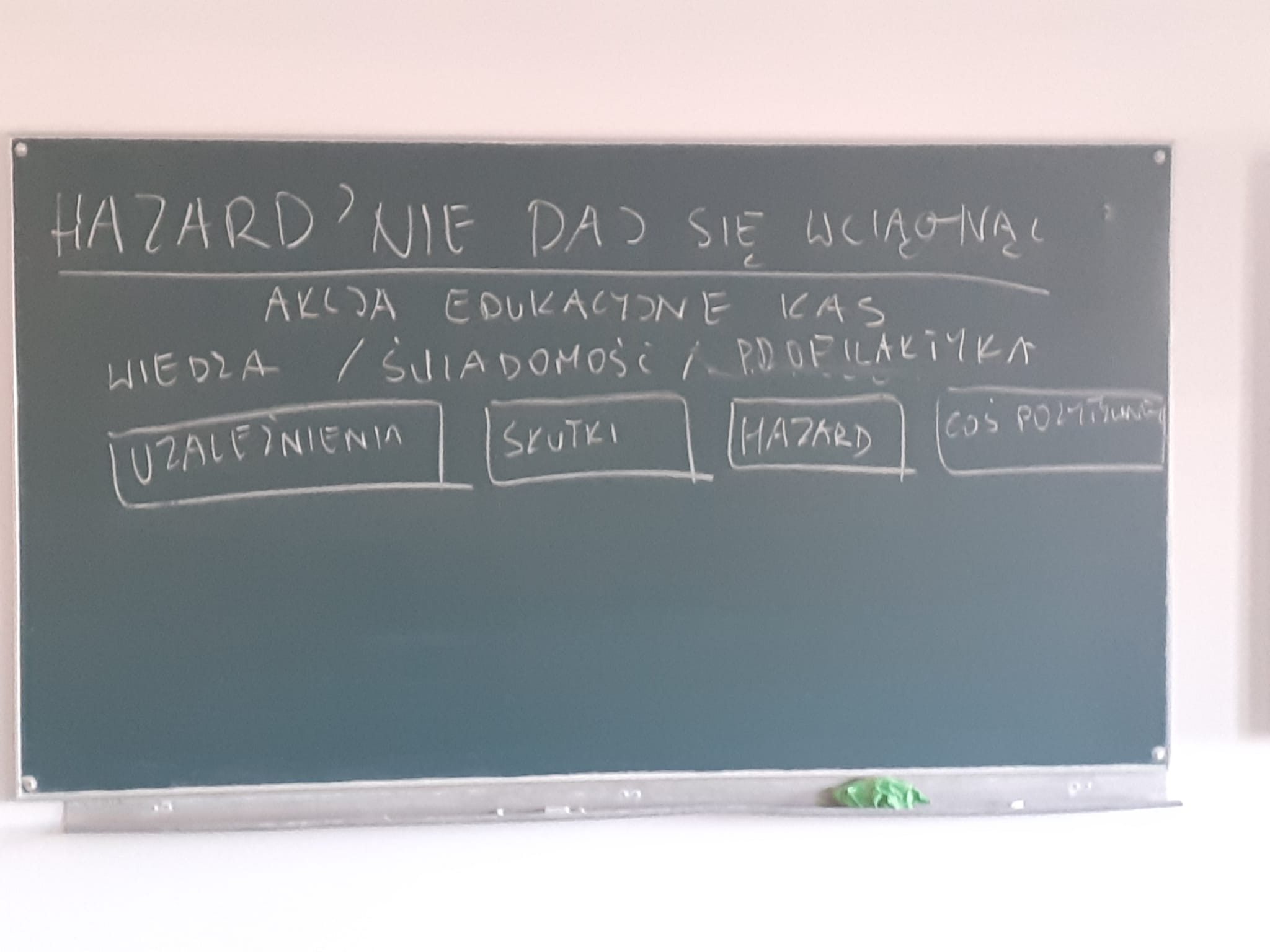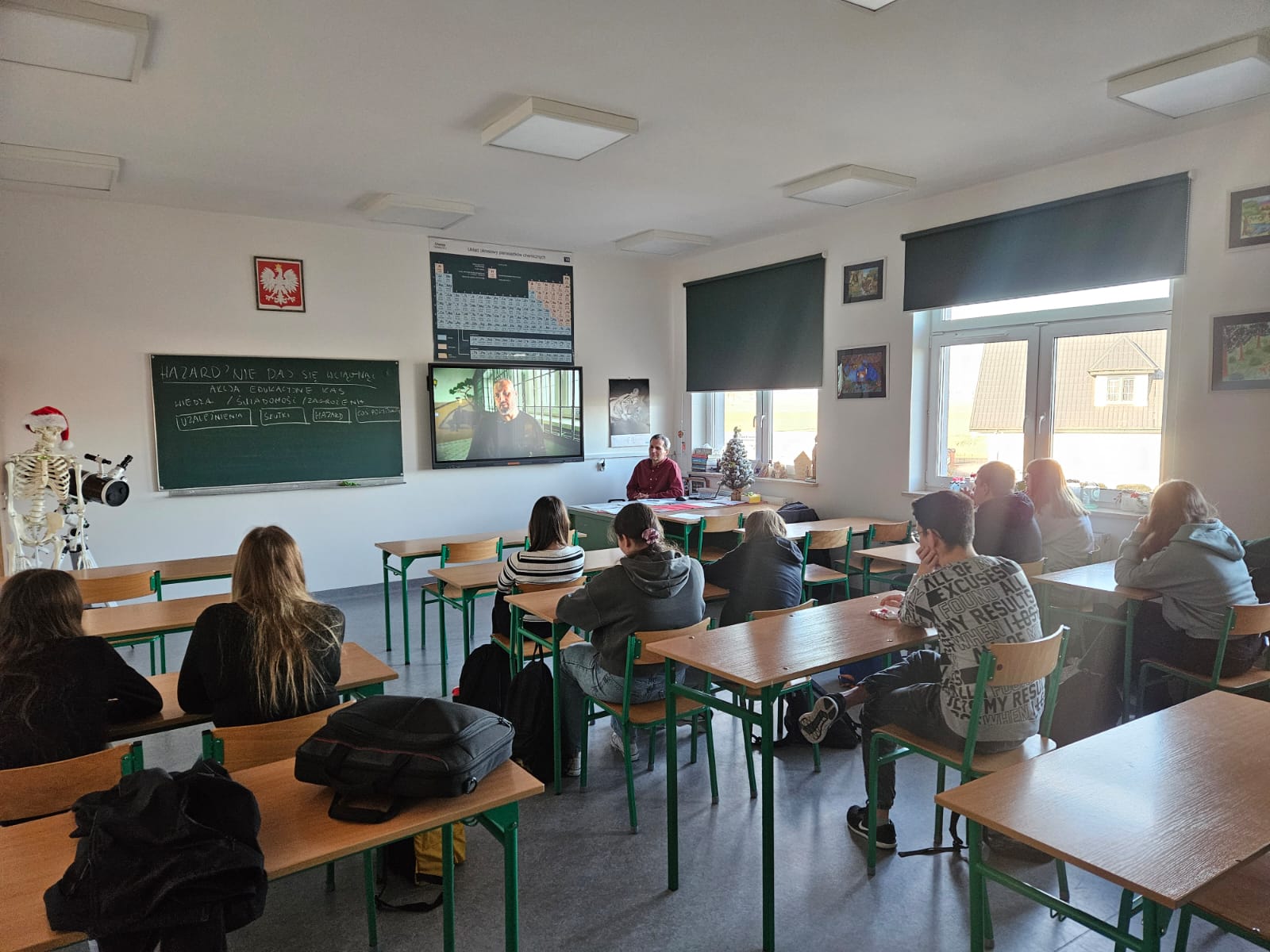 W dniu 30 stycznia 2025 roku uczniowie klasy 7 oraz 8 wzięli udział w warsztatach przeprowadzonych przez pracownika Izby Administracji Skarbowej w Łodzi pana Piotra Stachowiaka. Projekt edukacyjny Krajowej Administracji Skarbowej  "Hazard? Nie daj się wciągnąć!" objęty został honorowym patronatem Minister Edukacji. Podczas tego spotkania nasi uczniowie dowiedzieli się wiele na temat procesu uzależniania się od różnych czynników, a przede wszystkim- od hazardu. Przekonali się, że zdawanie się na "łut szczęścia" nie przynosi nic dobrego, a prowadzić może do wielu nieszczęść. Dziękujemy za przeprowadzenie zajęć i zapraszamy ponownie.