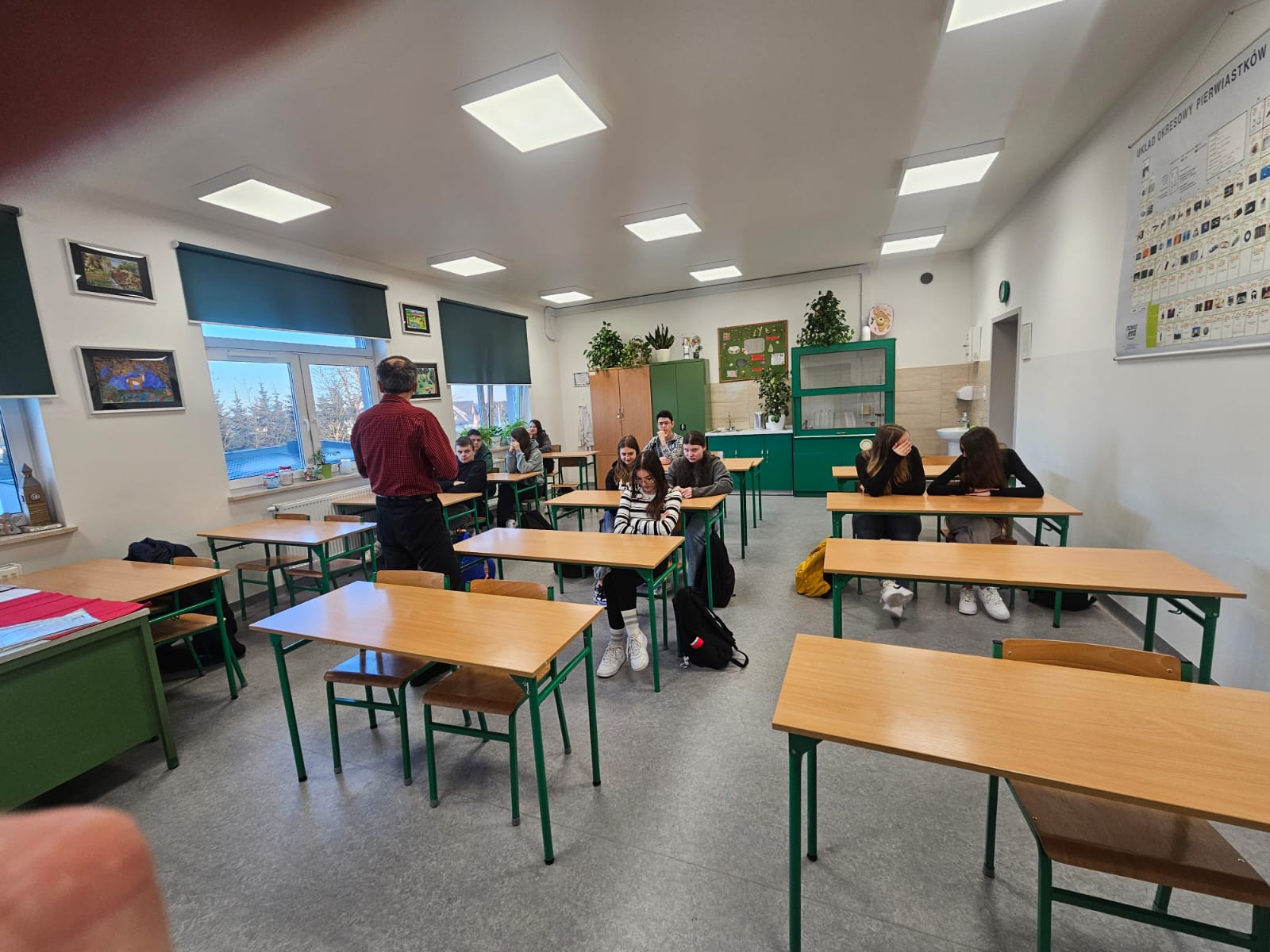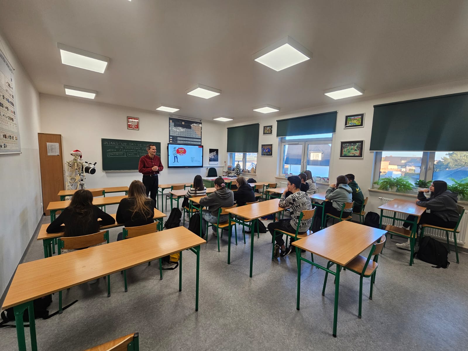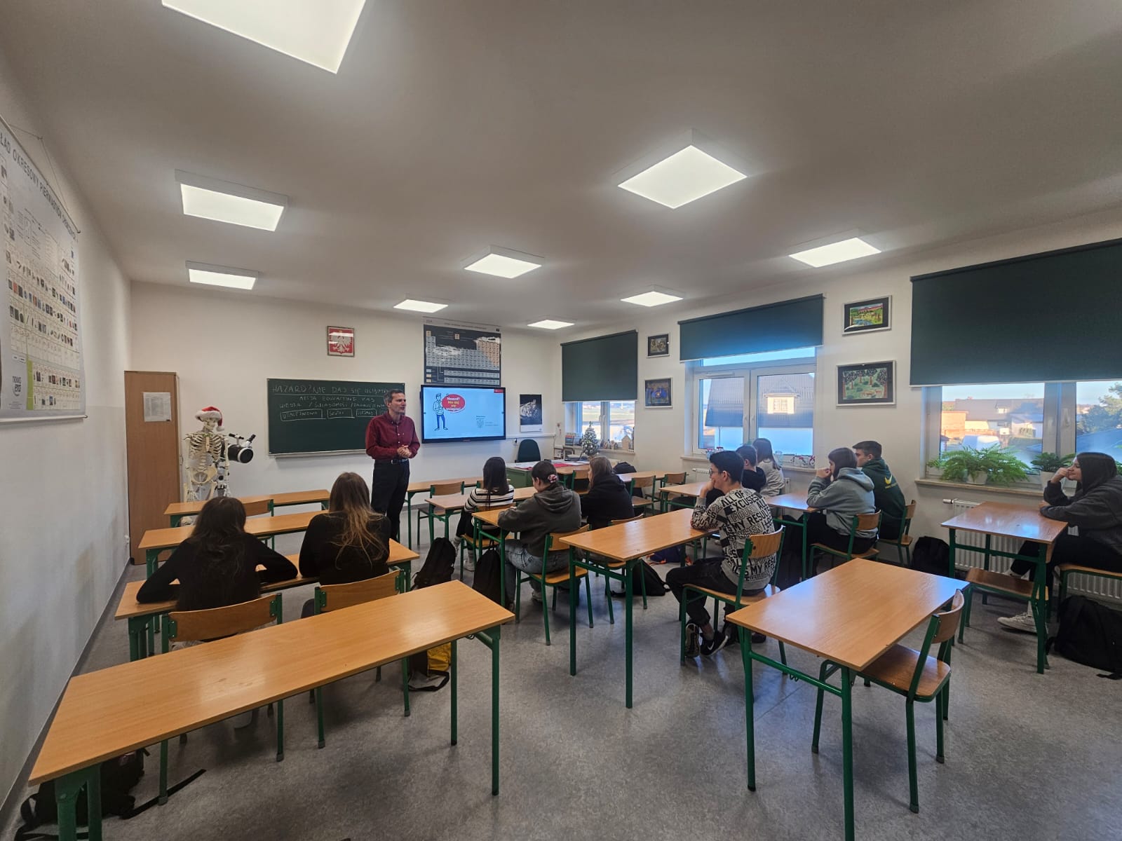 W dniu 30 stycznia 2025 roku uczniowie klasy 7 oraz 8 wzięli udział w warsztatach przeprowadzonych przez pracownika Izby Administracji Skarbowej w Łodzi pana Piotra Stachowiaka. Projekt edukacyjny Krajowej Administracji Skarbowej  "Hazard? Nie daj się wciągnąć!" objęty został honorowym patronatem Minister Edukacji. Podczas tego spotkania nasi uczniowie dowiedzieli się wiele na temat procesu uzależniania się od różnych czynników, a przede wszystkim- od hazardu. Przekonali się, że zdawanie się na "łut szczęścia" nie przynosi nic dobrego, a prowadzić może do wielu nieszczęść. Dziękujemy za przeprowadzenie zajęć i zapraszamy ponownie.
