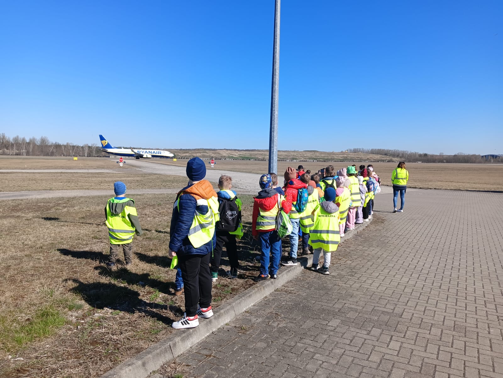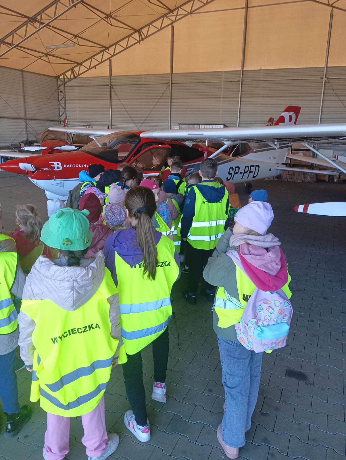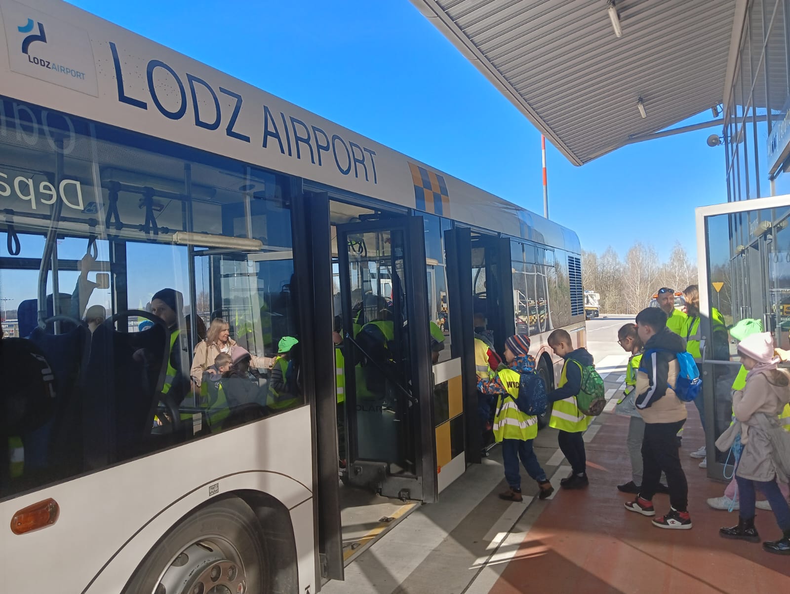 3 kwietnia klasy 0-III udały się na wycieczkę do Portu Lotniczego w Łodzi.  Dzieci zapoznały się z pracą ludzi na lotnisku i jego funkcjonowaniem. Poznały zasady obowiązujące w trakcie kontroli bezpieczeństwa oraz przeszły przez kontrolę bezpieczeństwa do hali odlotów. Następnie lotniskowy  autobus  przewiózł uczestników do hangaru szkoły lotniczej Bartolini Air, gdzie była możliwość obejrzenia samolotów szkoleniowych. Kolejnym punktem wycieczki był przejazd pod Strażnicę Lotniczą Straży Pożarnej i zapoznanie się z pracą jednostki. Na koniec dzieci zobaczyły przylot samolotu pasażerskiego. Wycieczka była bardzo udana i dostarczyła wielu niezapomnianych wrażeń.