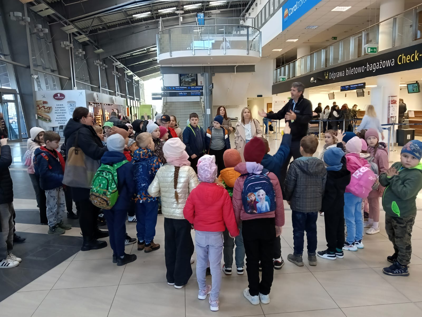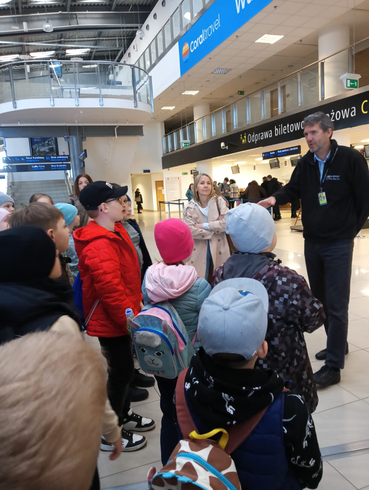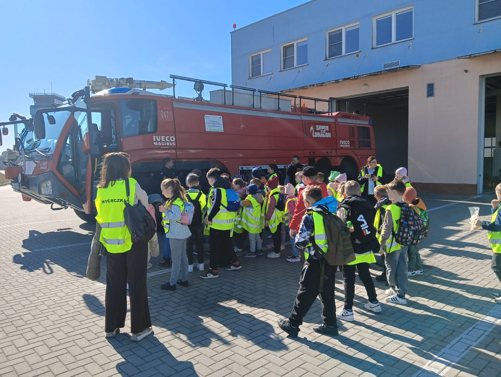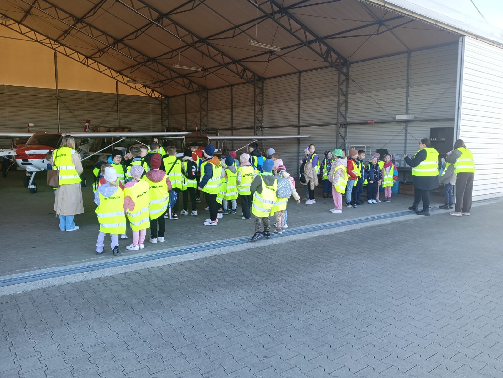 3 kwietnia klasy 0-III udały się na wycieczkę do Portu Lotniczego w Łodzi.  Dzieci zapoznały się z pracą ludzi na lotnisku i jego funkcjonowaniem. Poznały zasady obowiązujące w trakcie kontroli bezpieczeństwa oraz przeszły przez kontrolę bezpieczeństwa do hali odlotów. Następnie lotniskowy  autobus  przewiózł uczestników do hangaru szkoły lotniczej Bartolini Air, gdzie była możliwość obejrzenia samolotów szkoleniowych. Kolejnym punktem wycieczki był przejazd pod Strażnicę Lotniczą Straży Pożarnej i zapoznanie się z pracą jednostki. Na koniec dzieci zobaczyły przylot samolotu pasażerskiego. Wycieczka była bardzo udana i dostarczyła wielu niezapomnianych wrażeń.