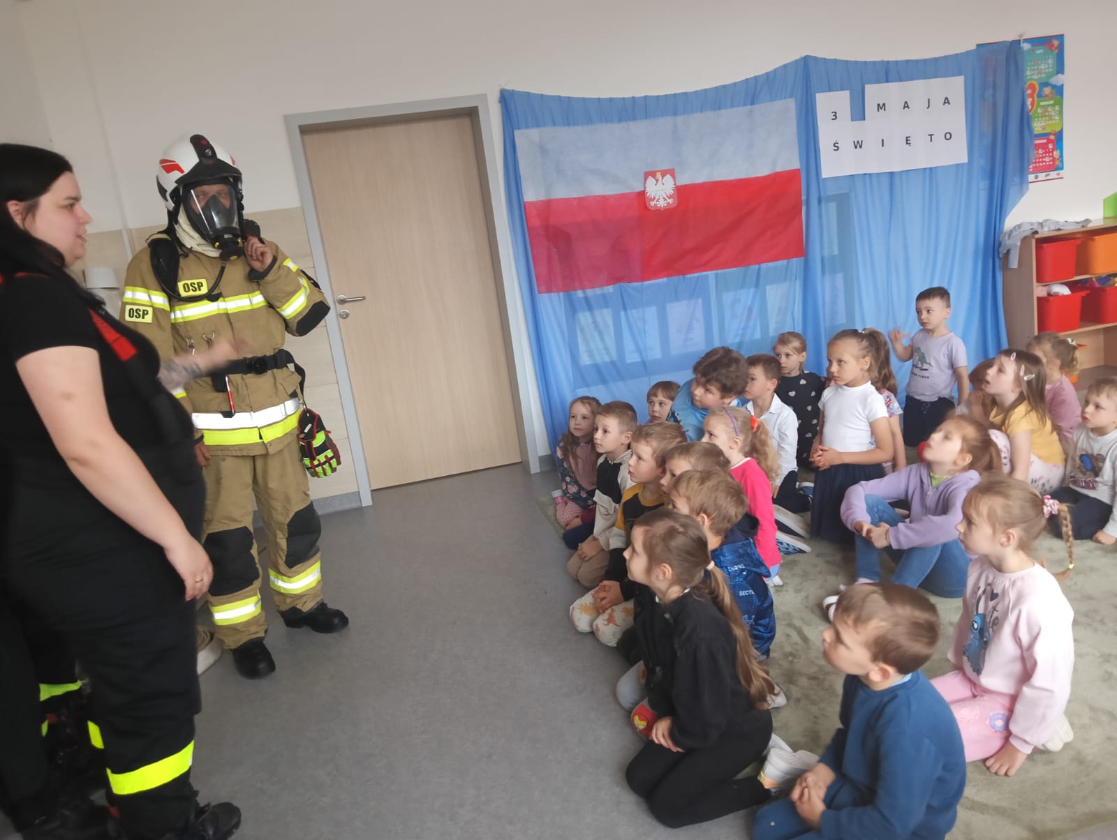 W dniu 25 kwietnia  naszą szkołę odwiedzili  strażacy z OSP w Srocku. Wizyta gości wzbudziła ogromne zainteresowanie wśród przedszkolaków i uczniów  z klasy 0. W trakcie spotkania dzieci poznały specyfikę pracy strażaków i zobaczyły sprzęt jakim dysponują. Prowadząca spotkanie p.Karolina zapoznała dzieci z zasadami zachowania się i jak powiadomić służby ratownicze w sytuacji zagrożenia. Na zakończenie  dzieci podziękowały strażakom i otrzymały, od gości,  upominki. Serdecznie dziękujemy za wspaniale poprowadzone spotkanie.