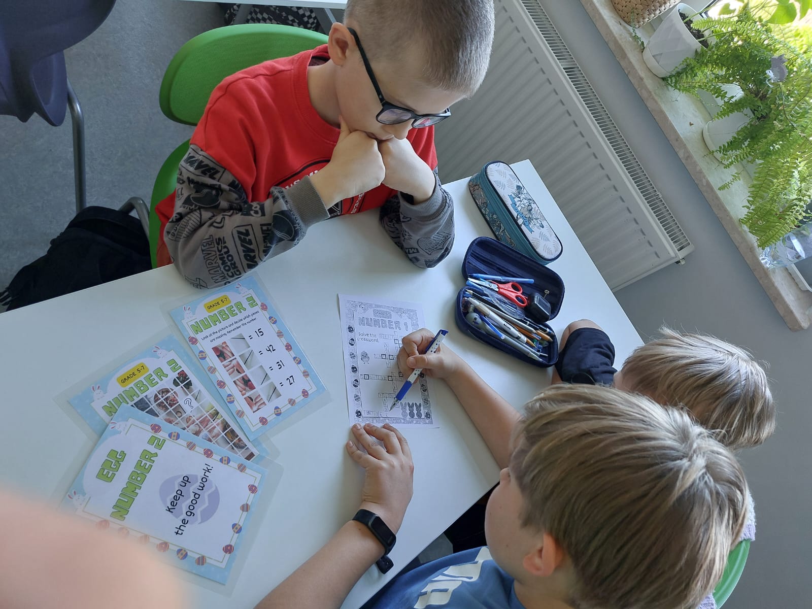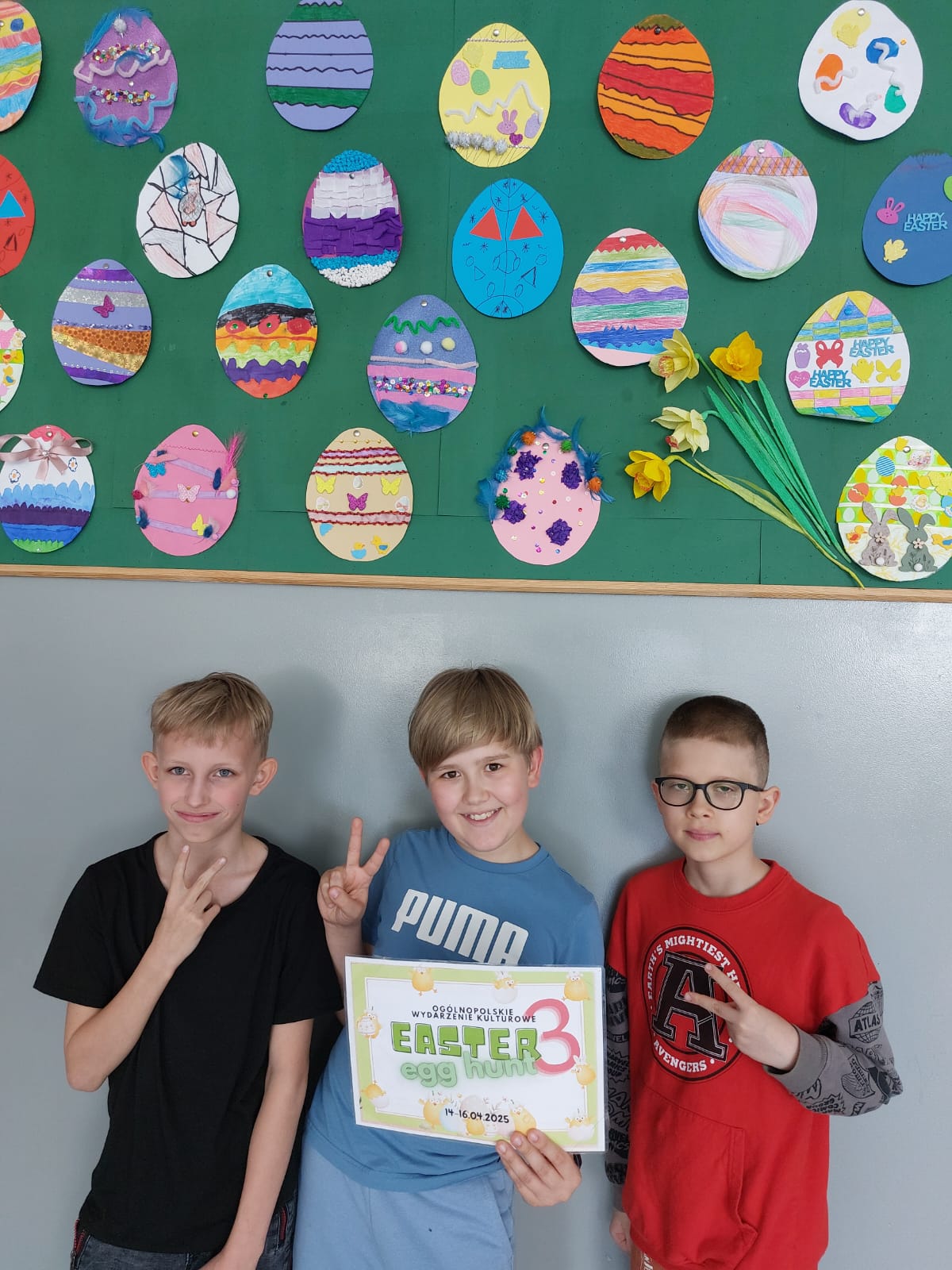 Kolejny raz nasza szkoła dołączyła do ogólnopolskiego wydarzenia kulturowego pt. Easter Egg Hunt. Była to już trzecia edycja tej wyjątkowej akcji, którą organizuje od 2023 roku pani Ilona Kulig - Omachel. W dniu 16 kwietnia 2025 r. uczniowie klasy czwartej wzięli udział w poszukiwaniu jajek i przy okazji zmierzyli się z zadaniami o tematyce wielkanocnej. Czwartoklasiści z zaangażowaniem rozwiązywali zagadki, które znajdowały się na różnych stanowiskach w formie stacji dydaktycznych. Zebrane na każdej stacji liczby należało na koniec rozkodować przy pomocy podanego klucza.