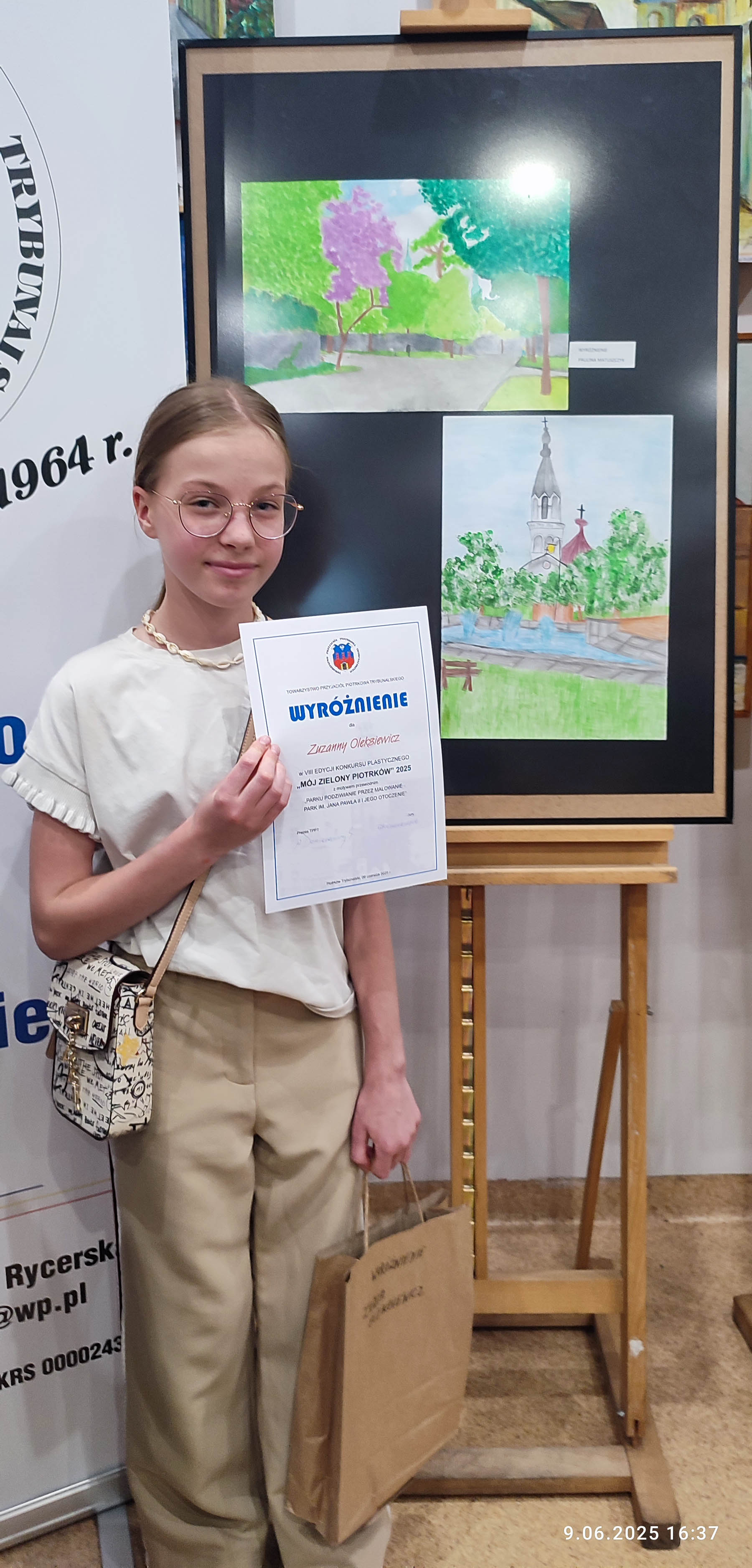 Dnia 09 czerwca 2025 r., w galerii Ośrodka Edukacji Artystycznej Miejskiego Ośrodka Kultury w Piotrkowie Trybunalskim, odbyło się uroczyste ogłoszenie wyników oraz wręczenie nagród laureatom VIII edycji konkursu plastycznego Mój Zielony Piotrków, którego organizatorem jest Towarzystwo Przyjaciół Piotrkowa Trybunalskiego. Konkurs skierowany został do dzieci i młodzieży szkół podstawowych z terenu miasta i powiatu piotrkowskiego. Miał on na celu ukazanie piękna charakterystycznych miejsc Parku im. Jana Pawła II i jego otoczenie. Uczestnicy mogli wykonywać prace w technikach takich jak malarstwo, rysunek czy collage.