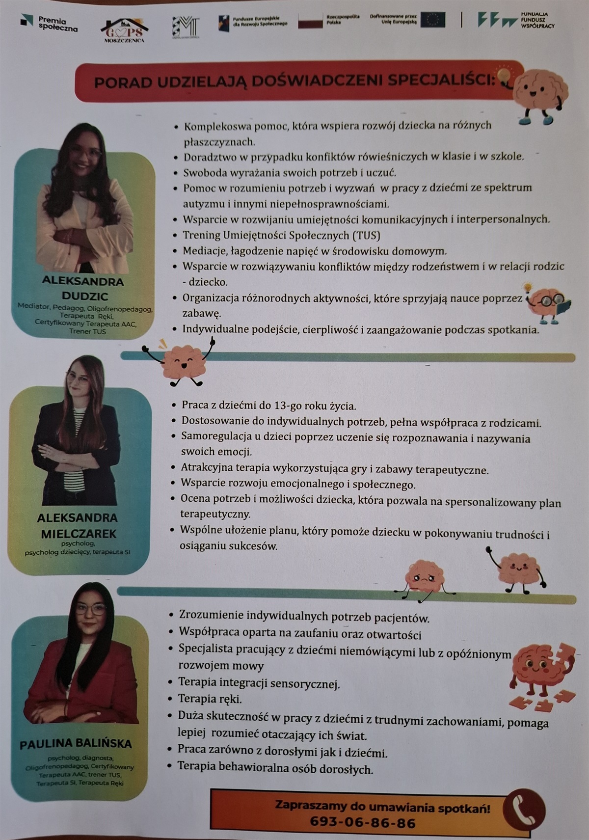 Na prośbę pani Agnieszki Grabskiej- Kierownik Gminnego Ośrodka Pomocy Społecznej w Moszczenicy, przesyłamy informację dotyczącą możliwości skorzystania z bezpłatnego wsparcia psychologicznego i doradztwa w zakresie mediacji dla mieszkańców naszej gminy (dla dzieci, dorosłych, całych rodzin). Szczegóły- na załączonych plakatach